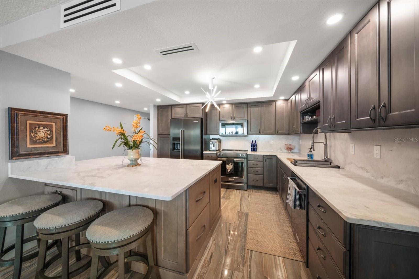 Maravilhe -se com as vistas de tirar o fôlego da hidrovia intracoastal, os Skylines de St. Pete e Tampa e vislumbres do Golfo! Este condomínio meticulosamente atualizado de 2 quartos e 2 banheiros possui novas tábuas de luxo e piso de porcelana, juntamente com elegantes rodapés de 5 ". As cozinhas abertas exibem requintadas aperfeiçoadas Montecristo, bancadas de quartzo, uma enorme ilha e assentos de bar, gabinetes de kraftmaid, e frenúcios translucsos Aparelhos de ajuda de cozinha Na prestigiada comunidade Redington Towers, os moradores desfrutam de acesso a uma piscina de frente para o Golfo, uma academia no local e instalações para churrasco ao ar livre. O segurança da hora oferece paz de espírito. Para um relaxamento sem fim, a praia de areia branca fica a meros passos de distância, acenando você para o prazer durante todo o ano. Com uma variedade de comodidades e arredores incomparáveis, este condomínio oferece a oportunidade de viver onde outros férias!