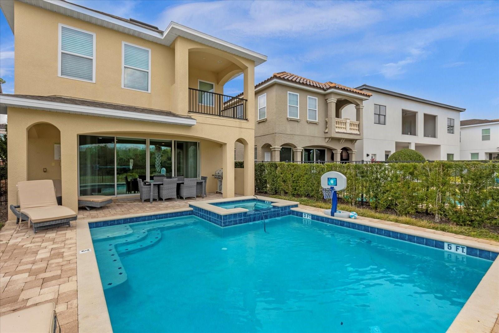 ASSOCIAÇÃO ATIVA DO REUNION CLUB INCLUÍDA! Bem-vindo à casa dos seus sonhos no muito procurado Reunion Resort, que oferece acesso vigiado 24 horas por dia, 7 dias por semana e todas as comodidades de resort de luxo que você pode imaginar! Aproveite isso como sua residência em tempo integral ou férias com estilo a qualquer hora e ganhe renda no resto do ano. Esta casa executiva semipersonalizada possui um total de 5 quartos e 5,5 banheiros com duas suítes principais - uma em cada andar. O interior possui mais de 3.300 pés quadrados com vida externa adicional com varandas cobertas e varanda coberta. Ao entrar, você notará a planta aberta e a espaçosa sala com grandes portas de vidro deslizantes que proporcionam muita luz natural e acesso à vista da piscina e do campo de golfe. A cozinha totalmente equipada apresenta eletrodomésticos de aço inoxidável, armário e um bar em ilha com vista para a grande sala. Saia pelas portas de vidro deslizantes, aproveite o sol e refresque-se na piscina. Você vai adorar se divertir ao ar livre sob a varanda coberta ou relaxar à beira da piscina, tendo como pano de fundo vistas pitorescas do campo de golfe. Em dias chuvosos, suba as escadas para desfrutar da espaçosa sala de jogos do loft com mesa de sinuca e área de estar. Os 4 quartos adicionais no andar de cima oferecem banheiros privativos e acabamentos elegantes. Isso inclui a 2ª suíte principal, que oferece banheira de imersão, chuveiro separado, pias duplas, closet e varanda espaçosa com vista para o campo de golfe! Reunion Resort é um resort de golfe de luxo que permite alugueres de curta duração. O resort está perfeitamente posicionado a poucos minutos de todos os principais parques temáticos, incluindo a Disney World! Desfrute de golfe em um dos três campos de golfe de classe mundial, tênis ou pickleball. Ou leve seus convidados a uma das outras 12 piscinas públicas com um parque aquático com rio lento, parque aquático, bar tiki e muito mais! Termine o dia em um dos cinco restaurantes no local em Reunion. As comodidades do Reunion manterão você e seus convidados aproveitando o estilo de vida da Flórida e ansiosos para voltar! Esta casa vem totalmente mobiliada, tornando-se uma oportunidade irresistível e pronta para uso. As férias dos seus sonhos e a oportunidade de aluguel o aguardam!