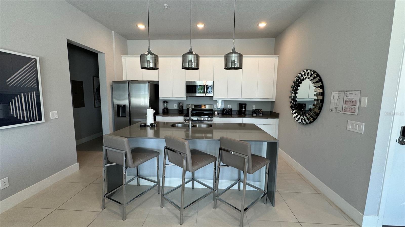 Valor excepcional! Descubra este condomínio elegante e moderno situado no distinto Spectrum at Reunion Resort, um paraíso de golfe de primeira linha a poucos passos do Walt Disney World. Esta propriedade imaculada está totalmente mobilada e equipada, oferecendo uma transição perfeita para começar a desfrutar imediatamente! Ideal como residência principal ou como oportunidade lucrativa de investimento, beneficie da conveniência da gestão de propriedades no local. Este condomínio possui um amplo layout aberto com três quartos e três banheiros, com acabamentos contemporâneos e uma ampla cozinha equipada com eletrodomésticos em aço inox, fogão a gás e uma elegante ilha. A luz natural inunda o espaço, levando a um amplo pátio pavimentado – perfeito para entreter ou relaxar com uma bebida refrescante sob o sol. A generosa suíte master inclui closet e banheiro privativo completo com azulejos elegantes, box amplo e pia dupla. Um armário de lavanderia com lavadora e secadora empilháveis com carregamento frontal aumenta os recursos práticos. Saia para desfrutar das comodidades luxuosas do resort: uma piscina em estilo resort, uma academia bem equipada e um parque aquático emocionante com um rio lento e toboáguas. O Reunion Resort abrange 2.300 acres e possui três campos de golfe exclusivos: Tradition de Jack Nicklaus, Legacy de Arnold Palmer e Independence de Tom Watson. As instalações adicionais incluem duas lojas profissionais de golfe, várias piscinas comunitárias, quadras de tênis, espaços para conferências e diversas opções gastronômicas, incluindo uma renomada churrascaria e um sushi bar. Aproveite a oportunidade de experimentar o estilo de vida por excelência da Flórida nesta casa excepcional.