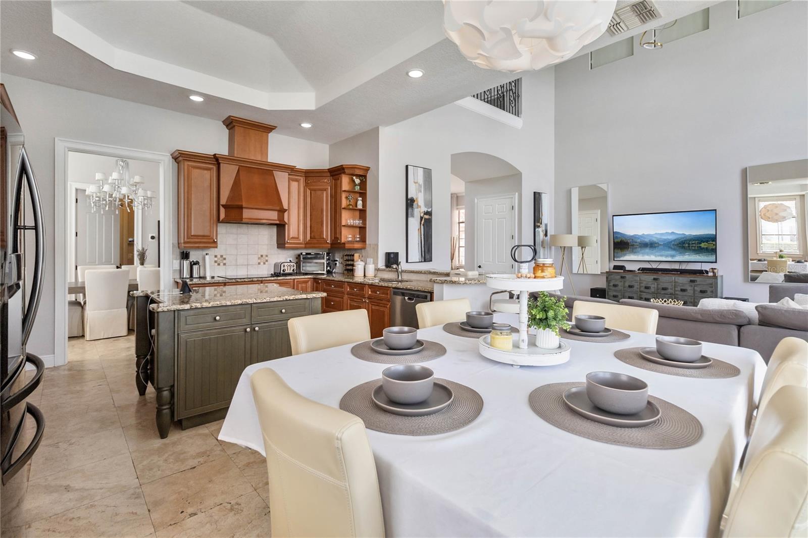 Experimente um luxo incomparável nesta propriedade deslumbrante, completa com 5 quartos, 4 banheiros completos e 2 lavabos, situada no buraco 9 de um dos campos de golfe exclusivos do Reunion Resort & Club, projetado por Jack Nicklaus, Arnold Palmer e Tom Watson. Desfrute de vistas panorâmicas de greens e fairways meticulosamente mantidos diretamente do seu quintal. Quer você seja um jogador de golfe experiente ou simplesmente aprecie a beleza cênica, este local oferece tranquilidade e elegância incomparáveis. A casa possui amplos espaços com tetos altos, acabamentos de alta qualidade e atenção requintada aos detalhes. A cozinha gourmet é o sonho de qualquer chef, com eletrodomésticos de última geração, armários personalizados e uma ilha espaçosa perfeita para entretenimento. Esta casa requintada possui duas suítes principais – uma convenientemente localizada no andar principal para fácil acesso e a segunda no andar de cima, proporcionando um retiro privado com vistas serenas. O luxuoso carpete (2022) valoriza o conforto das áreas dos dormitórios, enquanto as áreas comuns são adornadas com elegante piso de travertino, agregando um toque de sofisticação e durabilidade. No interior, um elevador elegante proporciona acesso contínuo a todos os níveis, aumentando o conforto e a acessibilidade. Desfrute de noites serenas no quintal paisagístico com uma linda piscina de água salgada cintilante (2023) com recursos aquáticos, um novo deck e uma cozinha ao ar livre. O interior da casa foi recentemente pintado em 2022. Com um sistema de painéis solares de última geração (2023), esta propriedade oferece não só uma eficiência energética excepcional, mas também poupanças significativas nas contas de serviços públicos. A garagem foi cuidadosamente convertida numa vibrante sala de jogos/filmes, oferecendo um espaço versátil para entretenimento e diversão em família. Se você deseja fazer desta sua residência principal ou uma propriedade de investimento STR, esta casa foi projetada para atender a todas as necessidades. Reunion Resort é uma comunidade de clubes que oferece o que há de melhor em golfe, tênis, fitness, pavilhões de piscina e eventos comunitários. Está idealmente localizado a poucos minutos de parques temáticos de renome mundial, empresas locais, supermercados e centros comerciais. Não perca a oportunidade de ver por si mesmo. Chame-me para uma exibição privada.