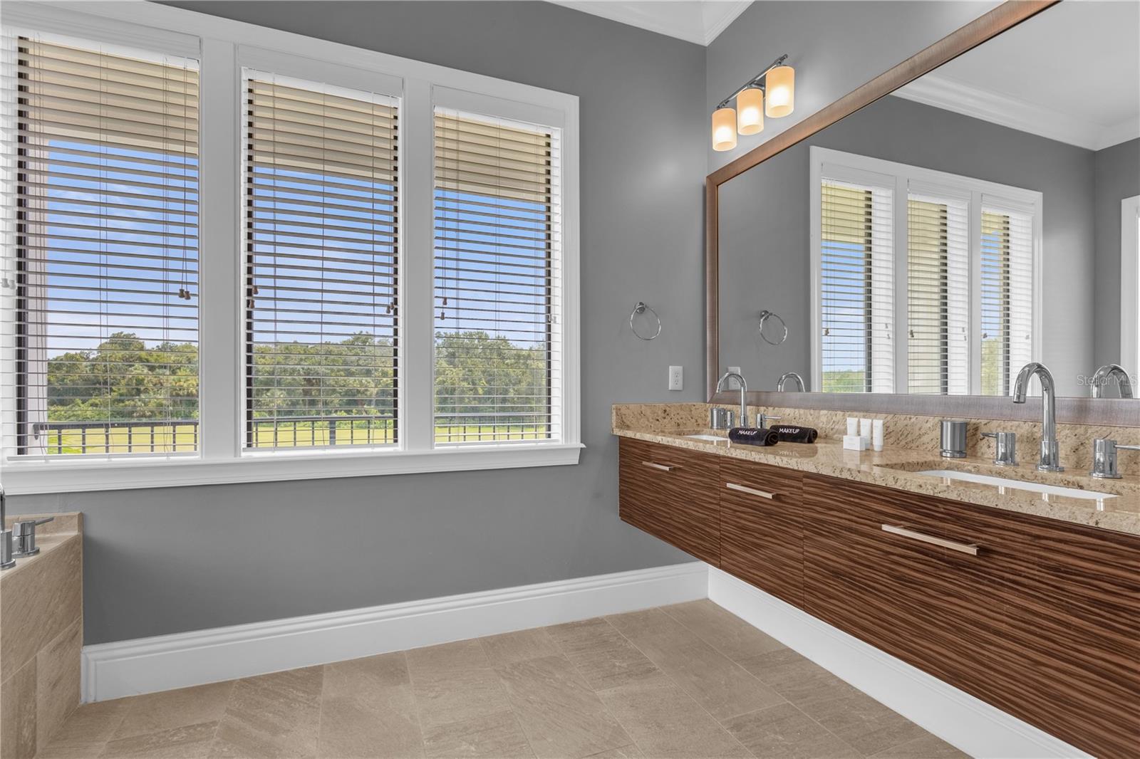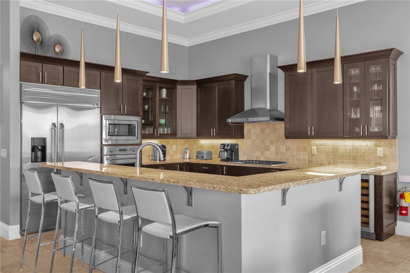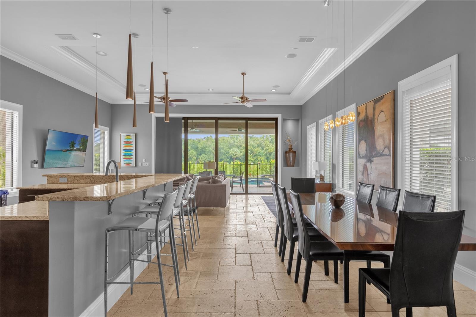 Experimente um luxo incomparável nesta obra-prima personalizada de 5 quartos no campo de golfe Nicklaus Entre num mundo de elegância e sofisticação nesta deslumbrante residência de 5 quartos construída à medida, perfeitamente posicionada ao longo do buraco 9 do prestigiado campo de golfe Nicklaus. Localizada em um condomínio fechado e exclusivo a apenas 15 minutos da Disney, esta casa oferece o que há de mais luxuoso em termos de vida e é um investimento ideal ou uma segunda residência. Ao entrar, você é saudado por tetos altos de 3,6 metros no primeiro andar e tetos de 3 metros no segundo, criando um ambiente grandioso e arejado. Amplos controles deslizantes de vidro PGT de 10 pés inundam os espaços de estar com luz natural e se abrem para um luxuoso oásis ao ar livre. A cozinha de verão coberta, completa com churrasqueira e pia de aço inoxidável, é emoldurada por um impressionante teto macho e fêmea de madeira manchada, exalando opulência enquanto você se diverte na piscina cintilante e na jacuzzi, tudo em um cenário de deck de travertino. Satisfaça suas paixões culinárias na cozinha gourmet, com bancadas de granito, eletrodomésticos de aço inoxidável de última geração e um refrigerador de vinho pronto para refrescar suas melhores seleções. Para entretenimento, a casa conta com uma luxuosa sala de cinema com teto em caixotões e bar molhado, perfeita para noites de cinema, e uma sala de jogos equipada com mesa de sinuca, mesa de pôquer e pebolim para noites familiares inesquecíveis. O primeiro andar oferece um quarto bem equipado, enquanto o segundo andar abriga uma grande suíte master e três quartos adicionais, cada um projetado com atenção meticulosa aos detalhes. Todos os armários possuem sistemas embutidos personalizados e todos os banheiros são adornados com portas de box de vidro sem moldura, realçando a atmosfera aberta de spa. Possuir uma parte desta propriedade requintada significa desfrutar de todas as comodidades cinco estrelas do principal resort da região, incluindo golfe de classe mundial, refeições gourmet, várias piscinas e um parque aquático. Isto é mais do que uma casa; é um estilo de vida de luxo e relaxamento incomparáveis.