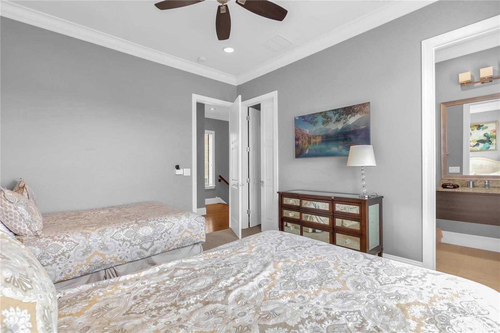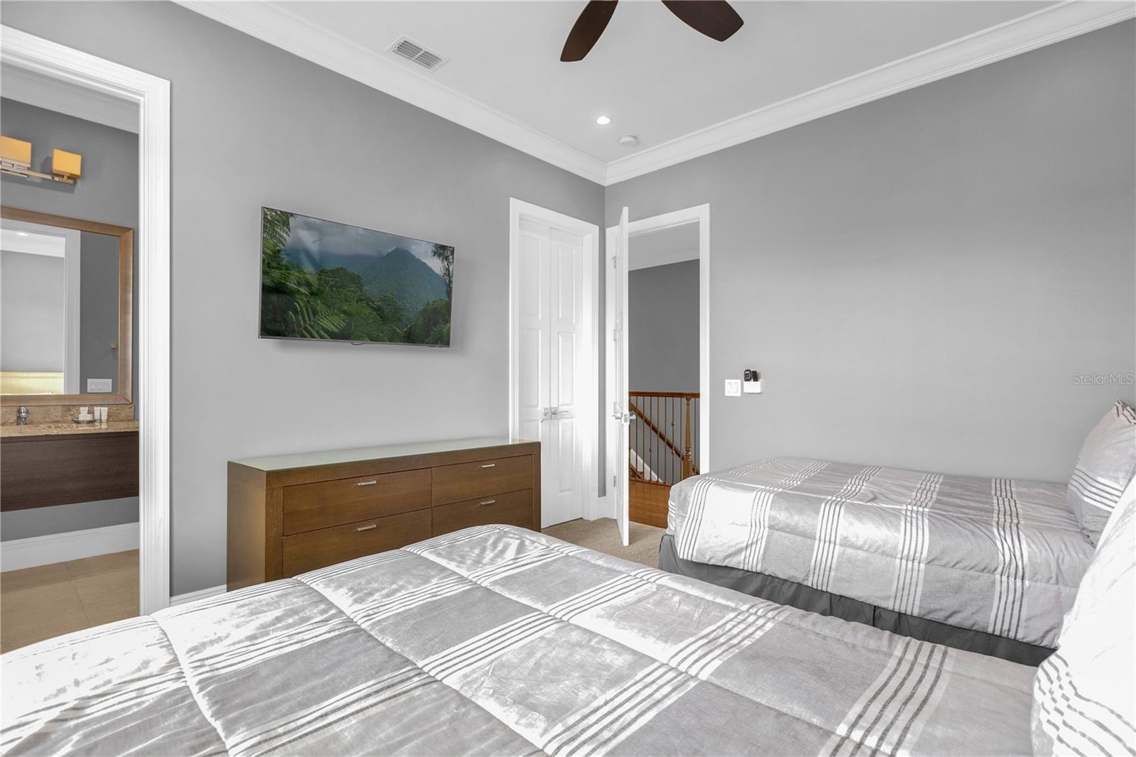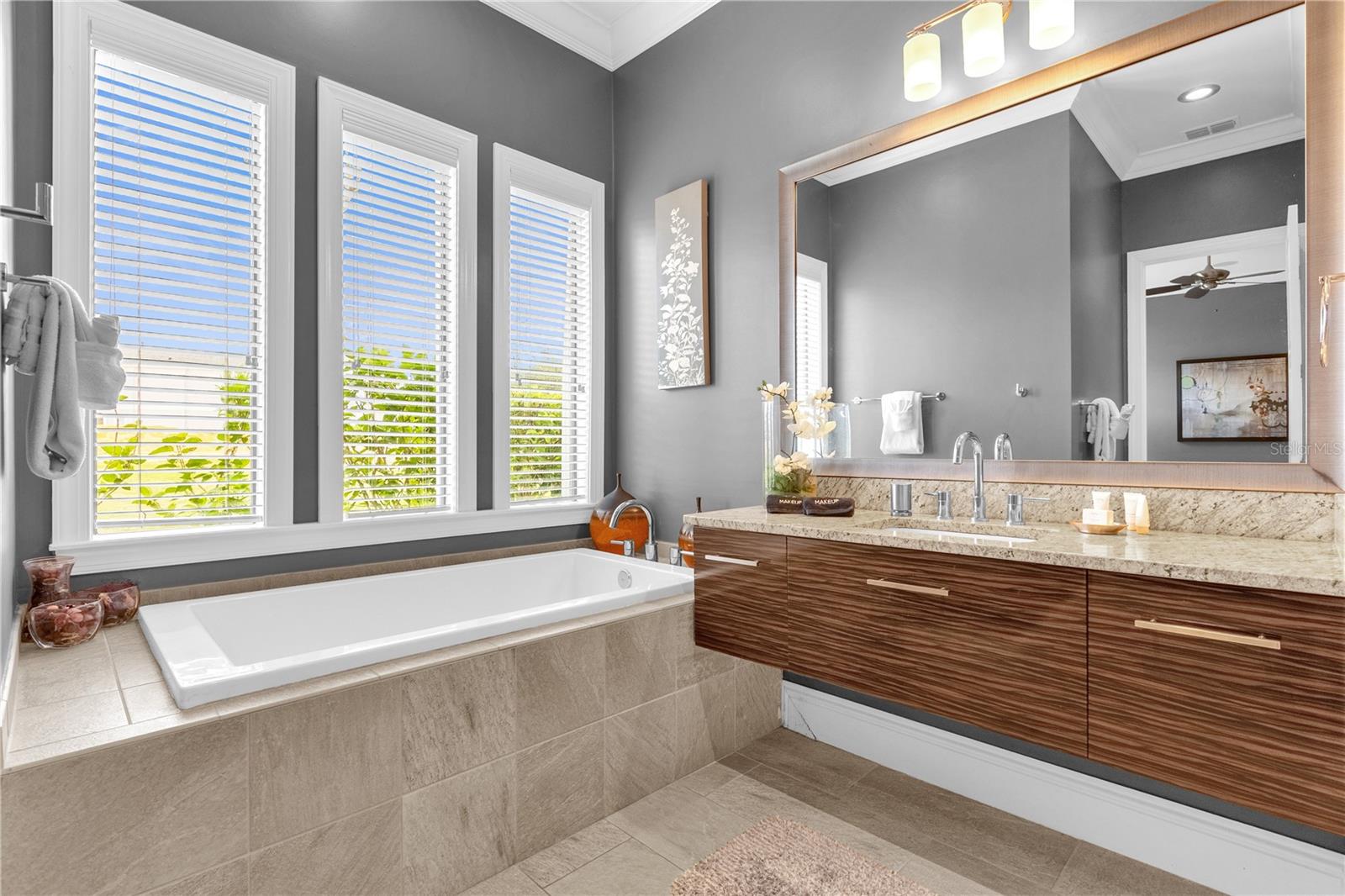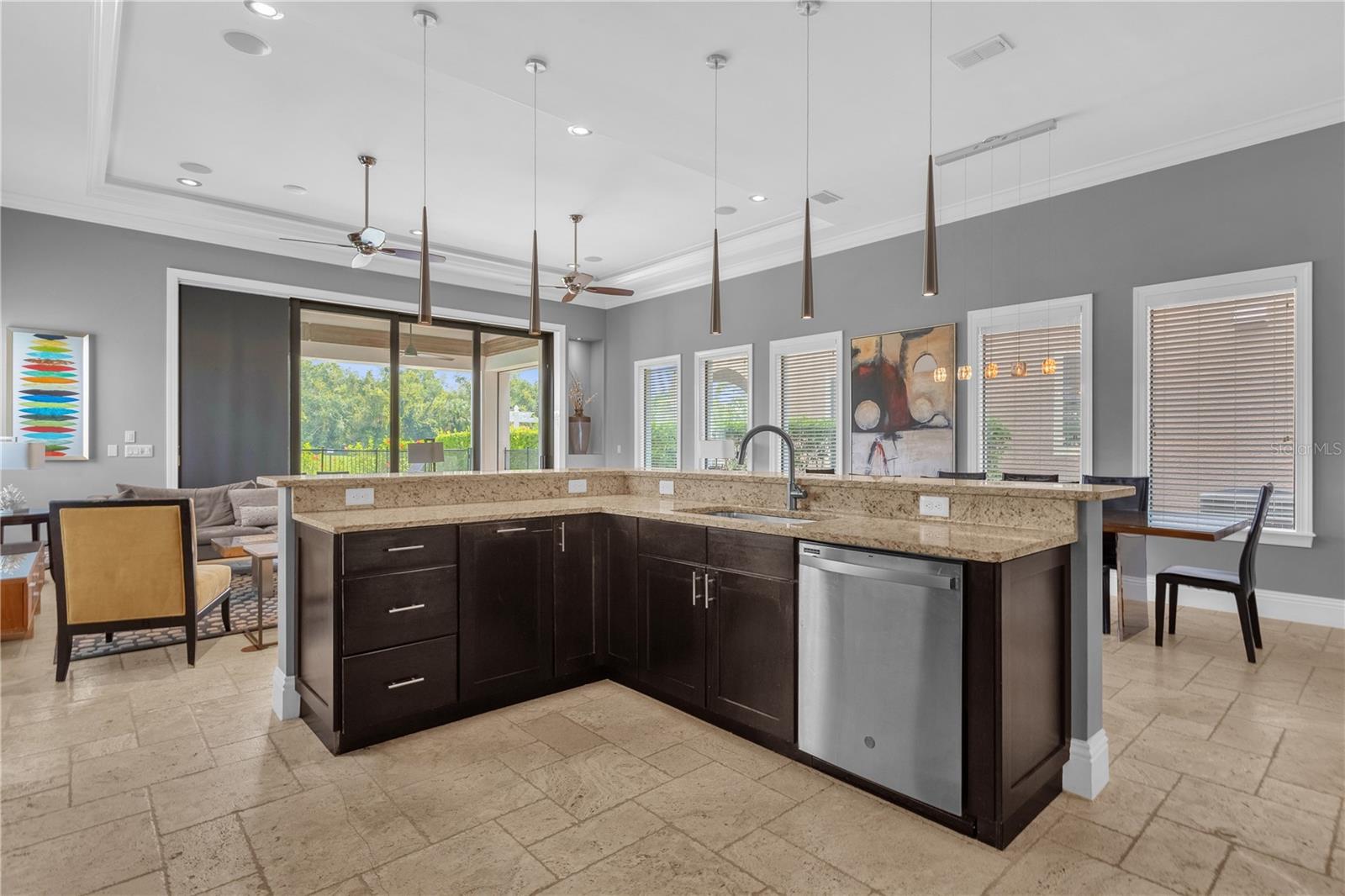 Experimente um luxo incomparável nesta obra-prima personalizada de 5 quartos no campo de golfe Nicklaus Entre num mundo de elegância e sofisticação nesta deslumbrante residência de 5 quartos construída à medida, perfeitamente posicionada ao longo do buraco 9 do prestigiado campo de golfe Nicklaus. Localizada em um condomínio fechado e exclusivo a apenas 15 minutos da Disney, esta casa oferece o que há de mais luxuoso em termos de vida e é um investimento ideal ou uma segunda residência. Ao entrar, você é saudado por tetos altos de 3,6 metros no primeiro andar e tetos de 3 metros no segundo, criando um ambiente grandioso e arejado. Amplos controles deslizantes de vidro PGT de 10 pés inundam os espaços de estar com luz natural e se abrem para um luxuoso oásis ao ar livre. A cozinha de verão coberta, completa com churrasqueira e pia de aço inoxidável, é emoldurada por um impressionante teto macho e fêmea de madeira manchada, exalando opulência enquanto você se diverte na piscina cintilante e na jacuzzi, tudo em um cenário de deck de travertino. Satisfaça suas paixões culinárias na cozinha gourmet, com bancadas de granito, eletrodomésticos de aço inoxidável de última geração e um refrigerador de vinho pronto para refrescar suas melhores seleções. Para entretenimento, a casa conta com uma luxuosa sala de cinema com teto em caixotões e bar molhado, perfeita para noites de cinema, e uma sala de jogos equipada com mesa de sinuca, mesa de pôquer e pebolim para noites familiares inesquecíveis. O primeiro andar oferece um quarto bem equipado, enquanto o segundo andar abriga uma grande suíte master e três quartos adicionais, cada um projetado com atenção meticulosa aos detalhes. Todos os armários possuem sistemas embutidos personalizados e todos os banheiros são adornados com portas de box de vidro sem moldura, realçando a atmosfera aberta de spa. Possuir uma parte desta propriedade requintada significa desfrutar de todas as comodidades cinco estrelas do principal resort da região, incluindo golfe de classe mundial, refeições gourmet, várias piscinas e um parque aquático. Isto é mais do que uma casa; é um estilo de vida de luxo e relaxamento incomparáveis.