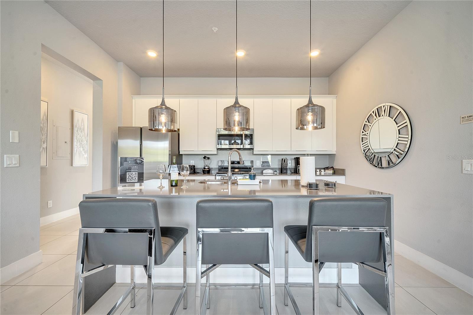 Experimente o auge da vida luxuosa contemporânea com este condomínio deslumbrante e moderno situado no altamente cobiçado Spectrum+ no Reunion Resort. Situada no coração de um importante destino de golfe, esta residência excepcional oferece elegância e conveniência incomparáveis, a poucos minutos do encanto do Walt Disney World. Entre e deixe-se cativar pelos interiores imaculados desta obra-prima TOTALMENTE MOBILIADA, cuidadosamente projetada para diversão pronta para uso. Quer procure uma residência principal ou uma propriedade de investimento, este condomínio atende a todas as necessidades, reforçado pela vantagem adicional de uma empresa de gestão de propriedades no local. A essência da sofisticação é encontrada na espaçosa planta aberta, onde três quartos e dois banheiros e meio se misturam perfeitamente para criar uma atmosfera de conforto refinado. Acabamentos modernos e atenção requintada aos detalhes realçam o ambiente, enquanto a grande cozinha se destaca como um paraíso gastronômico. Um pacote completo de eletrodomésticos Samsung em aço inoxidável, incluindo um fogão a gás, eleva as suas aventuras culinárias, e uma bela ilha de cozinha torna-se a peça central tanto para criações culinárias como para momentos preciosos partilhados com os entes queridos. A luz natural inunda a área de estar, guiando seu olhar para as portas de correr que o convidam para o amplo pátio pavimentado. Aqui, a vista panorâmica do campo de golfe prepara o cenário para encontros memoráveis, seja entretendo convidados ou deleitando-se ao sol com seu coquetel favorito na mão. Delicie-se com a vida em estilo resort com acesso imediato à luxuosa piscina, à academia totalmente equipada e ao imponente parque aquático. Deleite-se com o abraço suave do rio lento ou deslize pelos toboáguas enquanto mergulha no ambiente vibrante de Reunion. O Reunion Resort abrange 2.300 acres de paisagens deslumbrantes e oferece não um, mas TRÊS CAMPOS DE GOLFE EXCLUSIVOS - Tradição de Jack Nicholas, Legado de Arnold Palmer e Independência de Tom Watson. As comodidades adicionais incluem duas lojas profissionais de golfe, uma infinidade de piscinas comunitárias, quadras de tênis, instalações para conferências e uma infinidade de opções gastronômicas, desde uma excelente churrascaria até um charmoso sushi bar. Aproveite esta oportunidade incomparável de abraçar o estilo de vida da Flórida nesta casa requintada, onde luxo, lazer e sofisticação convergem em perfeita harmonia. Seu oásis aguarda o Spectrum+ no Reunion Resort – um mundo de maravilhas, elegância e infinitas possibilidades.
