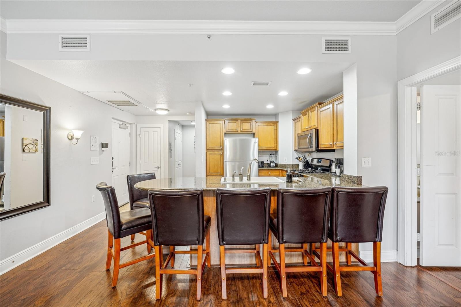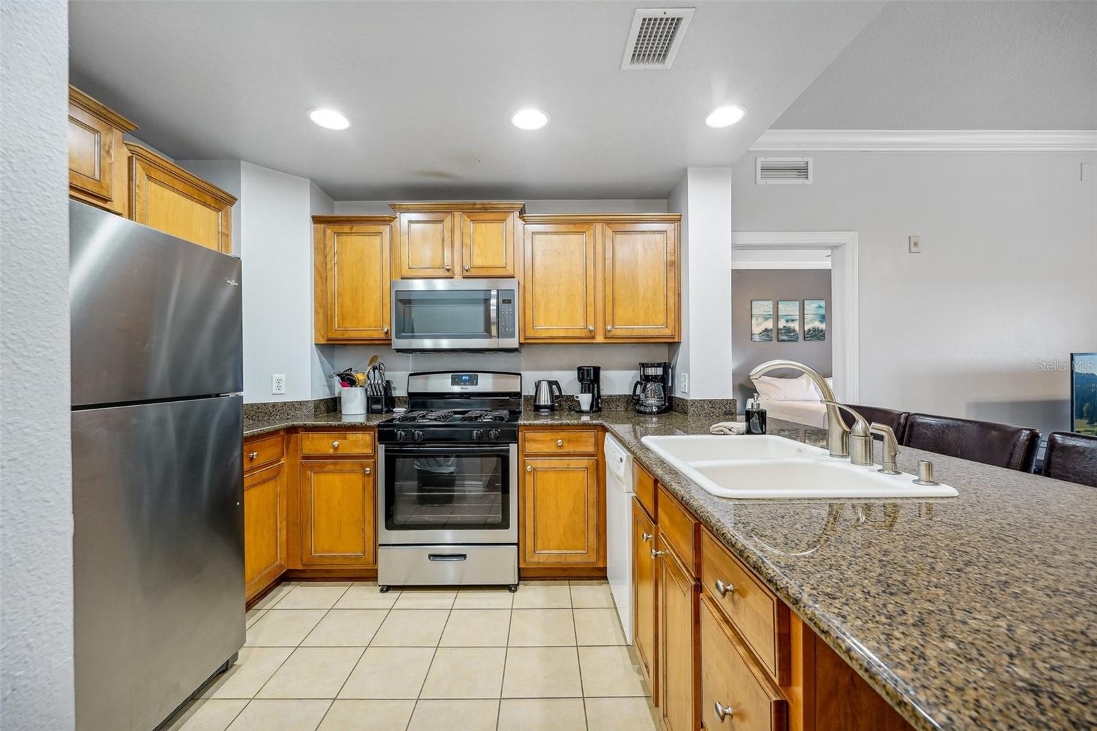 Experimente a elegância deste condomínio imaculado de 3 quartos e 2 banheiros no segundo andar com vistas deslumbrantes do campo de golfe, localizado no condomínio fechado de Heritage Crossing no Reunion Resort. Esta unidade lindamente conservada possui uma planta dividida e aberta, com tetos altos e luz natural abundante. A cozinha totalmente equipada apresenta armários de madeira maciça, bancadas de granito, eletrodomésticos de aço inoxidável e uma conveniente barra de café da manhã. A espaçosa sala abre para uma generosa varanda, com vista para o campo de golfe. A suíte principal também inclui varanda privativa com vista para o campo de golfe, closet e banheiro privativo com chuveiro revestido em azulejos e banheira de imersão. Ambos os quartos de hóspedes são de tamanhos generosos, proporcionando amplo espaço no armário e fácil acesso ao banheiro de hóspedes e ao armário da lavanderia na unidade. O prédio dispõe de elevador e amplo estacionamento aberto para sua comodidade. Heritage Crossing oferece um estilo de vida de baixa manutenção com acesso a duas piscinas comunitárias, bem como as comodidades do Reunion Resort, incluindo restaurante, academia e oito piscinas estilo resort. A apenas uma curta distância de carro da Disney, Universal e de todas as atrações de Orlando, esta propriedade é ideal para residência permanente, casa de férias ou aluguel de curto prazo. Não perca, agende seu tour hoje mesmo!