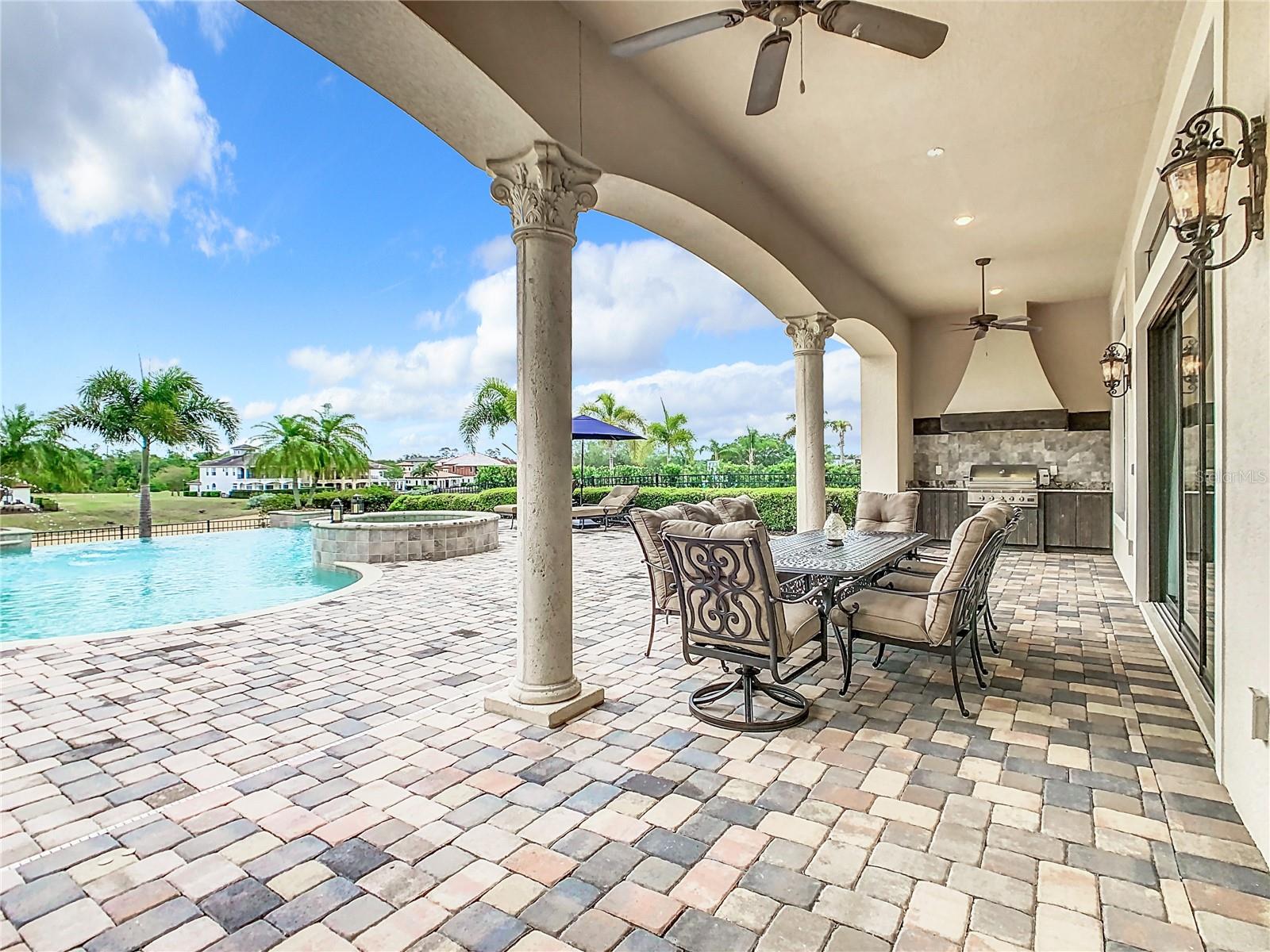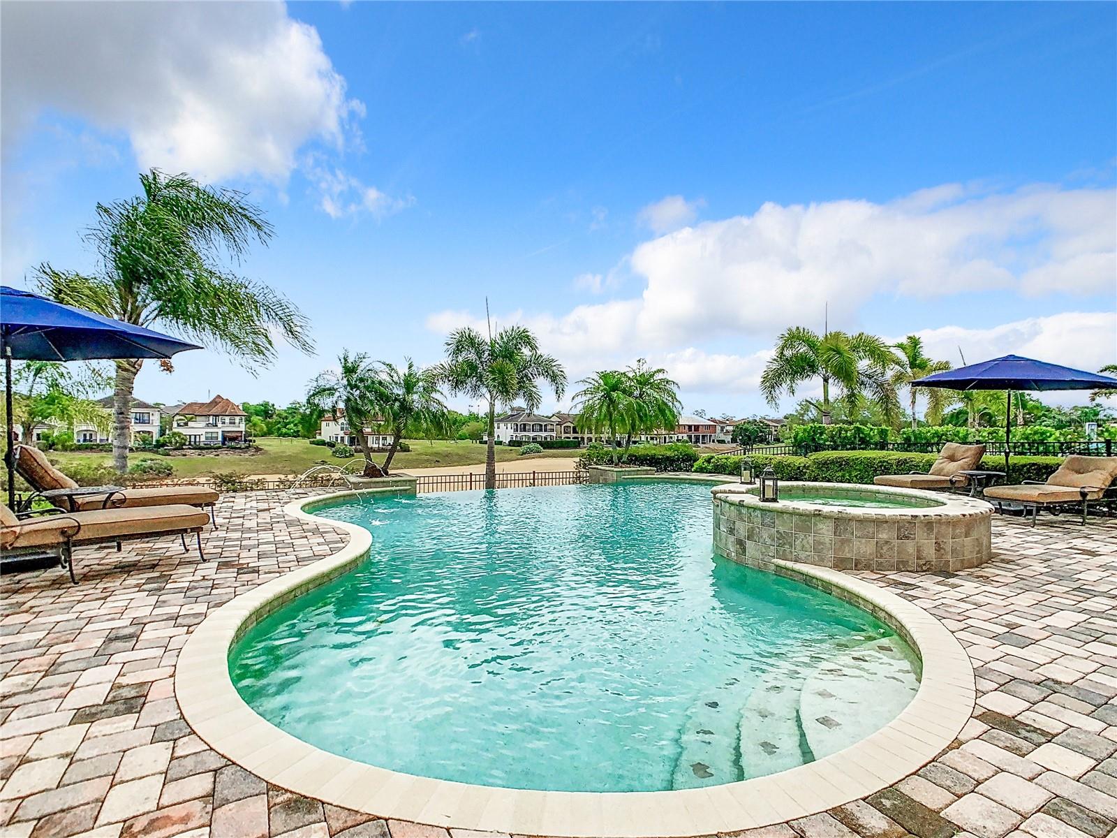 Descubra uma casa de transição impressionante com uma "associação ao resort de reunião ativa", perfeitamente situada no 14º buraco do estimado campo de golfe de Jack Nicklaus. Com mais de 7.000 pés quadrados, essa propriedade está situada na comunidade de resorts de reunião muito procurada. Construído pela McNally Construction, um renomado construtor de casas de luxo, passou por uma renovação de luxo em 2023, com atualizações requintadas, detalhes de designer e tecnologia doméstica inteligente. Este retiro privado está localizado em um lote de alta elevação, longe dos caminhos do carrinho. Apresenta uma oportunidade única para os compradores que buscam uma das casas mais encantadoras da seção executiva da Reunião, oferecendo privacidade e charme. Ao entrar pelas grandes portas de ferro duplo, você será recebido por uma deslumbrante entrada abobadada de dois andares, adornada com a intrincada madeira personalizada, uma marca registrada das melhores casas. Passeie pela elegante galeria e admire a torre de três andares, completa com um lustre magnífico e vistas do campo de golfe. A cozinha dos sonhos do chef possui aparelhos gourmet de ponta, belas bancadas em granito, armários premium com moldagem por coroa e características de perto. Faça a transição perfeitamente para o Lanai, onde você encontrará o espaço dos sonhos de um artista com vista para o campo de golfe, com uma grande piscina infinita aquecida e spa, cozinha ao ar livre de um chef com uma grade de gás natural embutida DC, uma lareira a gás externo e um Deck de piscina de pavimentação personalizada expansiva. Desfrute de um jogo de bilhar na impressionante sala de bilhar de dois andares, destacada por tratamentos de janelas personalizadas de 20 ou mais pés e tetos de bandeja. Depois de um dia no percurso, recue para a luxuosa suíte master, que oferece vistas da piscina infinita e paisagismo exuberante que se transforma em um cenário mágico à noite. Relaxe em sua banheira de spa no ar no banheiro principal lindamente projetado. Os hóspedes serão tratados com dois quartos principais de luxo adicionais no segundo andar, cada um com uma banheira de jardim, chuveiro, pias duplas, armários e uma varanda completa com vistas deslumbrantes de campo de golfe. Esta casa inteligente inclui automação de piscina controlada por voz e aplicativo, um sistema de iluminação de casa inteira, persianas motorizadas, abridores de portas de garagem com Wi-Fi-Fi, trane XV Speed Speed System Sistema de proteção contra vazamentos de água com um fechamento principal de água remota. As conveniências adicionais incluem três elevadores de lustre e um sistema de filtração de água comercial em casa com água quente instantânea, maximizando a eficiência energética com janelas de termopano de alumínio. O renomado Worldnewed Reunion Resort oferece três campos de golfe no campeonato, comodidades privadas, um parque aquático excepcional e um rio Lazy, tênis e centros de golfe, um spa, várias opções de refeições requintadas e está convenientemente localizado a menos de 15 minutos do Walt Disney World.