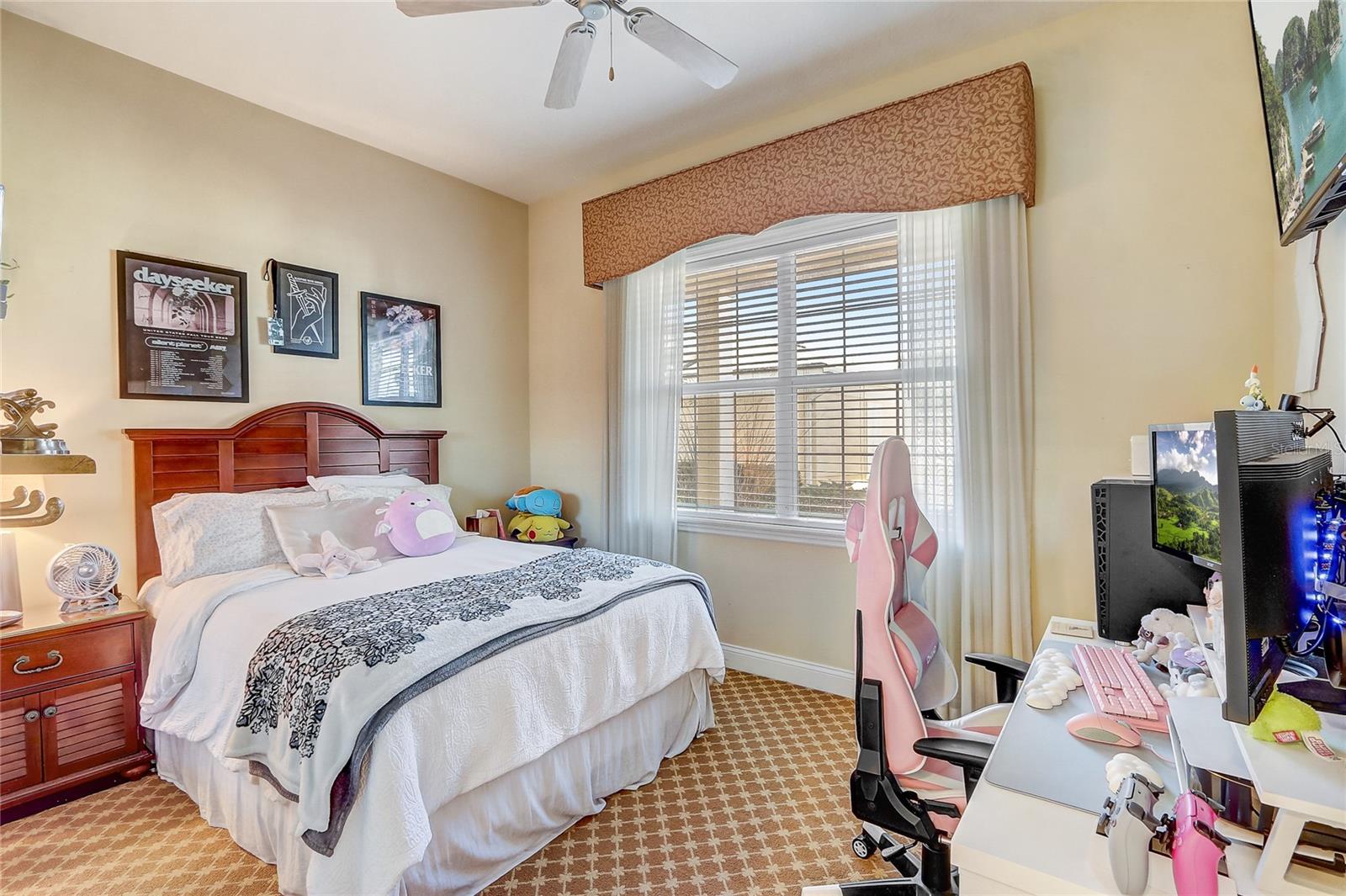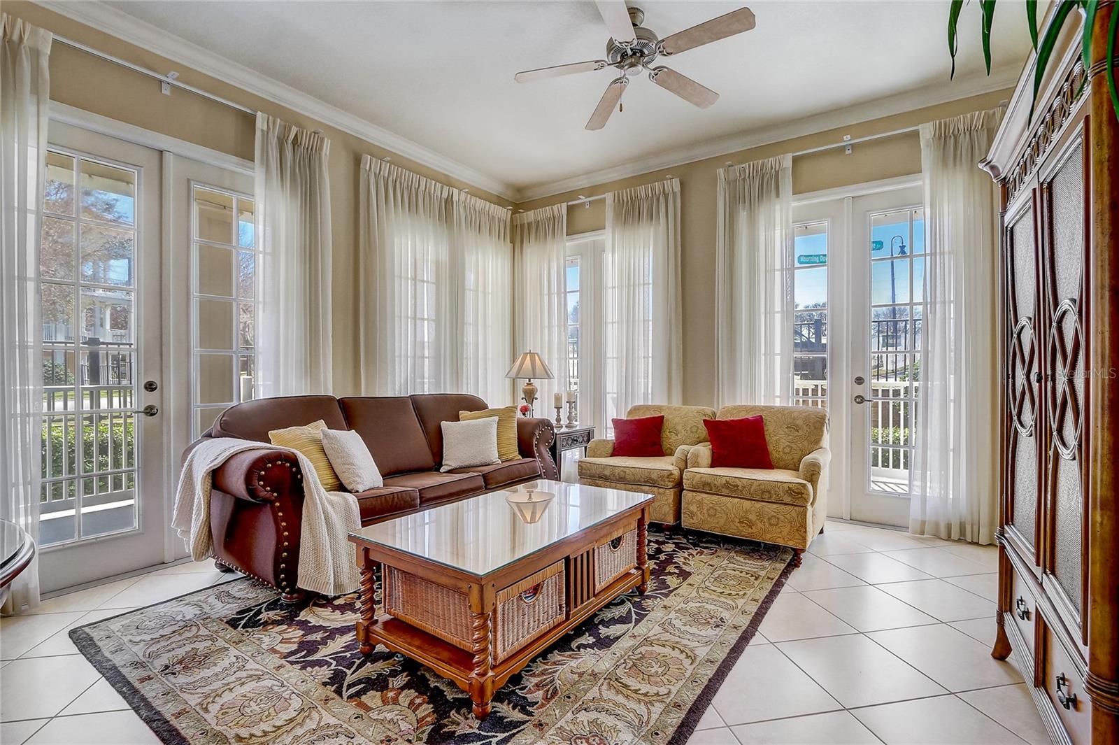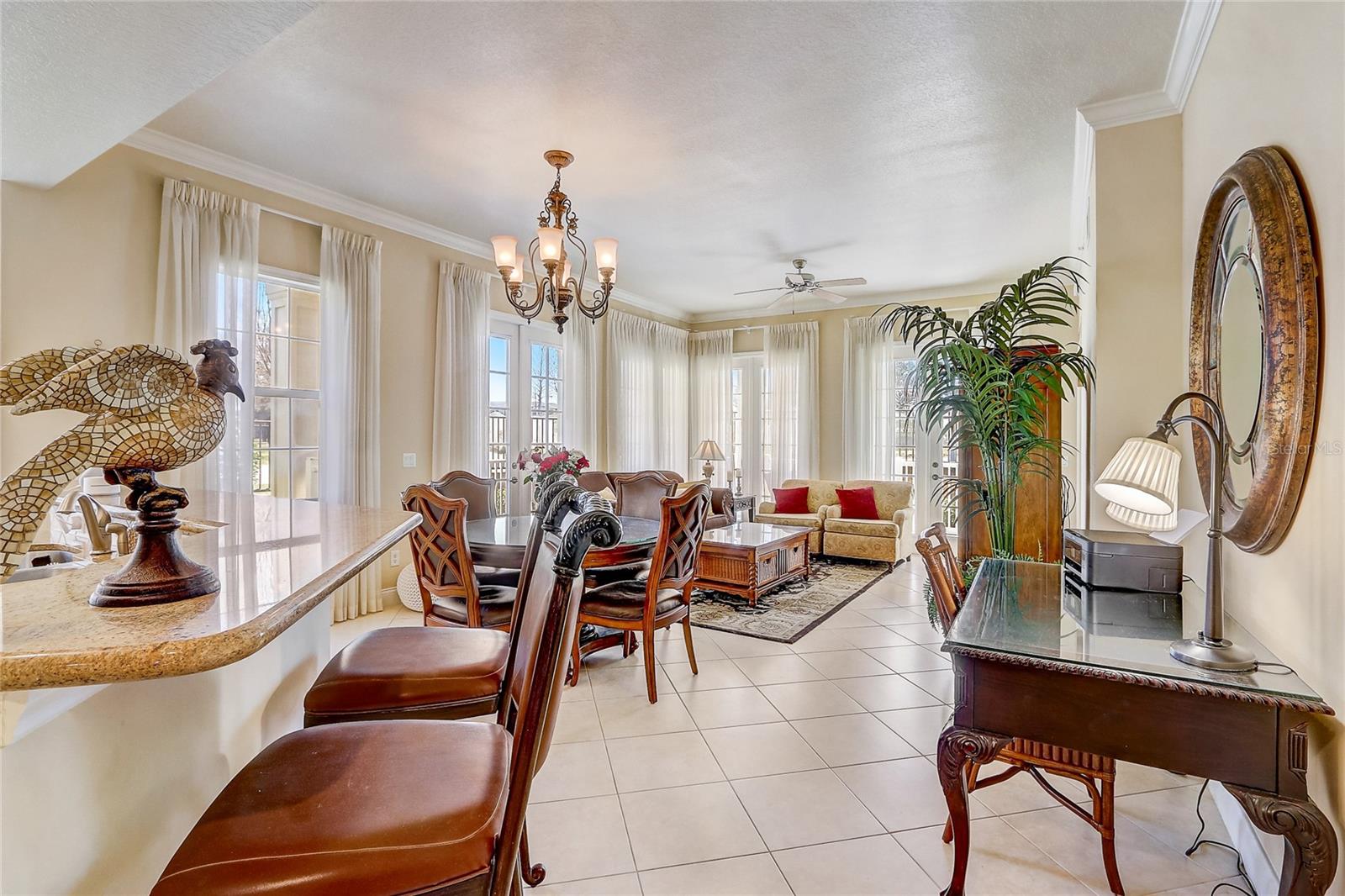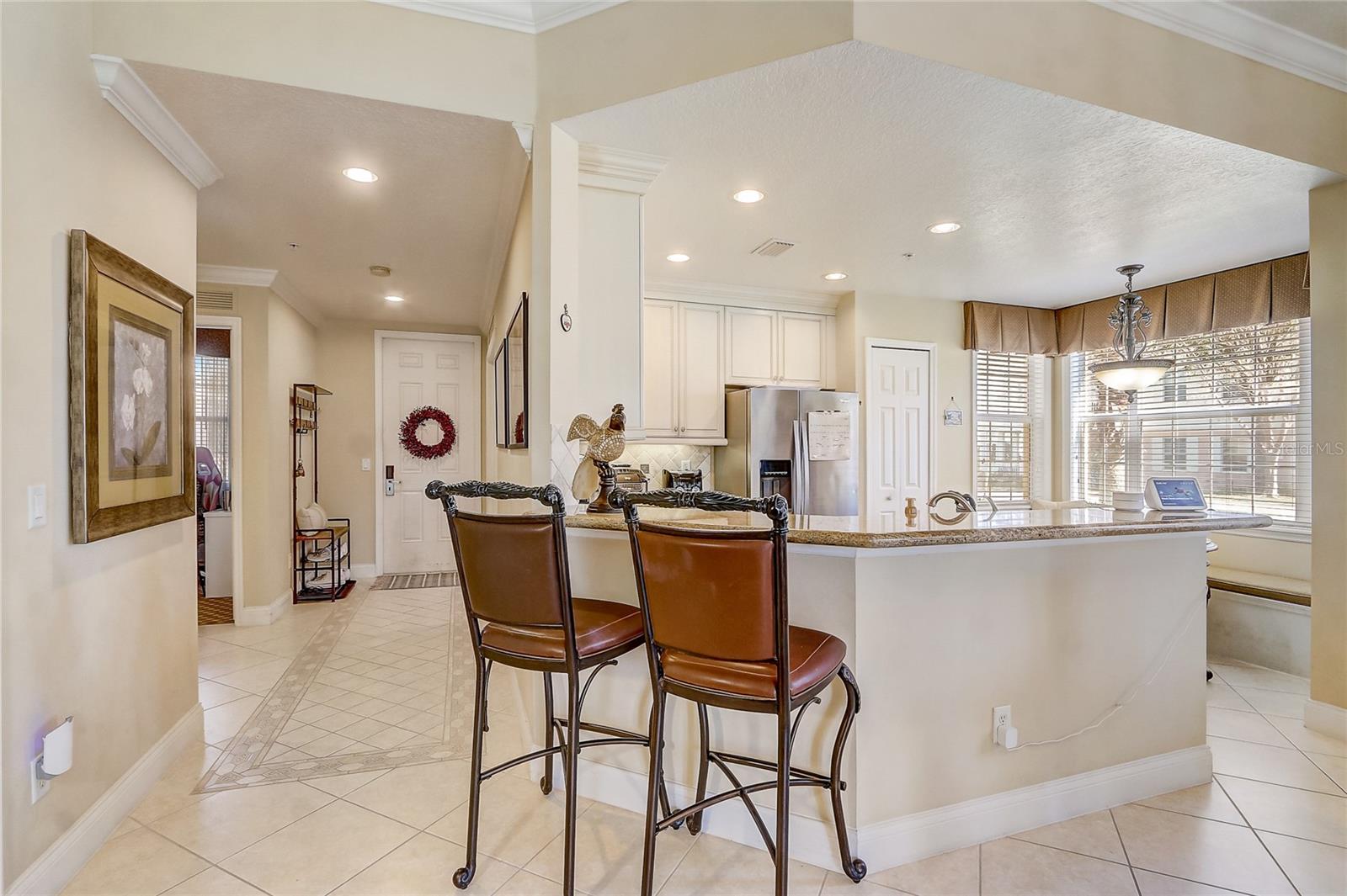 Bem-vindo a este encantador condomínio totalmente mobiliado de 3 quartos e 2 banheiros, localizado no condomínio fechado desejável de terraços em Reunião, Flórida. Com 1.419 pés quadrados de espaço de estar, esta unidade final lindamente decorada fica a poucos passos da piscina comunitária. Esta casa também possui uma varanda envolvente e grandes janelas por toda parte, proporcionando uma abundância de luz natural. Inclui uma garagem final com espaço para estacionar outro carro em frente à garagem para maior conveniência. O ar condicionado é uma nova unidade comprada há 1/2 anos, e há aparelhos mais novos, como uma disposição de lixo e um novo microondas este ano. Ao entrar, você será cativado pela planta baixa que conecta perfeitamente a cozinha, a sala de jantar e a sala de estar. A cozinha é o sonho de um chef, com uma barra de café da manhã, utensílios de aço inoxidável, um elegante backsplash, bancadas sólidas e um espaço aconchegante. Adjacente à cozinha, você encontrará a área de jantar e a espaçosa sala de estar, ambos perfeitos para entretenimento ou relaxamento. A casa é aprimorada ainda mais pela moldura da coroa, adicionando um toque de elegância. Através das portas francesas da sala, você encontrará seu próprio pátio coberto privado - um espaço perfeito para aproveitar o ar livre em privacidade. O quarto principal é um retiro sereno com tetos de bandeja, um closet e um banheiro luxuoso em suíte que inclui pias duplas e um lindo chuveiro de azulejos de vidro. Com uma planta baixa, esta casa oferece privacidade e conforto para todos. Os recursos adicionais incluem lavanderia na unidade, uma garagem de 1 carro e muitos itens incluídos na venda da casa, preparando-a pronta. A localização principal deste condomínio coloca você próximo a parques temáticos de renome mundial, compras, refeições e três campos de golfe de assinatura projetados por Arnold Palmer, Jack Nicklaus e Tom Watson. Não perca a chance de possuir este condomínio impressionante em um local vibrante e conveniente!