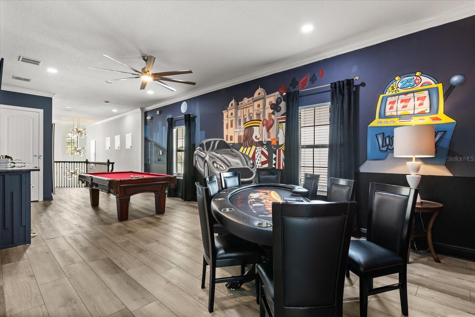 CASA DE ASSOCIAÇÃO DO REUNION RESORT! PISCINA incrível e VISTA em Reunião e casa totalmente temática e otimizada vem com isso! Não há melhor planta baixa para potencial de aluguel! 2 Suítes Master-Check, a maior piscina da Reunião para o tamanho do lote medindo 27 pés de comprimento e 19 pés de largura, juntamente com vistas inesquecíveis do campo de golfe - Para quem procura uma casa para alugar, uma casa de investimento ou uma ótima família para fugir de casa, é isso! Esta casa teve mais de 100 mil atualizações, incluindo novos pisos, temas e jogos, o que a torna uma estrela do aluguel. Bem-vindo ao 915 Golden Bear na “rua dos GIGANTES” no Reunion Resort. Esta casa de 5 quartos e 5 banheiros e meio realmente tem tudo. Não há necessidade de ir a um parque temático, lutar contra as filas, nadar na piscina de algum hotel, esta casa é o seu RESORT PESSOAL. A grande planta aberta está repleta de espaços de reunião em ambos os níveis da casa. A sala principal no primeiro andar oferece vistas espetaculares do campo de golfe e uma piscina de borda infinita. Uma vez no pátio pavimentado, há uma cozinha externa com vários espaços de descanso para todos. A casa fica um pouco mais alta que o campo de golfe e dá à propriedade uma sensação imponente. O tema nesta casa NÃO PODE SER subestimado. Um quarto com tema MARIO BROS, um beliche com tema JUNGLE, uma área LOFT para adultos com aquele toque “JAMES BOND”, incluindo uma mesa de pôquer 915 Golden Bear personalizada! Você quer mais? A reforma da garagem chama a atenção para uma das atrações mais populares da região, TRON. Crianças em idade escolar, pré-adolescentes, adolescentes e aqueles que nunca querem crescer podem ter uma experiência única nesta propriedade. Termine tudo com uma varanda privada fora do mestre para escapar de tudo! A casa está sendo oferecida mobiliada e informações do administrador da propriedade estão disponíveis. Reunion Resort tem tudo o que você deseja em uma comunidade, incluindo 3 campos de golfe exclusivos, restaurantes de classe mundial, parques aquáticos, rio lento, toboáguas, áreas de observação de fogos de artifício, ruas arborizadas, parque para cães, playground, driving range, simulador de golfe, eventos para membros, serviço de transporte no resort e espaço para eventos. Viva o estilo de vida do resort como um VIP. ¡¡¡NENHUMA OUTRA RESORT NA ÁREA TEM ISSO!!! Clique no link virtual e marque uma visita hoje mesmo. Não aposte que este vai durar muito. (Rimshot)