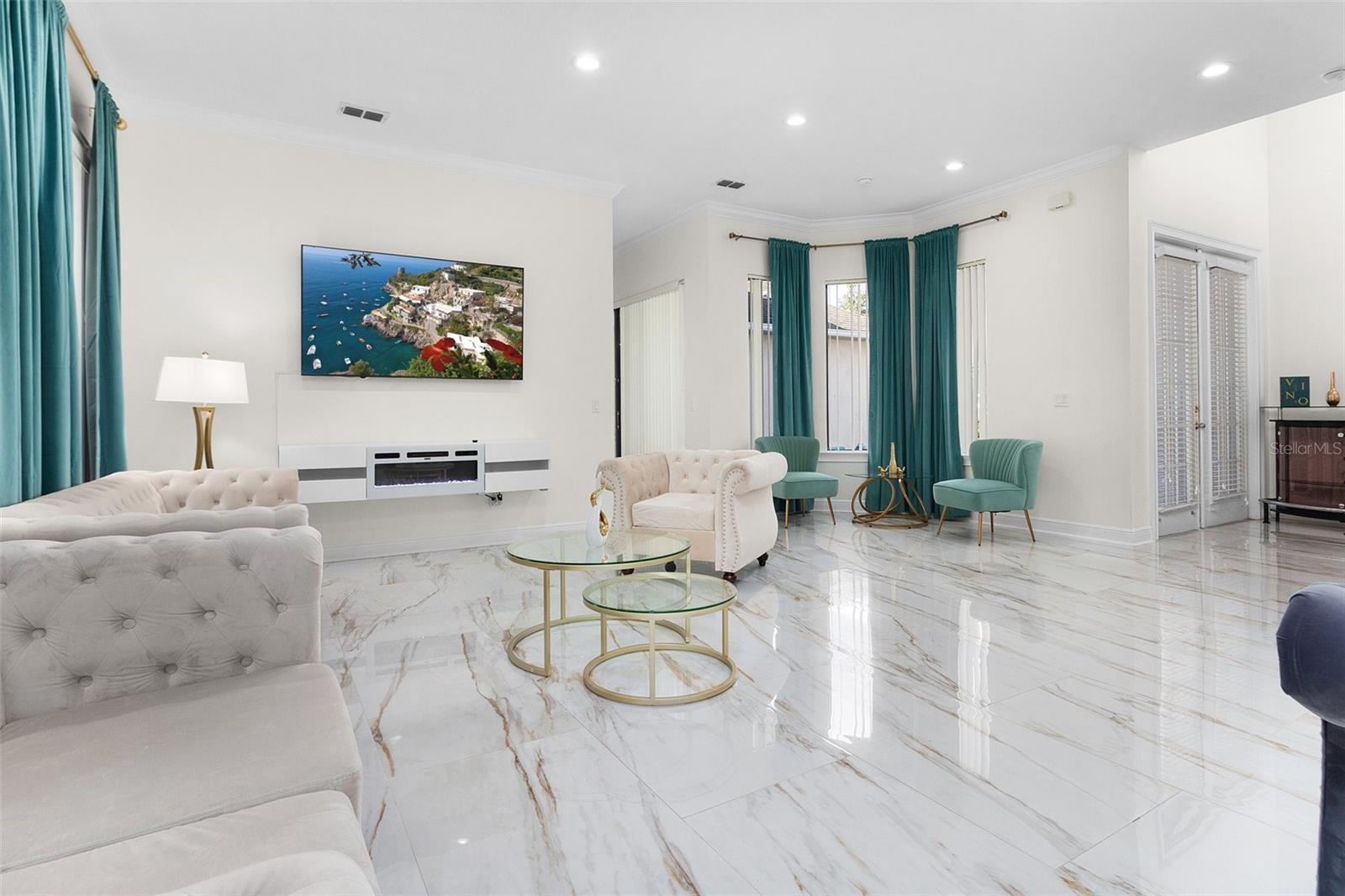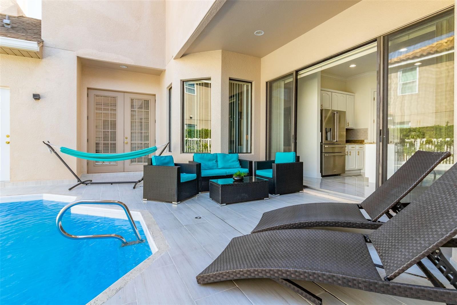 Experimente a vida em estilo resort nesta casa com piscina lindamente atualizada, idealmente situada no coração do cobiçado bairro de Homestead do Reunion Resort. A poucos passos dos muitos restaurantes, piscinas e instalações recreativas da comunidade, esta residência oferece a combinação perfeita de luxo e conforto. O nível principal apresenta impressionantes porcelanatos claros e gira em torno de uma piscina privativa aquecida no pátio, com desejável exposição sul e oeste. A luz solar preenche o interior espaçoso, destacando características de destaque em todos os cômodos - desde a elegante área de estar com uma lareira elétrica vibrante até a moderna cozinha em ilha equipada com eletrodomésticos ZLine de alta eficiência energética, bancadas de quartzo, balcão para café da manhã e acesso direto à piscina por meio de portas deslizantes. Desfrute de refeições ou entretenimento na elegante sala de jantar com área de estar adjacente iluminada pelo sol. A suíte principal do primeiro andar é um verdadeiro retiro, completa com banheira inspirada em spa com chuveiro com efeito de chuva, banheira de imersão com iluminação ambiente, pia dupla com acabamento em quartzo e closet personalizado com embutidos - todos acentuados em tons suaves de ouro e branco. Uma segunda suíte no andar principal também se abre para a piscina, ideal para hóspedes ou residências multigeracionais. No andar de cima, dois quartos adicionais luminosos e de tamanho generoso, cada um com banheiros privativos atualizados, enquanto uma versátil área de loft atualmente funciona como sala de jogos, mas pode facilmente servir como escritório doméstico ou escritório. Esta casa bem conservada inclui inúmeras atualizações recentes, como recapeamento da piscina, um novo deck e uma unidade de AC totalmente nova. Oferecida com decoração elegante e totalmente nova (opcional), a propriedade está pronta para morar - perfeita como residência principal, retiro de férias ou aluguel gerador de renda. O HOA cobre cuidados com o gramado, internet de alta velocidade e cabo HD, e os residentes têm acesso às excelentes comodidades do Reunion, incluindo academias de ginástica, piscinas, restaurantes e muito mais. Localizada a apenas 9,6 km do Walt Disney World® e a cerca de 30 minutos do Aeroporto Internacional de Orlando, esta casa oferece um valor excepcional em uma localização imbatível.