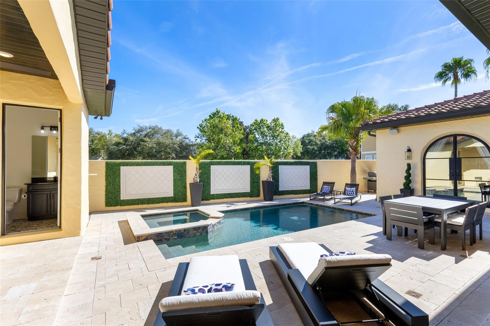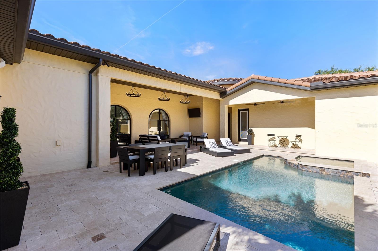 No coração do Bairro Procurado de Homestead do coração, esta rara casa personalizada de luxo de um andar oferece um equilíbrio de privacidade, elegância e vida no estilo resort. Emoldurado por vistas frontais do campo de golfe de Tom Watson e projetado em torno de um pátio murado com uma piscina e spa, a casa convida uma sensação de calma e recuar no momento em que você entra. As portas do pátio em arco abrem da área de estar principal e da expansiva suíte primária, criando uma conexão perfeita com o tranquilo espaço ao ar livre. No interior, o estilo combina a arquitetura espanhola atemporal com interiores quentes e transitórios, aprimorados por uma variedade de detalhes arquitetônicos surpreendentes que adicionam charme e caráter. Beamed ceilings, a cozy fireplace and elegant Ethan Allen furnishings anchor the open-concept living and dining space, while twin archways lead to a beautifully appointed farmhouse kitchen featuring a Thermador range and built-in high quality appliances, walk-in pantry, and a custom eat-in design with built-in seating for four—a seamless extension of the expansive kitchen counter that makes gathering effortless and inviting. A suíte primária privada é um santuário, completo com sua própria lareira, televisão de 70 polegadas, barra de refresco, banho de spa com uma banheira autônoma brilhante e um closet personalizado, além de uma sala de bônus ideal para uma academia, escritório ou vestiário adicional. Três quartos adicionais incluem uma casita separada com entrada privada, ideal para hóspedes ou família extensa. Oferecido totalmente mobiliado e pronto para o prazer imediato, a casa também possui uma associação ao clube de reunião ativa que concede acesso opcional às comodidades de classe mundial do resort-três campos de golfe, um parque aquático de cinco acres, tênis e pickleball, fitness centers, restaurantes e mais-e até mesmo com um carrinho de golfe para explorar o estilo comunitário. A apenas seis milhas do Walt Disney World e menos de 48 quilômetros até o Aeroporto Internacional de Orlando, esta casa oferece não apenas um lugar para se viver, mas um estilo de vida para se apaixonar. Os compradores qualificados podem receber uma compra de taxa de juros de um ano pelo primeiro ano pago pelo credor preferido do vendedor ao financiar esta casa (sujeita à aprovação do crédito e disponibilidade de programas), então ligue hoje para obter detalhes.