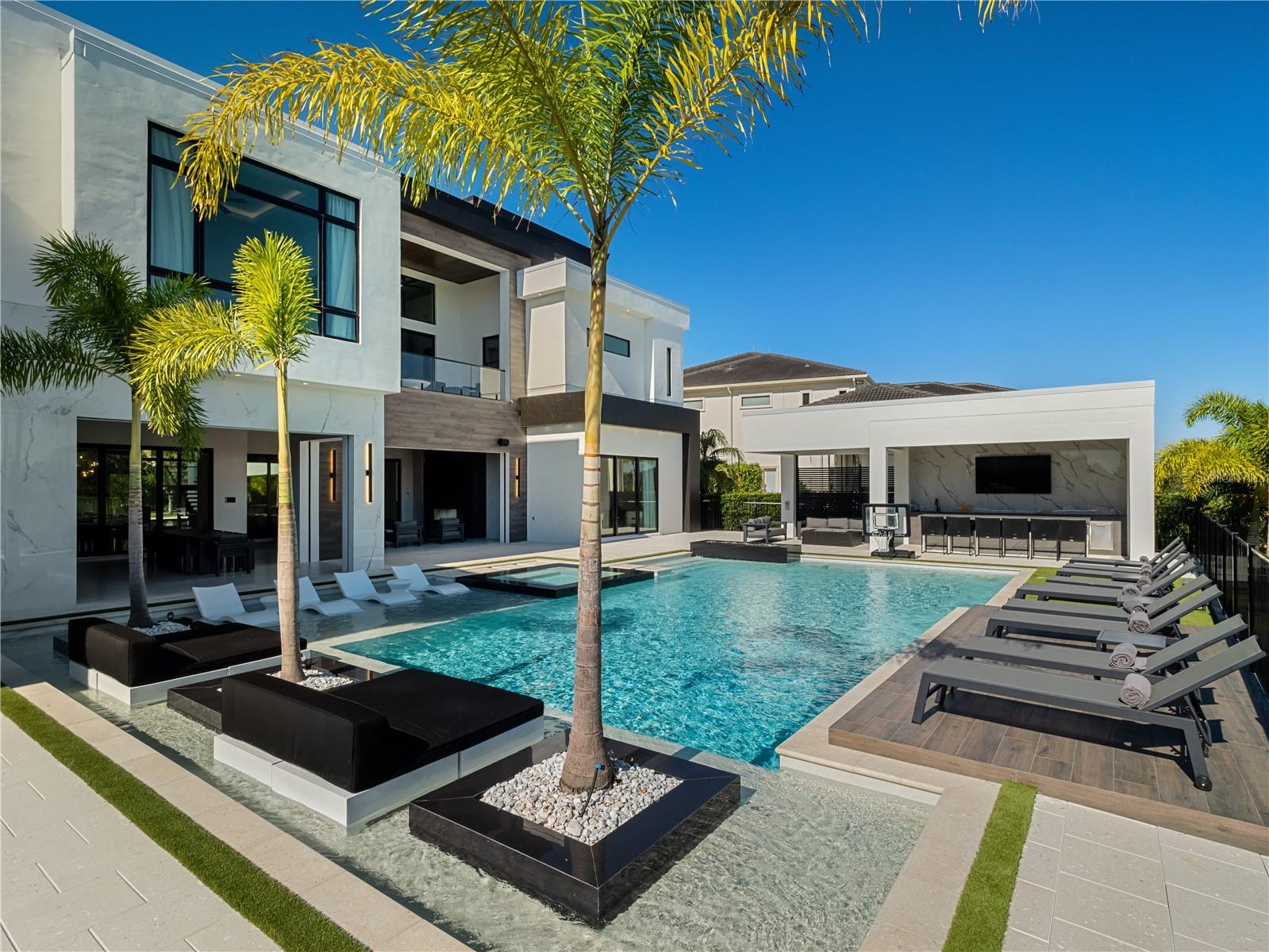Experimente o verdadeiro luxo que vive em uma das casas personalizadas mais impressionantes da Reunião-criadas por casas personalizadas do Trophy e mostrando um dos primeiros designs modernos de telhado plano da comunidade. Esta residência de 11 quartos, 11 banheiros completos e 3 meio banho combina arquitetura contemporânea elegante com comodidades ao estilo resort e vistas de campos de golfe de tirar o fôlego do 15º verde de Nicklaus. Passe pela entrada de vidro Jeld-Wen, estilo da loja, em um interior cheio de luz, com armários brasileiros personalizados por Dell Anno, escada de vidro flutuante e varandas interiores e de vidro externas com hardware preto fosco. Cada centímetro desta casa foi com curadoria com precisão - desde os detalhes da iluminação WAC até a automação residencial integrada pelo Control4. O entretenimento é abundante com um simulador de golfe em pleno swing, cinema e uma arcada de garagem equipada com seu próprio sistema A/C mini-split para o conforto durante todo o ano. O bar no nível do loft inclui uma geladeira e uma fabricante de gelo, oferecendo o espaço de encontro perfeito para os hóspedes. A vida ao ar livre atinge novos patamares com um lanai em estilo resort, com aquecedores da Infratech, lareira ao ar livre e fogueiras-uma na cabana e outra embutida na piscina. Desfrute de uma cozinha ao ar livre com uma churrasqueira de lobo de 54 ”, geladeira sub-balcão e fabricante de gelo, além de uma barra de cabana com gelo e geladeira de bebidas. O teatro ao ar livre e o sistema de som criam o cenário final para as noites de cinema sob as estrelas, aprimorado pela iluminação de paisagem personalizada e pimenta artística ao redor da piscina. Os toques únicos incluem um quarto e sala de jogos com temas de acampamento, projetados para inspirar imaginação e diversão em família. A casa está sendo oferecida totalmente mobiliada, tornando -a uma excepcional oportunidade de investimento na mão para aqueles que buscam uma propriedade de aluguel de férias ou retirada de luxo no Reunion Resort. O luxo, a inovação e o estilo de vida se reúnem perfeitamente nesta casa única-onde todos os detalhes refletem artesanato, conforto e elegância moderna.