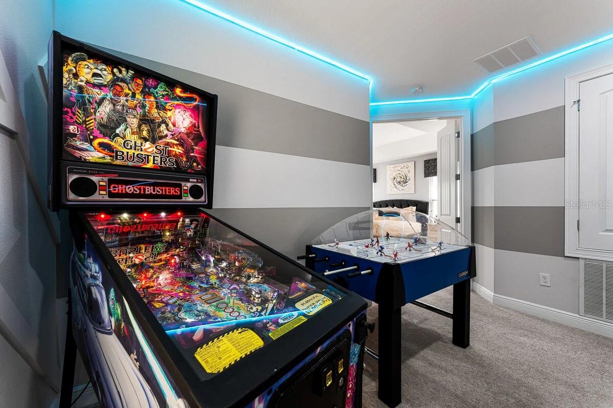 Localizada no mundialmente famoso Reunion Resort, a 795 Golden Bear Drive é uma villa luxuosa deslumbrante de 5 quartos e 5,5 banheiros que combina um design de transição sofisticado com uma experiência de entretenimento incomparável. Decorado profissionalmente com cores vibrantes inspiradas na Flórida, este modelo Crestview serve como uma residência principal ideal ou uma propriedade de investimento de férias de alto desempenho. Espaços luxuosos A planta baixa de conceito aberto cria uma atmosfera convidativa para reuniões. Cozinha Gourmet: Possui armários de madeira maciça, eletrodomésticos de alta qualidade em aço inoxidável, bancadas em granito e uma ilha central com balcão para café da manhã. Suítes Master: Inclui três espaçosas suítes King, com a master principal localizada convenientemente no primeiro andar. Quartos de hóspedes: Dois quartos adicionais possuem recantos de leitura personalizados e banheiros privativos anexos. Ala de entretenimento de elite Projetada para a melhor experiência dos hóspedes, a casa oferece espaços dedicados para diversão e relaxamento. Home Theater Privado: Um teatro de 9 lugares totalmente climatizado e com uma enorme tela de projeção de 150". Sala de jogos Loft: um espaço vibrante completo com pebolim, air hockey, pinball e máquinas clássicas de fliperama. Oásis ao ar livre Saia para um quintal voltado para o sul, projetado para maximizar o estilo de vida da Flórida. Piscina aquecida e spa: Uma piscina gunite aquecida 21x17 e um spa borbulhante com vista para o lago exuberante e para o campo de golfe. Summer Living: O pátio sombreado inclui uma conexão para churrasqueira a gás natural, perfeita para refeições ao ar livre tendo como pano de fundo o lendário campo Jack Nicklaus Tradition. Comodidades do resort Premier Como parte do Reunion Resort de 2.300 acres, proprietários e hóspedes desfrutam de uma variedade de comodidades de elite. Signature Golf: Três campos de classe mundial projetados por Jack Nicklaus, Arnold Palmer e Tom Watson. Estilo de vida do resort: acesso a um spa de serviço completo, academia, seis restaurantes, quadras de tênis e várias piscinas comunitárias. Localização: Situado a apenas 11 km do Walt Disney World®, proporcionando o equilíbrio perfeito entre a serenidade do resort e a proximidade do parque temático.
