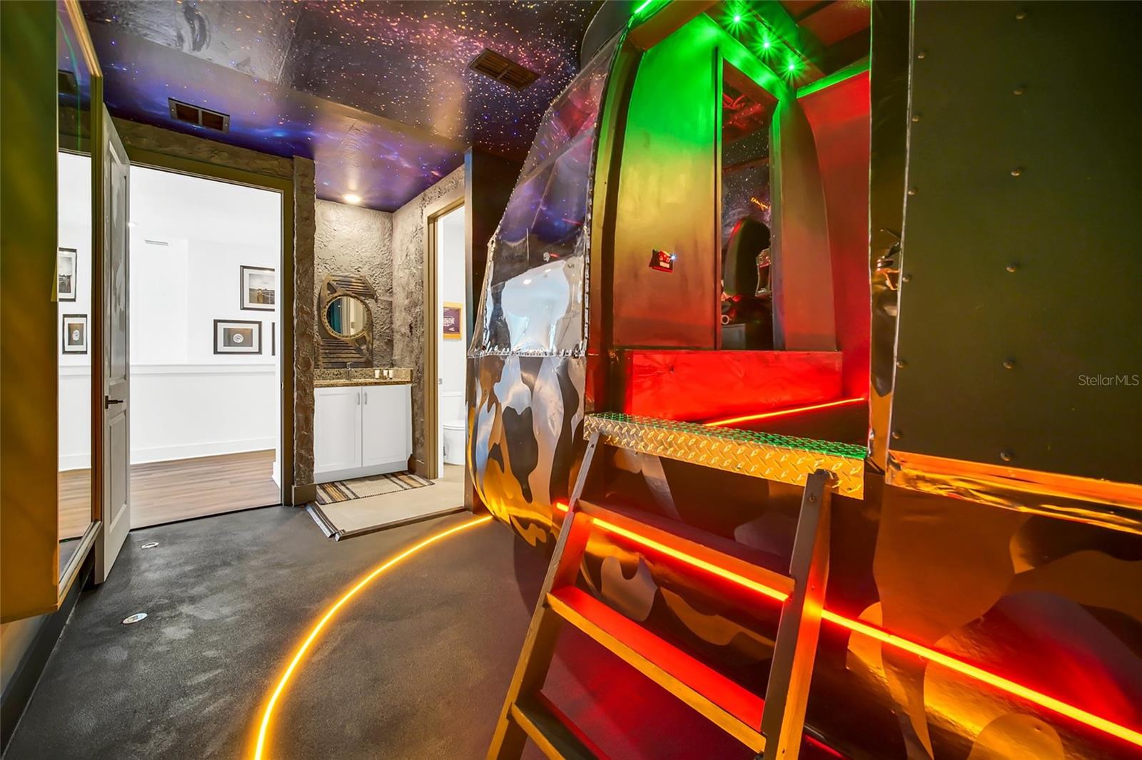 Experimente o máximo em luxo e criatividade com esta propriedade inspirada na aviação, conhecida como High Flight, localizada no Reunion Resort com 10 quartos e 8,5 banheiros. Projetada por oficiais de resgate de combate da USAF e pilotos de F-22, esta residência é diferente de qualquer outra no mercado de aluguel de curto prazo de Orlando. A propriedade inclui um raro helicóptero militar Puma aposentado em grande escala com um simulador personalizado, bem como um SS Jaguar da década de 1930 equipado com um simulador de corrida. O interior apresenta uma planta aberta com cozinha totalmente equipada, eletrodomésticos de aço inoxidável, uma ilha grande com capacidade para oito pessoas e uma sala de jantar formal com capacidade para doze pessoas. A área de estar principal inclui lareira, grandes assentos seccionais e acesso direto ao espaço ao ar livre. A piscina privativa e o spa Spillover têm vista para o campo de golfe e são complementados por seis espreguiçadeiras, uma varanda coberta, uma cozinha externa com churrasqueira e mesa de sinuca. As opções de entretenimento são extensas, incluindo um cinema privativo com sofás, uma sala de jogos com vários simuladores de vôo, jogos de realidade virtual e dois consoles Playstation 5, bem como um loft de entretenimento projetado como um lounge de aviação. Os espaços temáticos em toda a casa incluem dois quartos infantis personalizados com designs envolventes. Um deles apresenta uma configuração de beliche duplo/twin situado na parte frontal de um avião, completo com área de estar na cabine. Através do banheiro Jack-And-Jill, a segunda suíte infantil inclui detalhes inspirados na aviação, como pássaros de LED pendurados, uma cesta de balão de ar quente com uma pequena cama de solteiro e um design clássico de aeronave com quatro camas de solteiro adicionais integradas nas asas superior e inferior. Seis Suítes Master, uma Suíte Queen e Quartos de Hóspedes Adicionais Oferecem uma Variedade de Acomodações para Dormir para Grupos Grandes. Em toda a casa, lembranças autênticas da aviação e militares, uniformes de pilotos e artefatos históricos criam um ambiente distinto, com seu design exclusivo, amplas comodidades e localização privilegiada, a poucos minutos do Disney World Resort e das principais atrações de Orlando, esta propriedade oferece potencial excepcional como residência de luxo, propriedade de investimento ou retiro de férias.