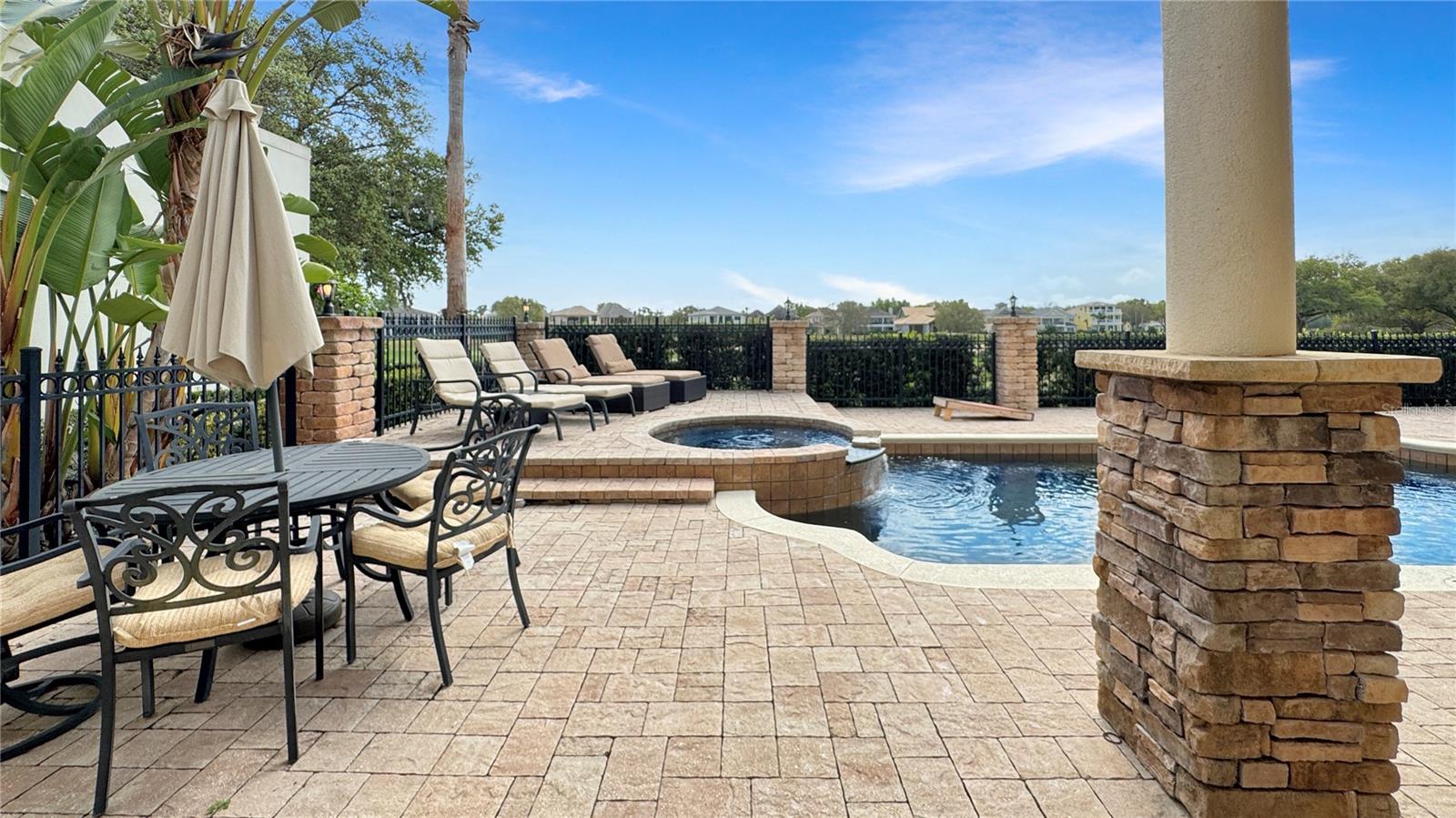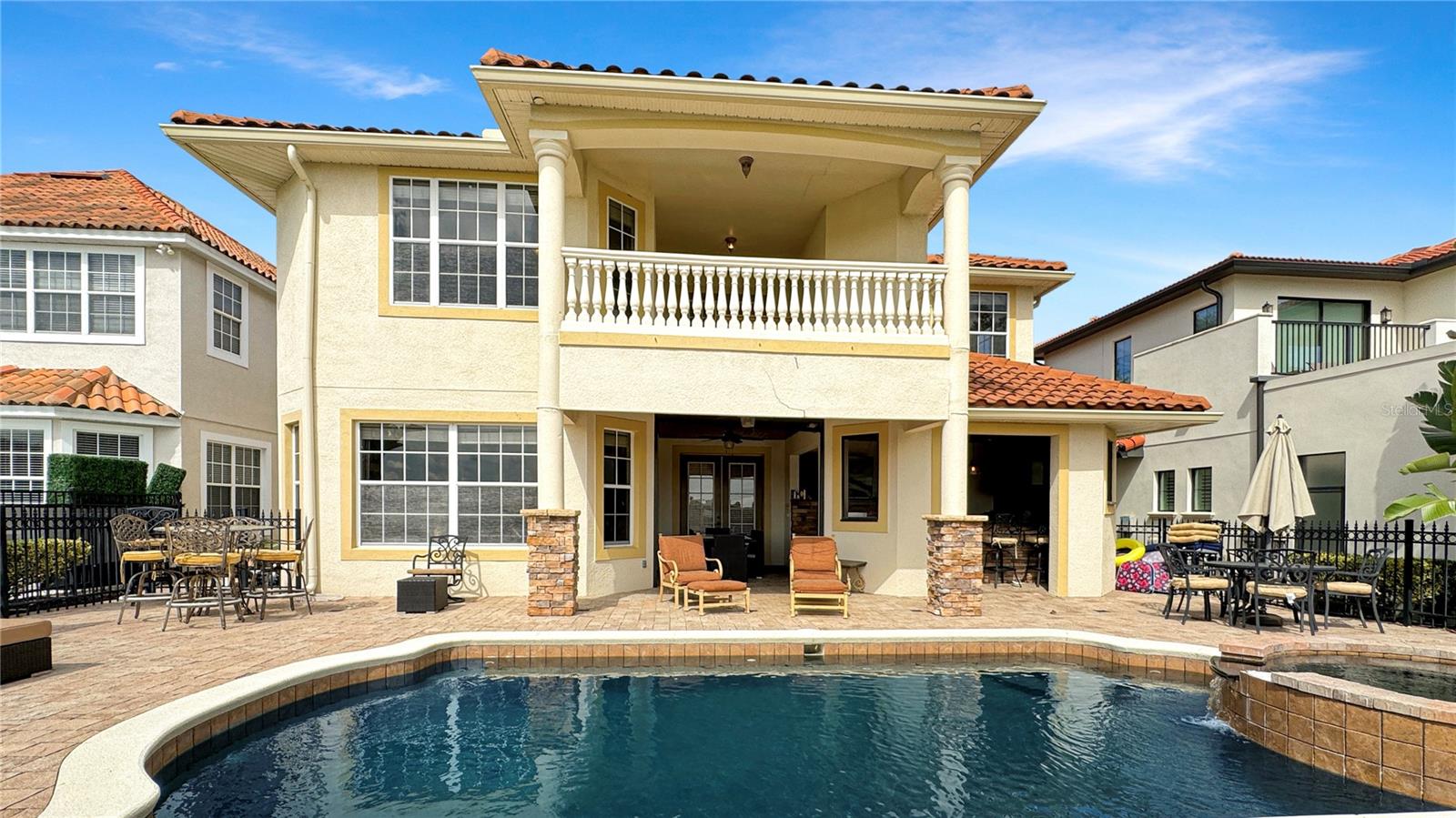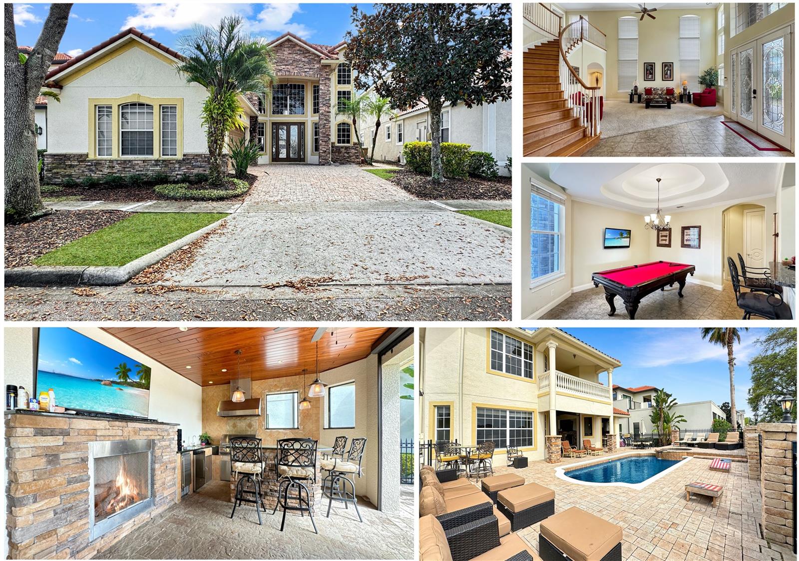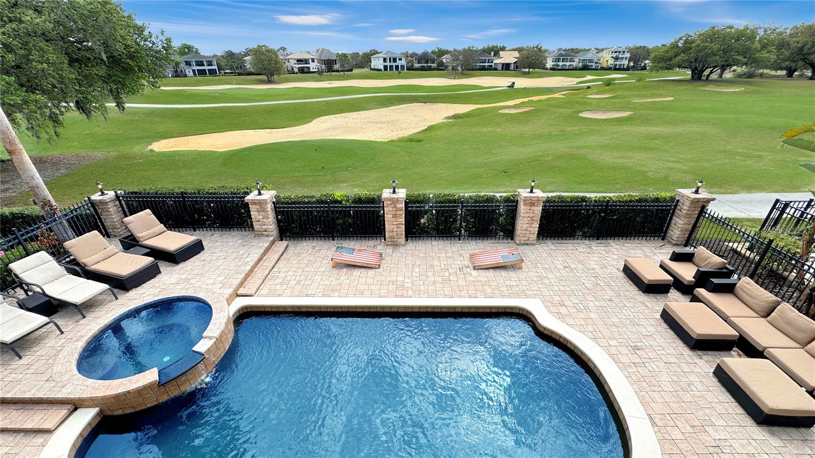 VARANDA RECÉM-RECONSTRUÍDA - ASSOCIAÇÃO ATIVA DE GOLFE - Esta casa tradicional de dois andares, construída sob medida, é um retiro de sonho para famílias e uma excelente oportunidade de investimento, perfeitamente posicionada em um terreno enorme voltado para o leste, com vistas deslumbrantes do campo de golfe exclusivo Tom Watson e nascer do sol deslumbrante. A partir do momento em que você entra, você será cativado pela sala de estar aberta e iluminada, com tetos altos de catedral, luz natural abundante fluindo através de três níveis de janelas e a impressionante escadaria principal. Projetada para diversão e relaxamento, a casa possui uma vibrante área de jogos completa com mesa de sinuca vermelha, HDTV e bar molhado, preparando o cenário para noites inesquecíveis em família ou entretendo convidados. A espaçosa cozinha possui armários em estilo carvalho, fogão a gás de quatro bocas, fornos duplos embutidos e uma grande ilha com assentos de bar - ideal para hospedagem e conveniência do dia a dia. A acolhedora sala familiar, com lareira convidativa e janelas luminosas, oferece vistas pitorescas sobre o campo de golfe e a área da piscina. Saia para um verdadeiro oásis na Flórida. O pátio coberto, adornado com pavimentação de tijolos e tetos de tábuas de madeira, apresenta uma cozinha de verão projetada sob medida com churrasqueira embutida, lareira externa e telas suspensas. O espaço ao ar livre é completo com um luxuoso spa elevado com cascata, várias áreas de estar e uma espaçosa zona de descanso que permite que você aproveite totalmente o estilo de vida ensolarado da Flórida. Nunca antes usada como aluguel, esta casa oferece imenso potencial como um novo aluguel por temporada de alto valor ou como uma escapadela familiar particular. Os cinco quartos de tamanho generoso e quatro banheiros acomodam confortavelmente grandes grupos. A suíte master no andar principal possui banheiro privativo com banheira de hidromassagem, enquanto no andar de cima, uma sala bônus, quartos adicionais e uma varanda ampla oferecem amplo espaço e vistas deslumbrantes. Atualizações recentes, incluindo um novo telhado em 2018, aparelhos de ar condicionado atualizados e um novo aquecedor de piscina, garantem que a casa esteja pronta para morar. Oferecida totalmente mobiliada, esta propriedade apresenta uma oportunidade de investimento excepcional com sua combinação perfeita de luxo, localização e disponibilidade pronta para uso.