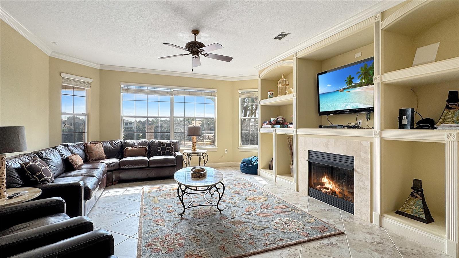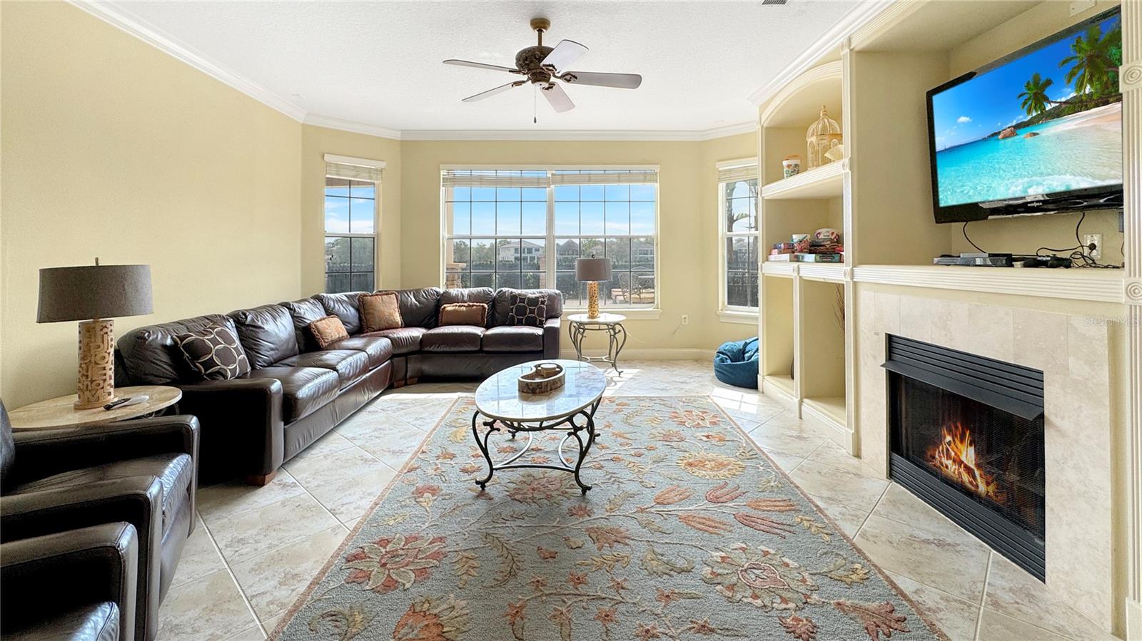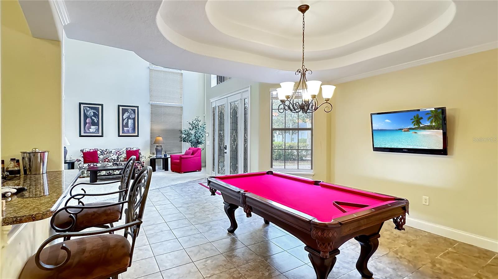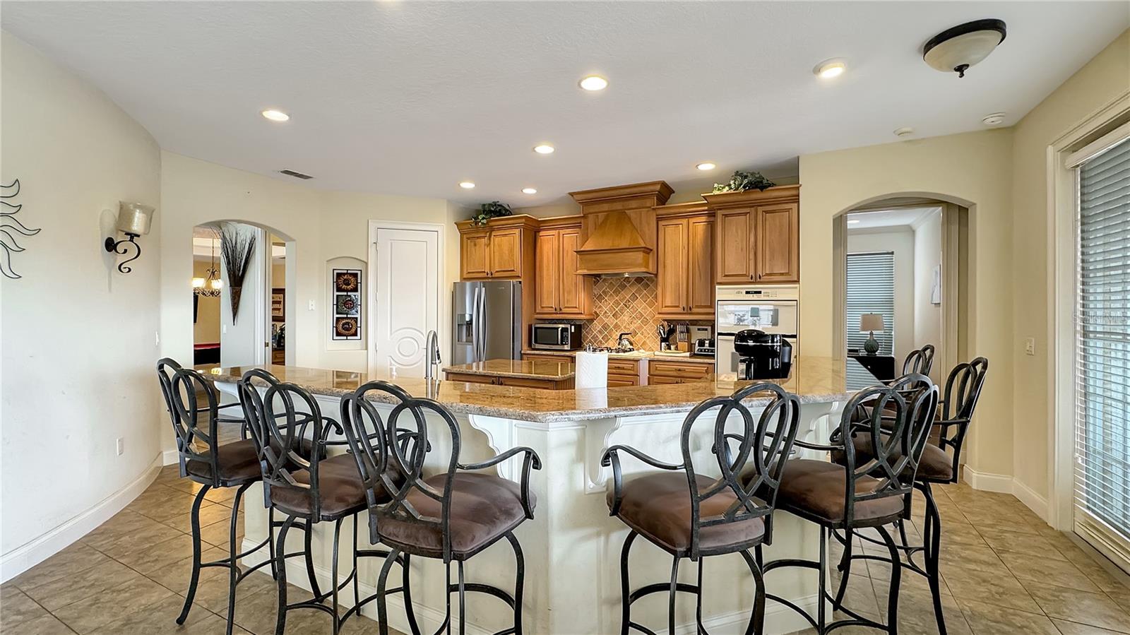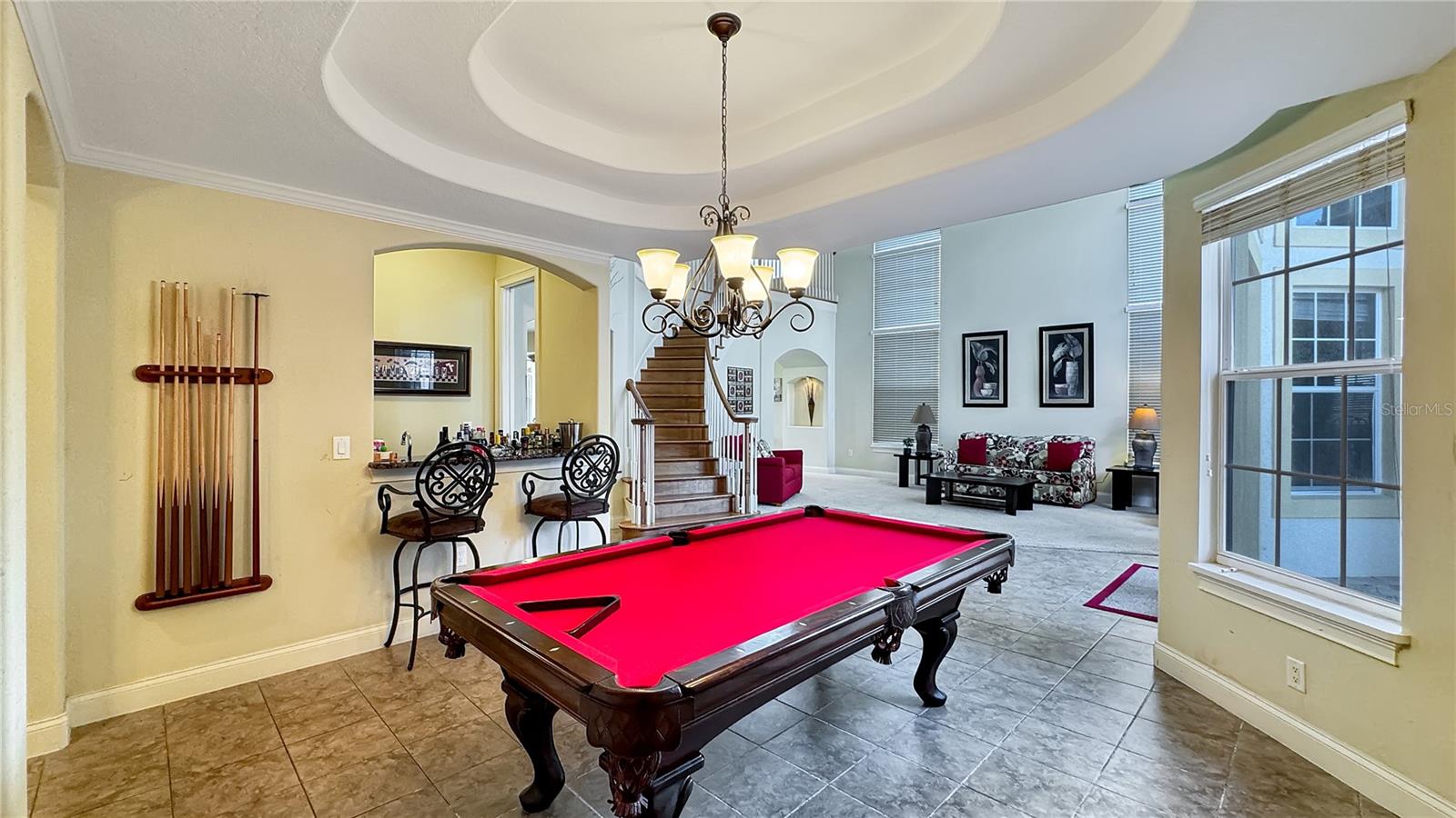 VARANDA RECÉM-RECONSTRUÍDA - ASSOCIAÇÃO ATIVA DE GOLFE - Esta casa tradicional de dois andares, construída sob medida, é um retiro de sonho para famílias e uma excelente oportunidade de investimento, perfeitamente posicionada em um terreno enorme voltado para o leste, com vistas deslumbrantes do campo de golfe exclusivo Tom Watson e nascer do sol deslumbrante. A partir do momento em que você entra, você será cativado pela sala de estar aberta e iluminada, com tetos altos de catedral, luz natural abundante fluindo através de três níveis de janelas e a impressionante escadaria principal. Projetada para diversão e relaxamento, a casa possui uma vibrante área de jogos completa com mesa de sinuca vermelha, HDTV e bar molhado, preparando o cenário para noites inesquecíveis em família ou entretendo convidados. A espaçosa cozinha possui armários em estilo carvalho, fogão a gás de quatro bocas, fornos duplos embutidos e uma grande ilha com assentos de bar - ideal para hospedagem e conveniência do dia a dia. A acolhedora sala familiar, com lareira convidativa e janelas luminosas, oferece vistas pitorescas sobre o campo de golfe e a área da piscina. Saia para um verdadeiro oásis na Flórida. O pátio coberto, adornado com pavimentação de tijolos e tetos de tábuas de madeira, apresenta uma cozinha de verão projetada sob medida com churrasqueira embutida, lareira externa e telas suspensas. O espaço ao ar livre é completo com um luxuoso spa elevado com cascata, várias áreas de estar e uma espaçosa zona de descanso que permite que você aproveite totalmente o estilo de vida ensolarado da Flórida. Nunca antes usada como aluguel, esta casa oferece imenso potencial como um novo aluguel por temporada de alto valor ou como uma escapadela familiar particular. Os cinco quartos de tamanho generoso e quatro banheiros acomodam confortavelmente grandes grupos. A suíte master no andar principal possui banheiro privativo com banheira de hidromassagem, enquanto no andar de cima, uma sala bônus, quartos adicionais e uma varanda ampla oferecem amplo espaço e vistas deslumbrantes. Atualizações recentes, incluindo um novo telhado em 2018, aparelhos de ar condicionado atualizados e um novo aquecedor de piscina, garantem que a casa esteja pronta para morar. Oferecida totalmente mobiliada, esta propriedade apresenta uma oportunidade de investimento excepcional com sua combinação perfeita de luxo, localização e disponibilidade pronta para uso.