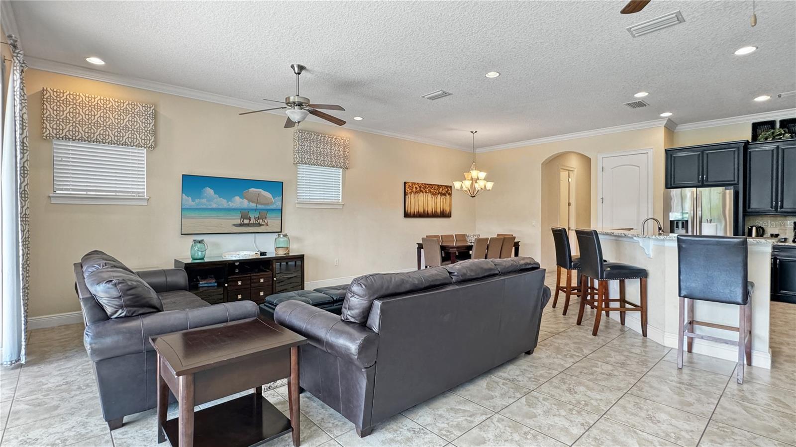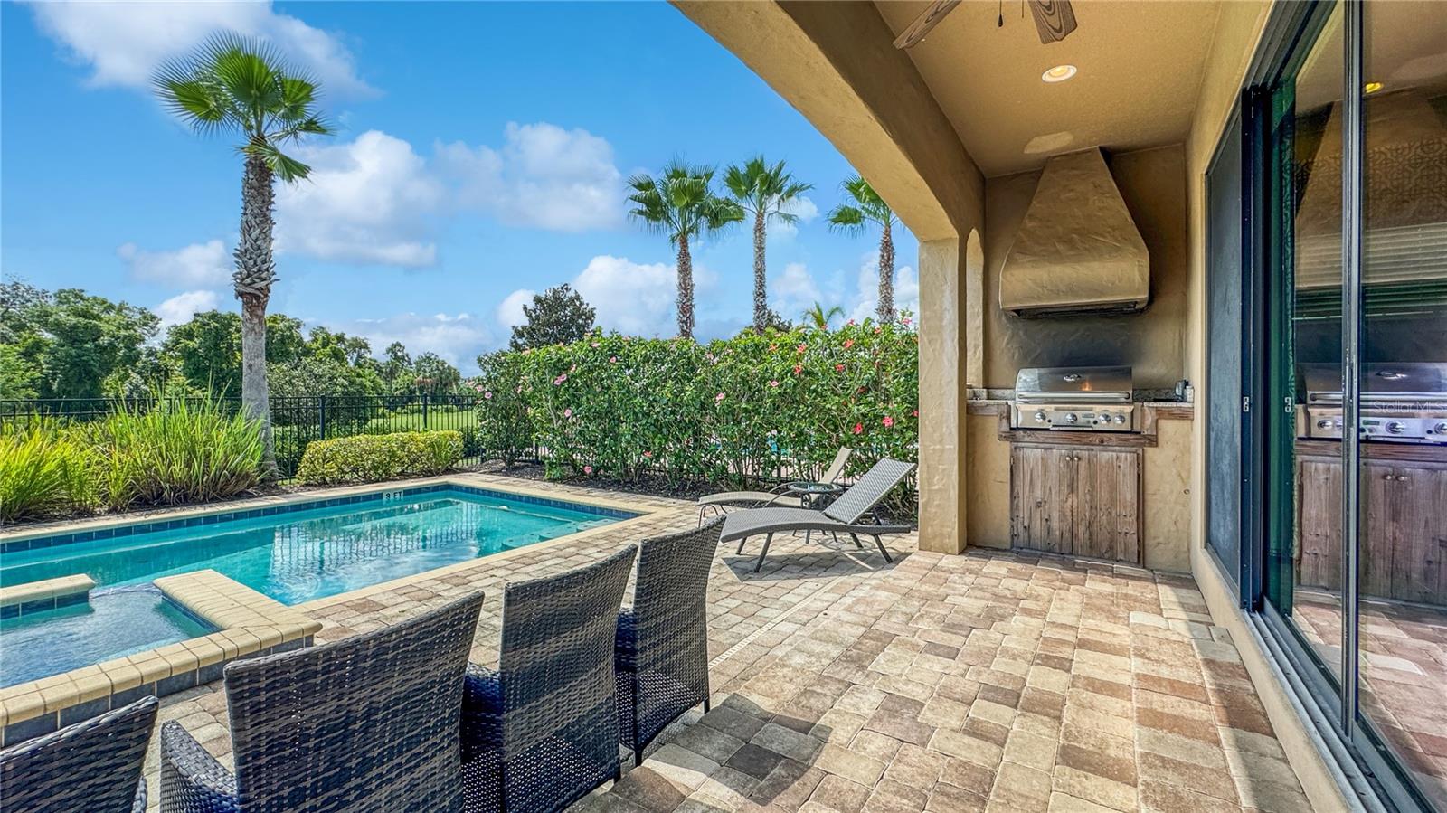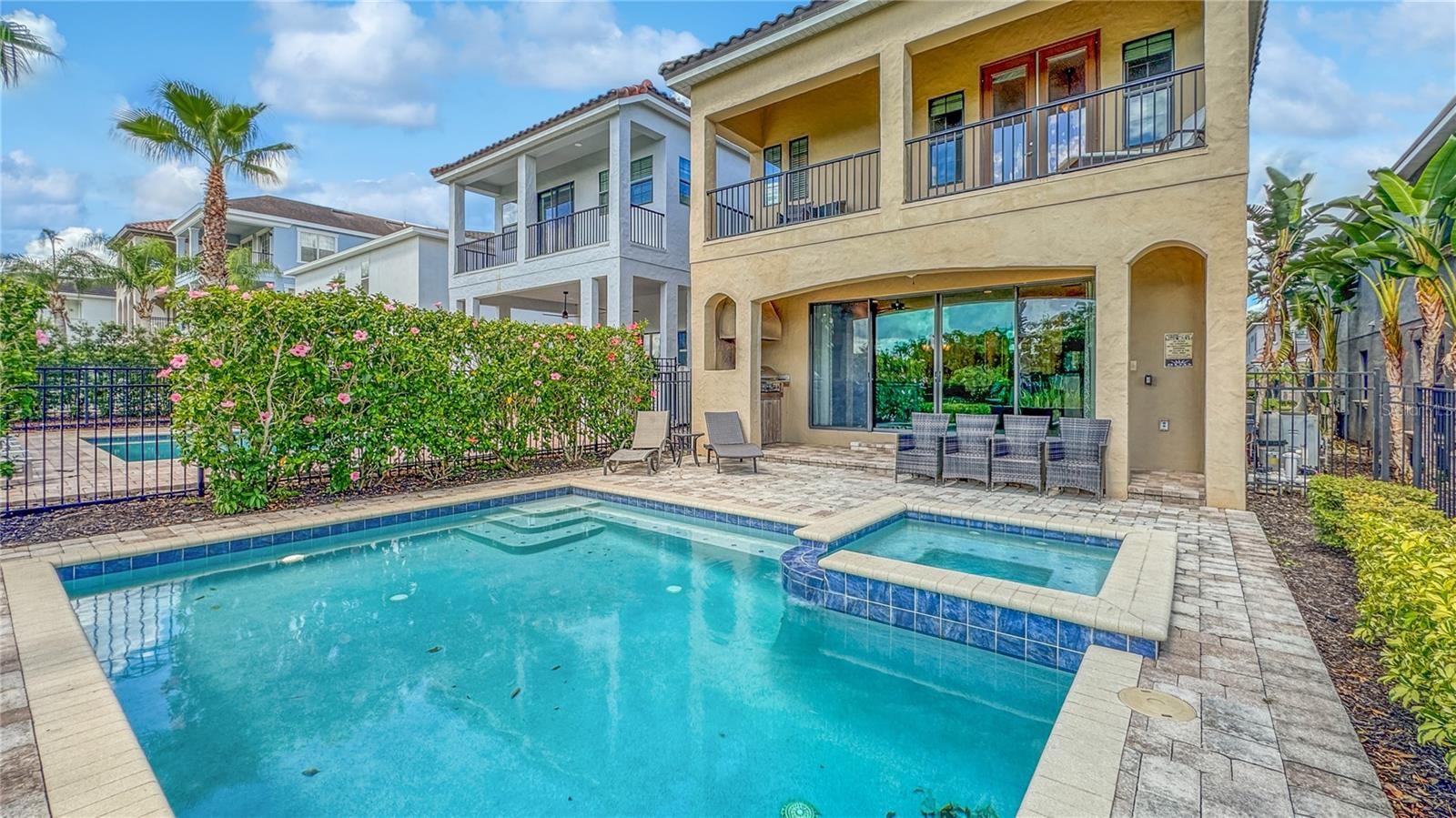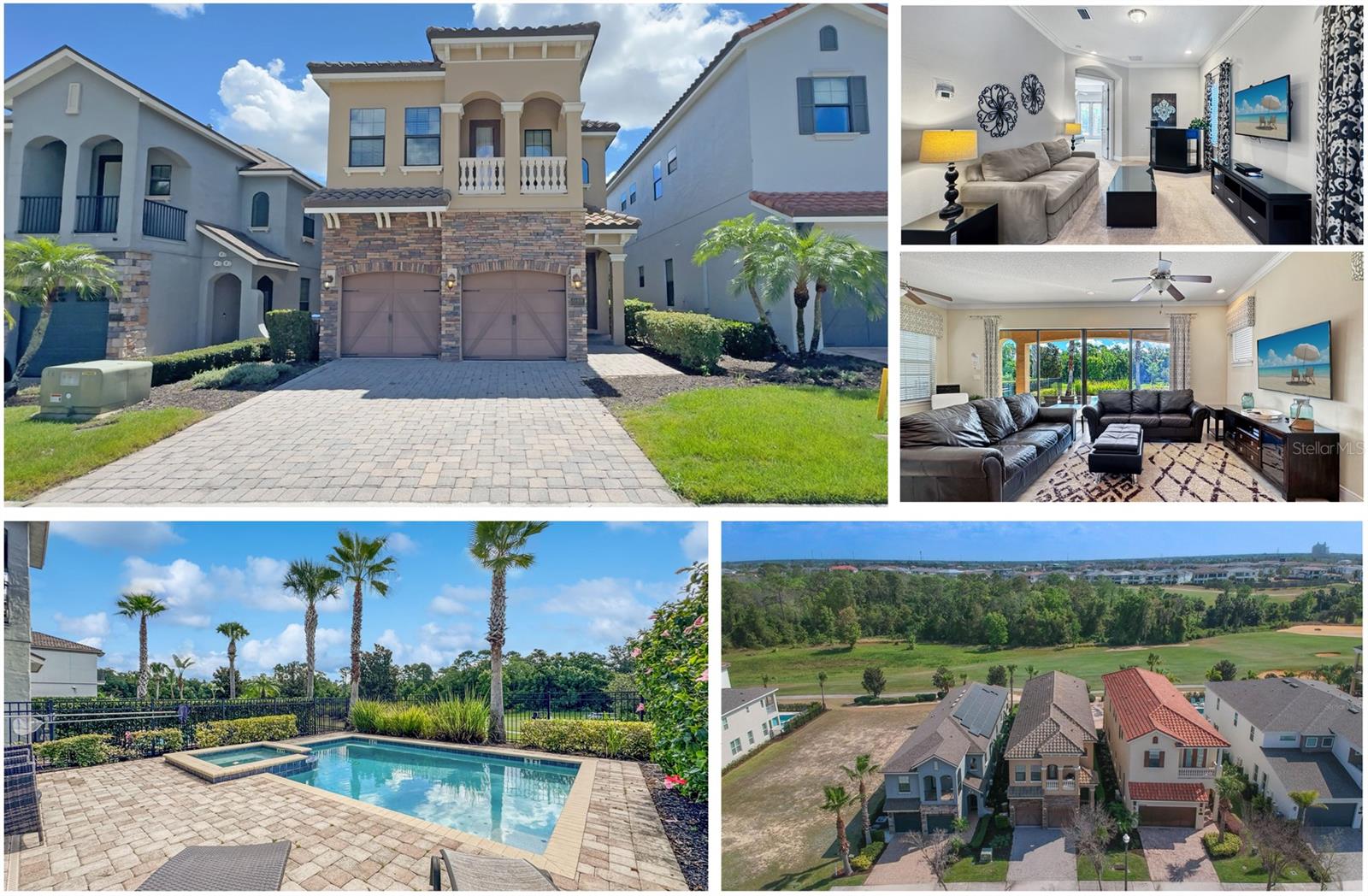 **Oportunidade de investimento: casa de luxo totalmente mobiliada com adesão ativa** Explore esta requintada casa de inspiração mediterrânea de 2 andares, cuidadosamente projetada com telhas de estilo espanhol de alta qualidade e vistas pitorescas da varanda frontal e traseira do campo de golfe Jack Nicklaus Signature. Rodeada por uma paisagem exuberante e palmeiras majestosas, esta propriedade oferece uma verdadeira experiência de vida em estilo resort. A área externa é um refúgio de relaxamento e entretenimento, com piscina refrescante, spa aquecido com pavimentação de tijolos atualizados, pátio coberto e churrasqueira embutida. O interior de conceito aberto apresenta um layout convidativo com uma espaçosa sala de estar, áreas de estar e jantar separadas e uma cozinha moderna equipada com forno duplo embutido, fogão a gás natural de 5 bocas e uma grande ilha central com bancada. O nível principal inclui um grande quarto principal com pias duplas e box amplo, lavabo e lavanderia exclusiva. A garagem, atualmente configurada como uma sala de jogos casual com air hockey e pebolim, pode facilmente ser convertida novamente em garagem para 2 carros. No andar de cima, uma sala de bônus dedicada com área de estar aconchegante, HDTV e mesa de bar o aguarda. Este nível possui quatro quartos, cada um com banheiro privativo. Duas suítes têm varandas próprias com áreas de estar, perfeitas para desfrutar do nascer ou do pôr do sol de tirar o fôlego. A casa vem com uma adesão transferível ao Reunion Resort, um condomínio fechado a poucos minutos do Walt Disney World, das principais atrações de Orlando, das praias de classe mundial e do Aeroporto Internacional de Orlando. O resort oferece 12 piscinas comunitárias, 3 campos de golfe exclusivos (Palmer, Watson, Nicklaus), um parque aquático multimilionário, vários restaurantes no local, 2 lojas profissionais de golfe, seis quadras de tênis de saibro hidro-grid, um spa de serviço completo e um campo de minigolfe. Esta é uma oportunidade excepcional para investir numa casa de luxo totalmente mobilada, com comodidades incomparáveis e uma localização privilegiada.