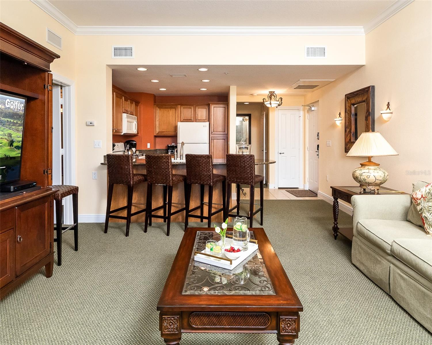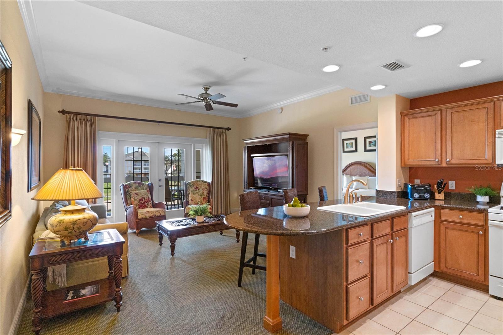 Vistas PANORÂMICAS do campo de golfe a partir das varandas privadas do ÚLTIMO ANDAR na Sala de Estar e no Quarto Principal. Zoneado para ALUGUEL DE CURTA PRAZO OU RESIDÊNCIA PERMANENTE na área Heritage Crossing dentro do COMUNIDADE FECHADA do Reunion Resort. Com uma planta aberta e dividida, esta unidade TOTALMENTE MOBILIADA CHAVE NA MÃO é luminosa, com tetos altos e muita luz natural. A COZINHA possui BANCADA DE GRANITO e BAR DE CAFÉ DA MANHÃ com 6 lugares. O QUARTO MASTER possui banheiro privativo com bancada de granito, banheira de jardim e box de chuveiro. Os dois quartos adicionais possuem 2 camas de casal em cada quarto e um banheiro compartilhado de tamanho grande. Você tem sua própria LAVADORA E SECADORA empilháveis, bem como dois armários com chave. NOVO HVAC – agosto de 2024. NOVO TELHADO – 2024. Aproveite seu café da manhã e o pôr do sol incrível ou faça uma curta viagem de carro e explore parques temáticos, restaurantes, lojas e tudo o que a Flórida Central tem a oferecer. O Reunion Resort oferece transporte gratuito para o Walt Disney World, 3 CAMPOS DE GOLFE projetados por Jack Nicklaus, Arnold Palmer e Tom Watson, uma academia, 3 playgrounds, quadras de tênis e pickleball, minigolfe, bocha, foot golf, carrinho de golfe e aluguel de bicicletas, várias piscinas comunitárias, incluindo o parque aquático de 5 acres com rio lento e toboágua e muito mais! A taxa HOA inclui CABO e INTERNET, paisagismo, manutenção externa, controle de pragas, academia e PISCINAS comunitárias. Localização incrível - convenientemente localizado perto de parques temáticos e atrações, Margaritaville Resort/Sunset Walk e muitos restaurantes, lojas e entretenimento.