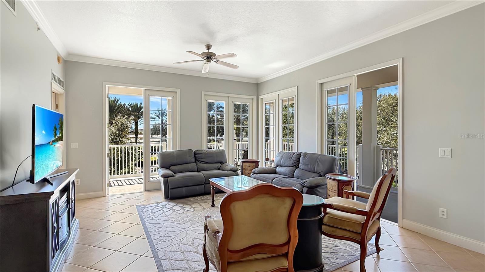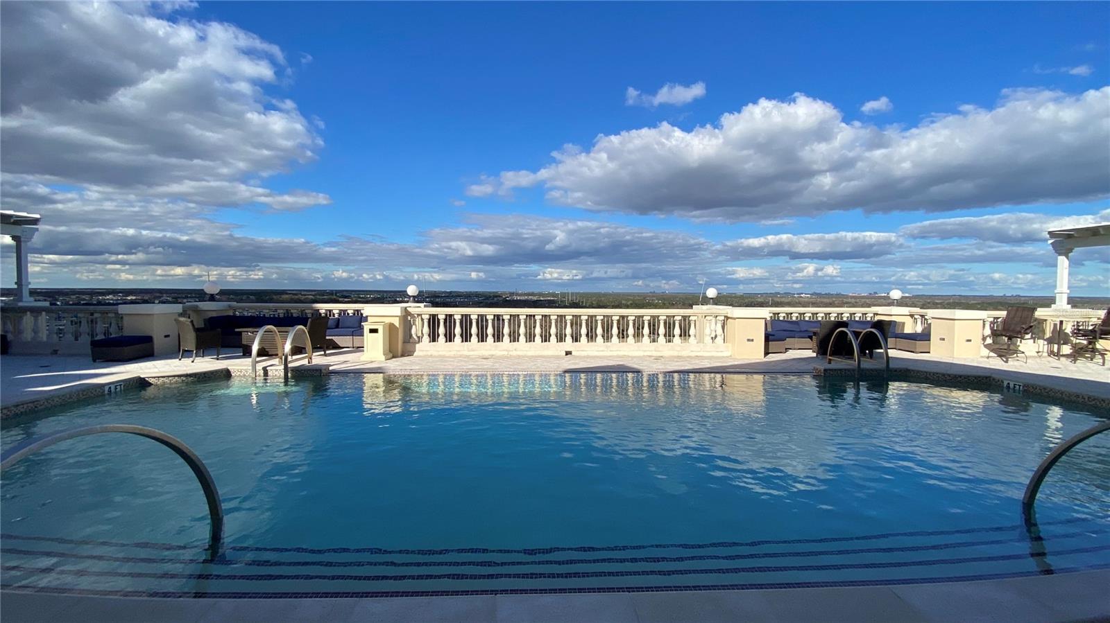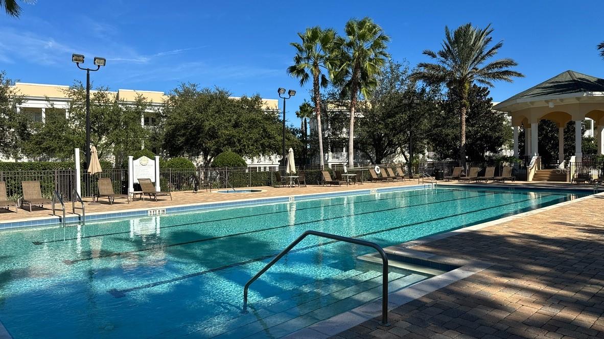 ABERTO PARA VER HOJE, O CONDOMÍNIO DE MELHOR PREÇO COM UMA RARA GARAGEM GRANDE E PÔR DO SOL PITORESCO E INESQUECÍVEL - Localizada nos terraços do Reunion Resort, esta unidade de canto na cobertura oferece total paz e privacidade, sem vizinhos acima e acesso conveniente por elevador. Desfrute de uma das maiores varandas voltadas para o sul da comunidade, com vistas pitorescas da piscina em estilo olímpico, das árvores maduras em estilo carvalho e da fonte tranquila. No interior, a sala de estar é repleta de luz natural, proveniente de janelas do chão ao teto e portas francesas duplas que se abrem para a varanda, combinando perfeitamente o conforto interno com a vida ao ar livre. A cozinha atualizada possui uma geladeira de aço inoxidável, bancadas em estilo granito escuro, uma pia dupla de aço inoxidável com água filtrada, armários de madeira de alta qualidade e uma copa com janelas salientes para maior luz solar. A suíte principal oferece vistas serenas da área arborizada da piscina e inclui um closet e um armário separado para o proprietário. O banheiro principal possui pias duplas e box amplo. O quarto dois inclui beliche grande e iluminação atualizada com ventilador de teto. O terceiro quarto oferece uma cama queen-size com gavetão e um armário embutido com armazenamento generoso. Esta residência também inclui uma das maiores garagens para um carro disponíveis no edifício, completa com racks de armazenamento suspensos e uma tomada de 50 A adequada para carregamento de veículos elétricos ou equipamentos de oficina. A propriedade nunca foi usada como aluguel por temporada e está sendo oferecida totalmente mobiliada e pronta para morar. O Reunion Resort oferece a flexibilidade de residência em tempo integral, moradia em meio período ou renda opcional de aluguel de curto prazo (amigável para Airbnb/VRBO). O condomínio fechado do Resort possui 12 piscinas, 3 campos de golfe profissionais (Palmer, Watson, Nicklaus), um parque aquático multimilionário, sete restaurantes no local, várias lojas profissionais de golfe, seis quadras de tênis Hydro-Grid Clay e minigolfe - tudo a poucos minutos do Walt Disney World, das atrações de Orlando, das principais praias e do Aeroporto Internacional de Orlando.