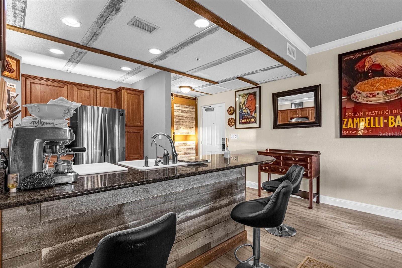 O impressionante condomínio no primeiro andar no Reunion Resort-a apenas 6 km da Disney! Este condomínio lindamente renovado no primeiro andar no resort de reunião procurado é um verdadeiro tesouro. Oferece vistas para campos de golfe e está a poucos passos do pool comunitário. Aninhado em uma localização privilegiada a apenas 10 quilômetros do Walt Disney World, esta casa oferece o cenário perfeito para relaxamento, investimento ou um retiro de férias dos sonhos. No interior, as principais áreas de estar possuem pisos elegantes de madeira, enquanto os quartos apresentam carpete de pelúcia para o melhor conforto. A cozinha é um destaque, projetado com piso de azulejos, um elegante backsplash de telha e bancadas de granito luxuosas. Está totalmente equipado com todos os novos aparelhos, incluindo uma faixa de gás, geladeira, lava-louças, capuz, lavadora/secadora, aquecedor de água e um purificador de água aquasana sob a piscina. Além de seu charme, a parede de sotaque de shiplap e o separador de portas de celeiro criam uma estética quente e moderna. Um novo sistema de manipulador de ar garante ar mais limpo e fácil manutenção. Projetado com um estilo contemporâneo elegante, este condomínio possui armários de retroilumos, iluminação de acabamentos de barra e iluminação suave no quarto dos fundos para um ambiente aconchegante. A parede de TV redesenhada esconde os fios para uma aparência limpa e polida, enquanto novos ventiladores de teto, moldagem por coroa e armários de fechamento suaves elevam o espaço, todos complementados por uma nova camada de tinta. Localizados no exclusivo resort de reunião fechada, os moradores desfrutam de três campos de golfe do campeonato, um parque aquático de classe mundial com um rio preguiçoso, 12 piscinas comunitárias, tênis iluminados e quadras de pickleball, um bar de piscina, mini putt-putt, um centro de fitness , e mais. Esteja você procurando uma residência primária, casa de férias ou uma propriedade de investimento sofisticada, este condomínio é um achado raro em um local imbatível! Pode exigir taxas adicionais de associação para acesso total. Não perca - escapado da sua exibição hoje!