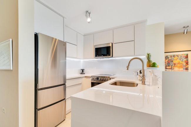 Este condomínio no último andar oferece uma experiência de vida luxuosa e contemporânea, com vistas deslumbrantes para o mar e um pôr do sol incrível. Ao entrar no espaço, você é recebido por um ambiente de elegância moderna e um design interior de bom gosto. O layout aberto da área de estar/jantar é convidativo, com móveis modernos e elegantes e mesa de jantar elegante, perfeita para relaxar ou receber convidados. Grandes janelas permitem a entrada de luz natural, criando um ambiente arejado e luminoso, ao mesmo tempo que oferecem vistas deslumbrantes da cozinha, sala de jantar/estar e principalmente da varanda que se estende por toda a largura do condomínio. Adjacente à área de estar está uma cozinha totalmente renovada que exemplifica funcionalidade e sofisticação. Cada detalhe foi cuidadosamente considerado para proporcionar a melhor experiência culinária e maximizar cada centímetro de espaço. A cozinha possui eletrodomésticos de aço inoxidável de última geração, incluindo geladeira, forno, micro-ondas e lava-louças de última geração, perfeitamente integrados em armários e bancadas elegantes. Ao lado da sala de estar/jantar fica o quarto principal com banheiro próprio, dois armários e vistas cativantes para o mar, com as quais você acordará todas as manhãs! No final do corredor você encontra o banheiro compartilhado e o segundo quarto, ambos os banheiros também foram atualizados. O condomínio dispõe de 2 vagas reservadas dentro do estacionamento fechado, sendo uma delas coberta bem em frente à entrada da piscina. As taxas HOA são de apenas US$ 197 por mês e não há restrições para aluguéis de curto prazo. Compradores qualificados liguem agora para esta grande oportunidade de investimento.