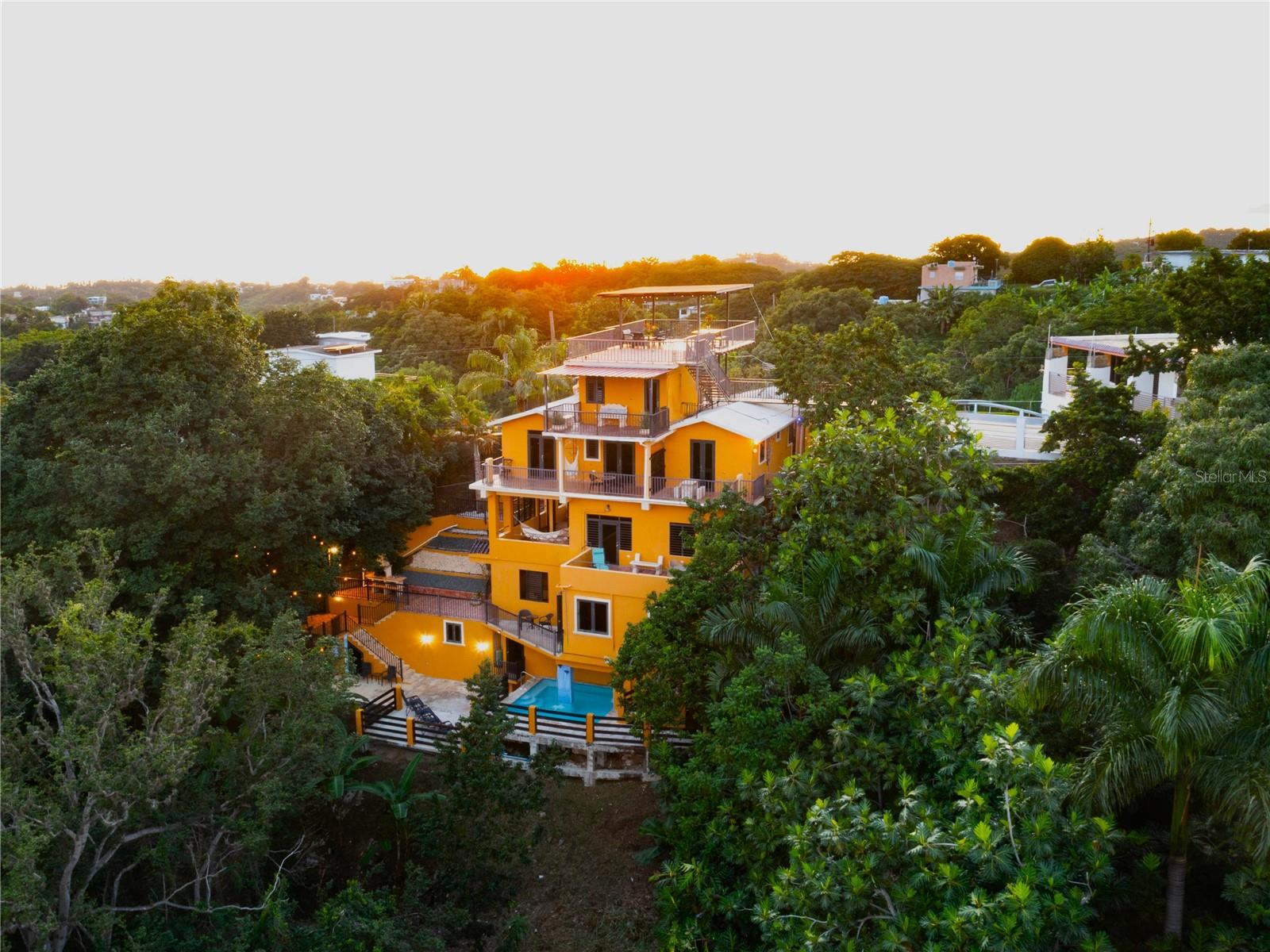 The Terraces at Rincón é uma propriedade distinta de vários níveis na encosta de 8.371 SF projetada para um forte desempenho de renda. Possui cinco suítes privadas em seis níveis e oferece vistas panorâmicas de 360° do Mar do Caribe, do Oceano Atlântico e do Monte Atalaya. Configurada para suportar uso multifamiliar, hospedagem de retiros e operações de aluguel de curto e longo prazo, a propriedade inclui cinco kitchenettes, cinco banheiros completos, dois lavabos, dois chuveiros externos, área de serviço e estacionamento para cinco veículos. As comodidades voltadas para a renda elevam a experiência do hóspede, incluindo um deck de observação na cobertura, uma piscina de hidromassagem em estilo spa com cascatas relaxantes, uma academia de ginástica com ar-condicionado, exuberantes jardins tropicais e diversas áreas ao ar livre para jantar, relaxar e refletir tranquilamente. O design combina cuidadosamente elementos tropicais de inspiração Zen com toques quentes do Mediterrâneo e da Colônia Espanhola. Pisos em estilo terracota, detalhes em azulejos artesanais, texturas de estuque, detalhes em madeira rústica e grades de ferro aparecem por toda parte, enquanto amplas janelas, corredores ao ar livre e numerosos terraços maximizam a luz natural, a brisa do oceano e a vida interna e externa perfeita. A propriedade exala o charme e a serenidade de um retiro boutique na encosta. Vários terraços, decks nas copas das árvores, áreas de estar à sombra e pátios cobertos criam espaços convidativos para fazer uma pausa, relaxar e saborear as vistas panorâmicas exclusivas. Sua localização elevada garante privacidade, tranquilidade e vistas ininterruptas do oceano para a montanha – uma experiência que ressoa com os hóspedes que buscam aventura e rejuvenescimento. Idealmente localizada a poucos minutos das melhores praias de Rincón, incluindo locais de surfe mundialmente famosos no Atlântico e enseadas tranquilas para mergulho com snorkel ao longo do Caribe, a propriedade também oferece acesso rápido a restaurantes, à praça da cidade, a supermercados e à cultura local. A combinação de localização privilegiada, comodidades em estilo resort e configuração versátil de múltiplas suítes posiciona o The Terraces at Rincón não apenas como uma oportunidade de investimento altamente desejável, mas também como um lugar onde os hóspedes podem criar memórias duradouras em um dos mercados costeiros mais cobiçados de Porto Rico.