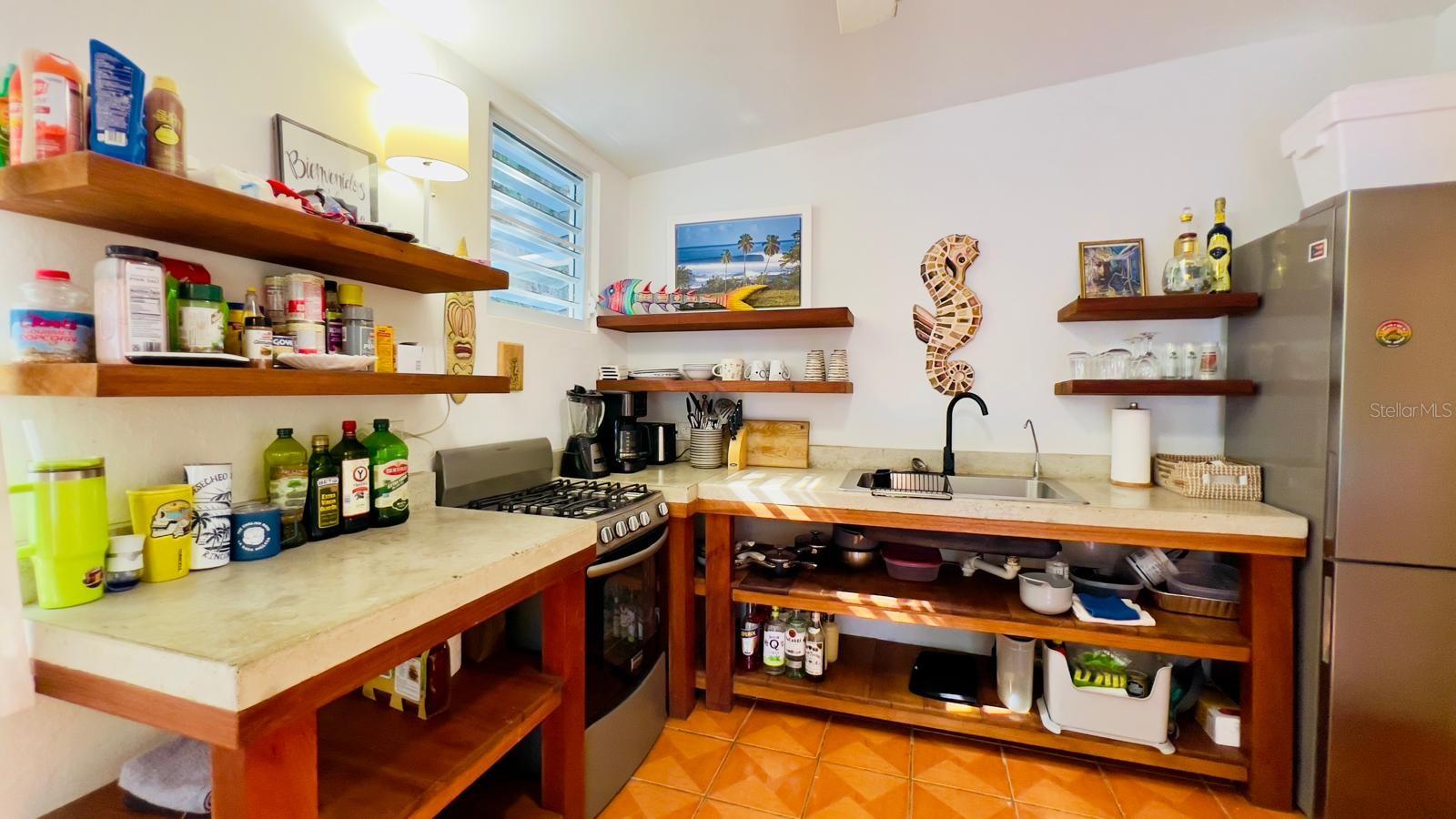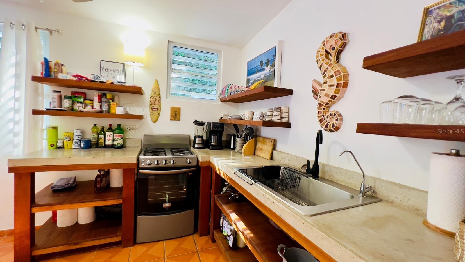 Escondida no final de uma rua tranquila e sem saída, esta encantadora casa de 2 quartos e 1 banheiro fica em um espaçoso terreno de 2.284 metros quadrados cercado por uma paisagem tropical exuberante, árvores frutíferas e palmeiras, oferecendo privacidade e um estilo de vida tranquilo na ilha. Localizado em Bo. Rio Grande, Rincón, fica a poucos minutos de belas praias, restaurantes populares e do vibrante centro da cidade, equilibrando perfeitamente tranquilidade e conveniência. A casa está ligada à rede eléctrica e totalmente cablada com painel pronto para gerador ou integração solar. A segurança hídrica inclui duas cisternas de 525 galões com filtragem, coleta de água da chuva e ligação de água municipal. Um sistema solar na cobertura fornece água quente. Desfrute de uma piscina recém-construída e de um amplo terreno com potencial para adicionar mais casitas ou a casa dos seus sonhos.