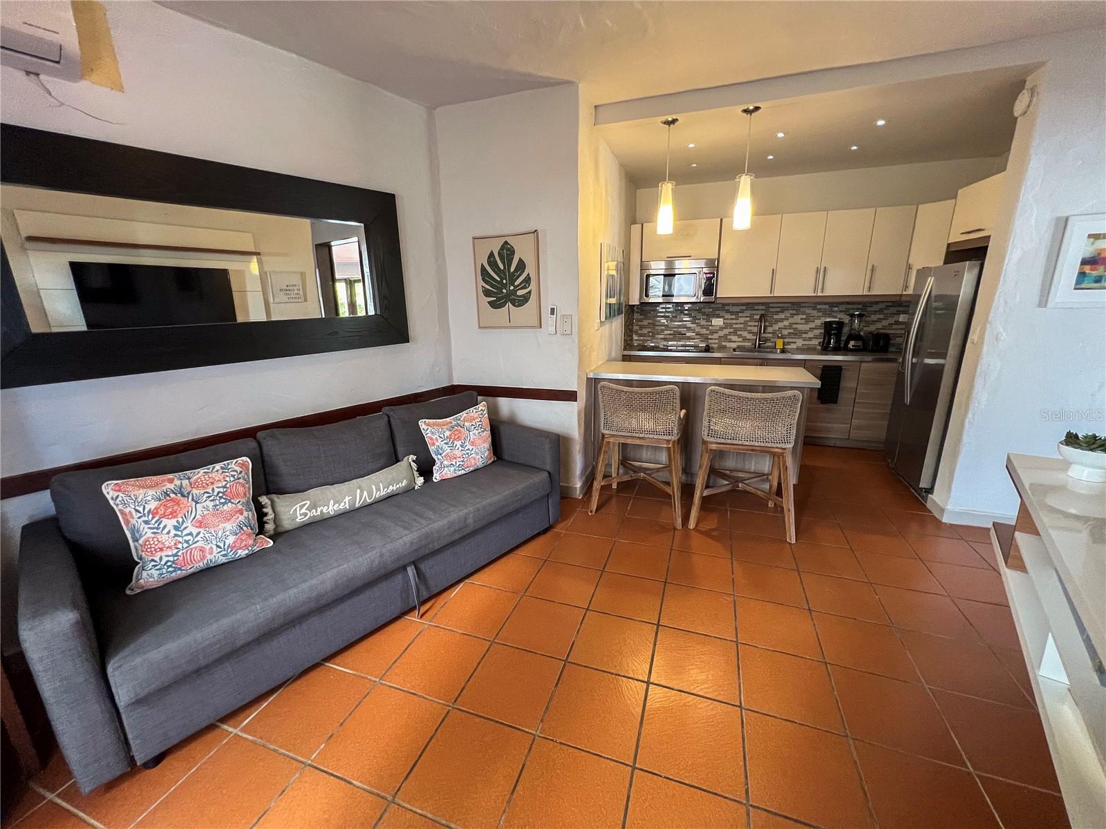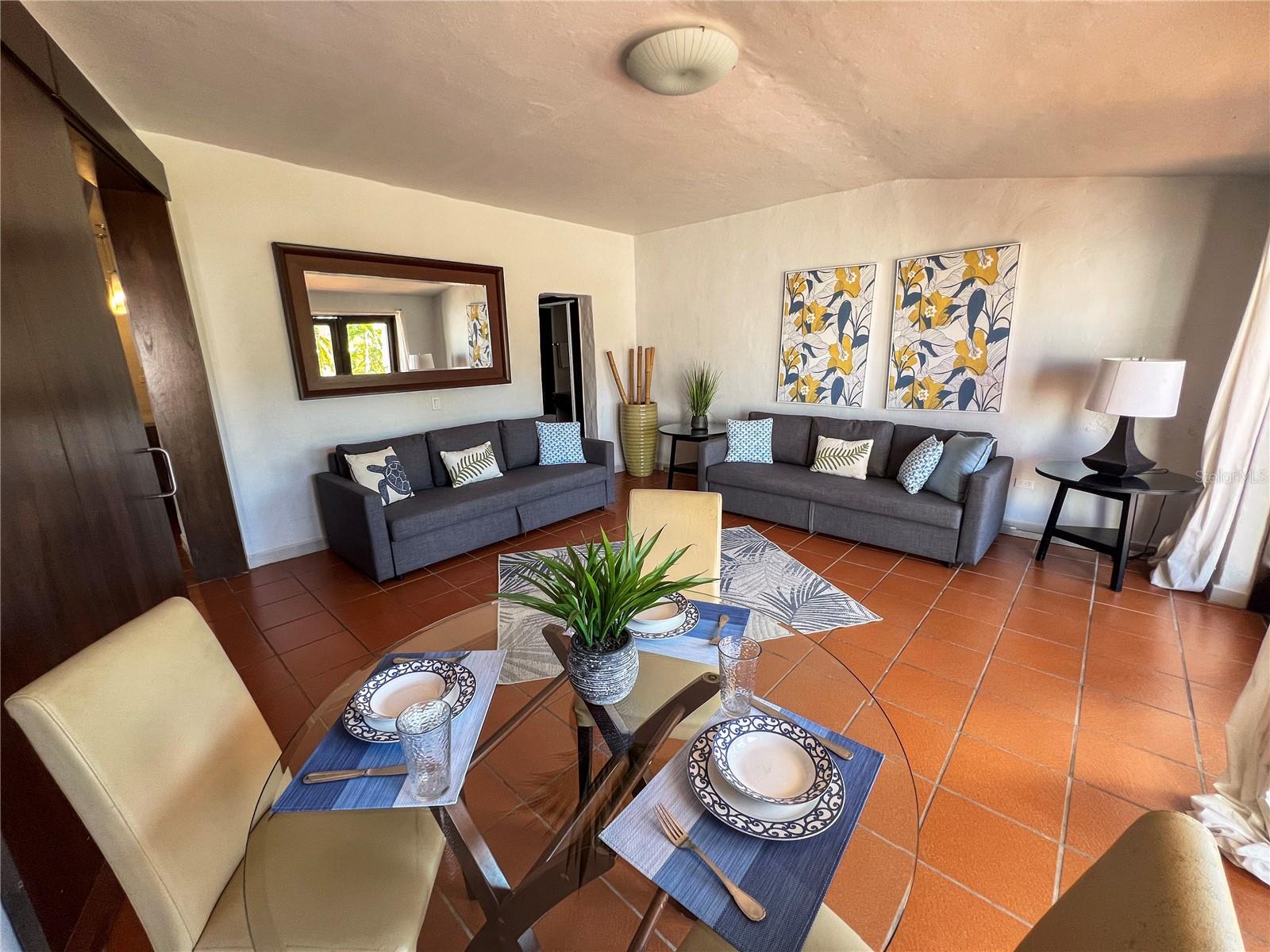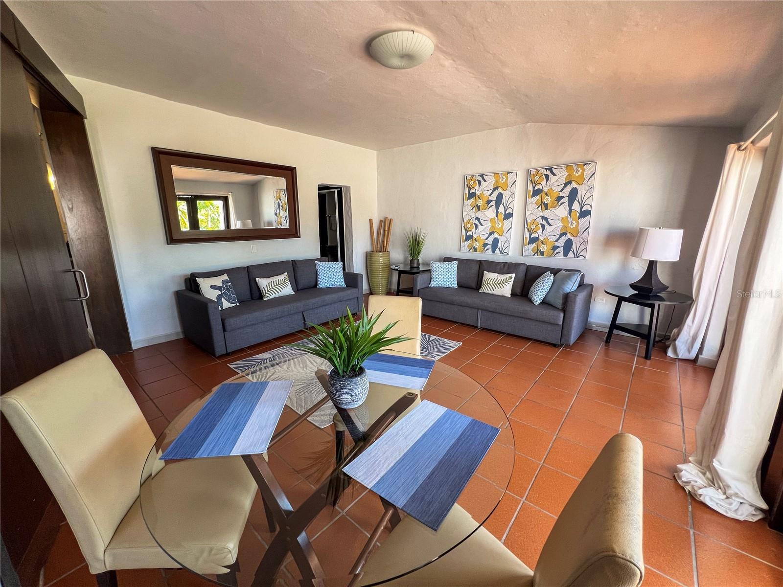 Grande vila de 1 quarto/2 banheiros completos no Cluster 1 e dentro do terreno do Wyndham Grand Rio Mar Beach Resort. A propriedade dispõe de área de estar/jantar, cozinha totalmente remodelada, sala familiar, lavadora/secadora, 1 quarto, 2 banheiros completos e 2 varandas grandes. Com 1.280 pés quadrados, a propriedade pode ser convertida em um layout de 2 quartos/2 banheiros, se desejado. A propriedade está bem conservada e cheia de charme. Existe uma varanda/terraço que abrange toda a largura da sala que abre o imóvel para o exterior. O Cluster 1 é o original condomínio residencial do Rio Mar, cheio de charme e que lembra uma aldeia mediterrânica.