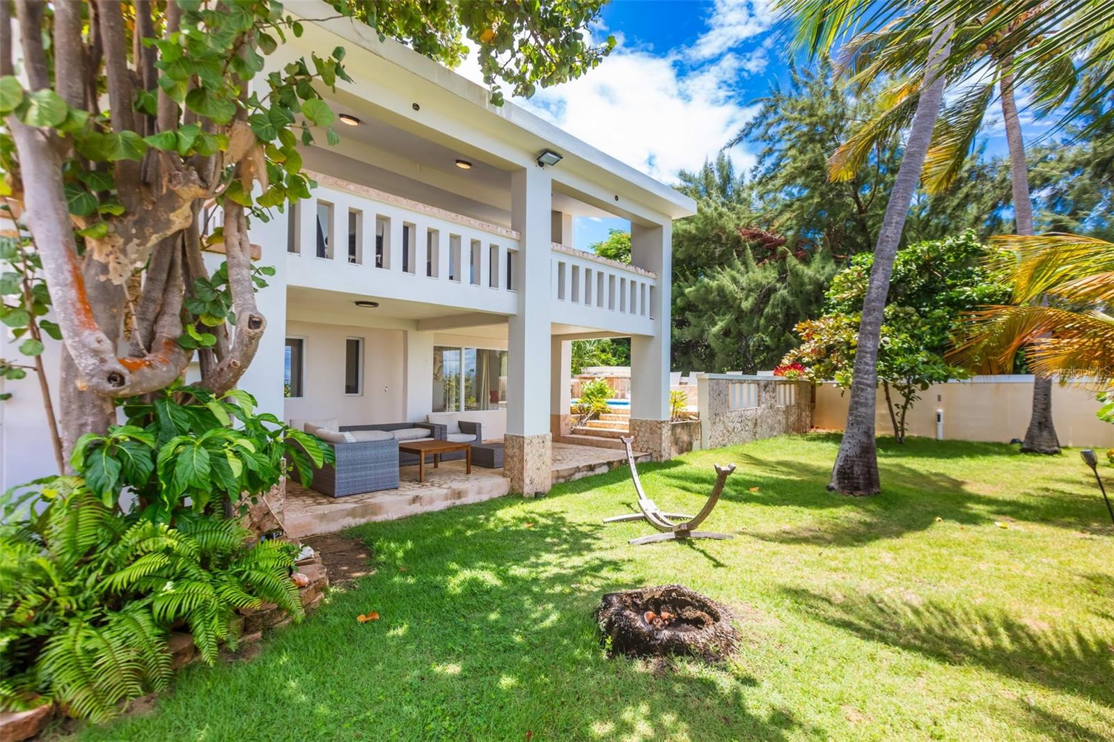 Paraíso encontrado neste santuário à beira-mar, onde a elegância contemporânea se encontra com o charme caribenho. Estes 4.316 m². Pés. villa, inserida num terreno de 1.017 m2. Monte, oferece 8 quartos e 6,5 banheiros, pensado para quem aprecia a essência da vida litorânea. A casa principal: O primeiro andar dispõe de 2 quartos, área de estar e jantar com kitchenette e casa de banho completa. A sala abre diretamente para o pátio e piscina, oferecendo fácil acesso à praia através de uma escada. O segundo andar possui 2 quartos, cada um com varanda privativa, 2 banheiros completos, cozinha totalmente equipada e sala de estar bem iluminada com varanda com vista panorâmica do mar. O terceiro andar oferece um retiro tranquilo com quarto, sala, banheiro completo e um amplo deck na cobertura com escada da varanda à beira-mar que desce até a praia, convidando você a relaxar nas águas azul-turquesa ou a praticar caiaque ou paddleboard. aventura. A propriedade inclui uma casa de hóspedes separada com 3 quartos, 2 banheiros completos e duas entradas privativas - uma servindo o 2 quartos e outra para o 1 quarto. Esta configuração oferece flexibilidade para estadias prolongadas em família ou oportunidades de aluguel, incluindo seu uso atual no Airbnb. A concepção da propriedade oferece a opção de uso privado ou (4) quatro alugueres independentes, apresentando uma excepcional oportunidade de investimento tanto para estadias de curta como de longa duração. Este complexo dispõe de uma cozinha exterior bem equipada, perfeita para entretenimento junto à piscina e jacuzzi. Oferece ainda três terraços cobertos, garagem, gerador de energia de 20 KW e cisterna de água de 500 litros. Localizado na vibrante área de Río Grande, este paraíso costeiro fica a apenas 35-40 minutos do Aeroporto de San Juan. Fica a uma curta distância de carro do renomado Río Mar Wyndham Resort, que oferece um campo de golfe profissional e uma praia deslumbrante. Perto dali, os Kioskos de Luquillo oferecem um gostinho da requintada culinária local, enquanto a Floresta Nacional El Yunque oferece aventuras em meio a exuberantes florestas tropicais. Os entusiastas da navegação apreciarão a proximidade das marinas e as atrações em Luquillo, Fajardo, Carolina e San Juan são facilmente acessíveis.