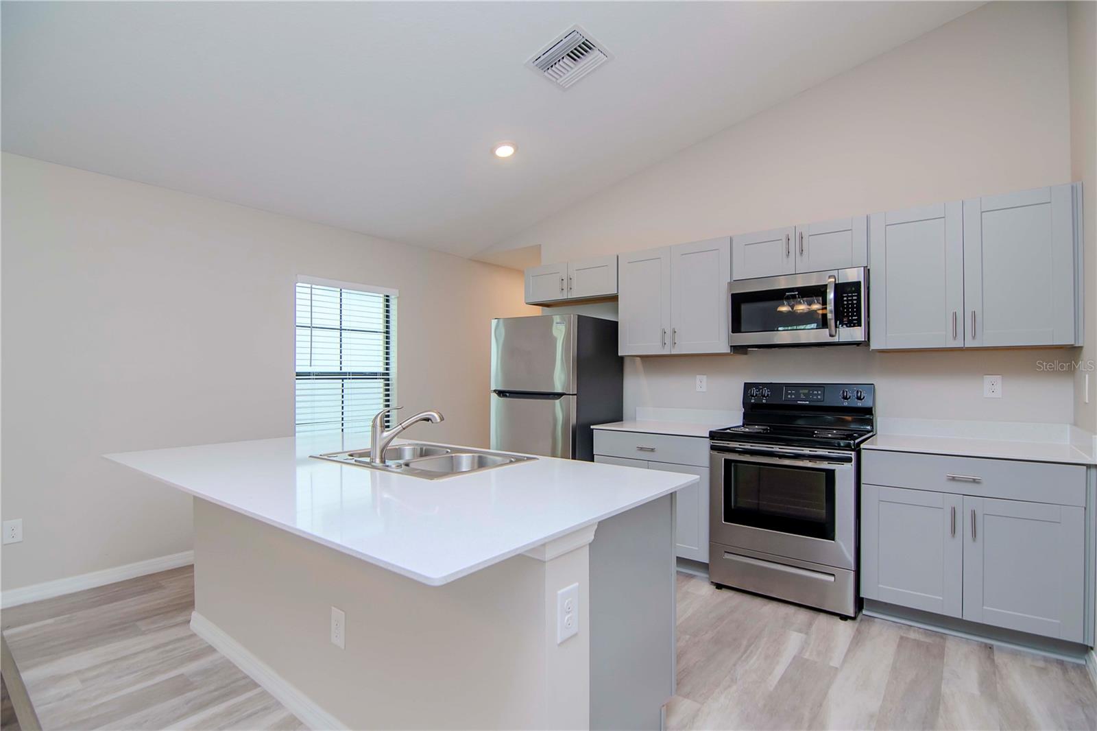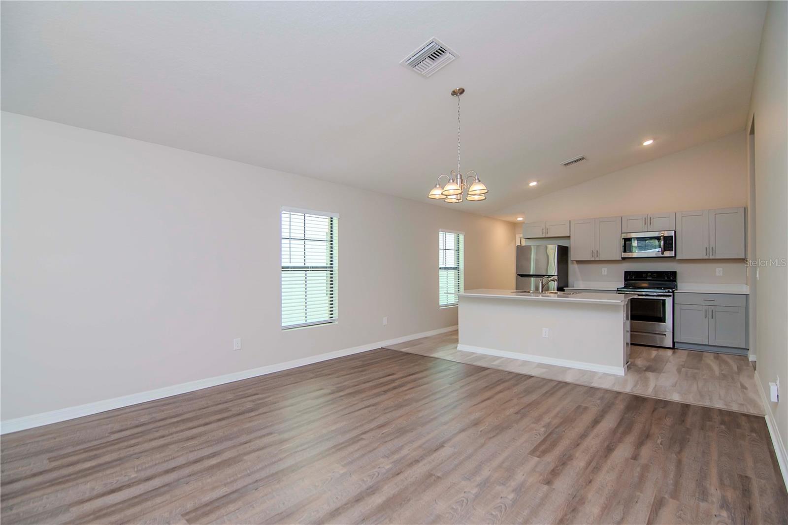 Elegantemente projetado e recém -concluído, esta residência aguarda você e seus entes queridos. Com 3 quartos, 2 banheiros e uma espaçosa garagem de 2 carros, essa morada de nível único maximiza seu layout para uma vida confortável. O coração da casa, uma cozinha contemporânea, possui uma ilha central, armários de Timberlake cinza chiques, aparelhos de aço inoxidável de ponta, utensílios de aço inoxidável, bancadas de quartzo de siléstaca luxuosa e uma generosa despensa de portas duplas, todas fluindo perfeitamente para a convidativa sala de família. Em toda a casa, o piso de vinil de luxo adiciona um elemento de sofisticação. A suíte primária é um refúgio de relaxamento com um grande armário, enquanto o banheiro anexado oferece vaidades duplas e um amplo chuveiro. Dois quartos adicionais compartilham acesso a um banheiro completo bem equipado. Uma área de lavanderia conveniente está posicionada perto da entrada da cozinha e da garagem. Preparado para qualquer clima, os painéis de furacão para as janelas de dupla panela são armazenados na garagem. A vida ao ar livre é uma brisa com um pátio traseiro perfeito para churrascos. Situado dentro do bairro está a Warren Hope Dawson Elementary School e a Goddard School for-School & Daycare, o que aprimora o apelo familiar. Localizados na comunidade Triple Creek, os moradores desfrutam de fácil acesso a compras, restaurantes e interestadual, juntamente com comodidades impressionantes, como duas piscinas, uma almofada de respingos, centros de fitness duplos, clubes, um parque de cães, basquete e quadras de tênis, um playground e trilhas para caminhada. Esta casa está apenas esperando você se mudar!