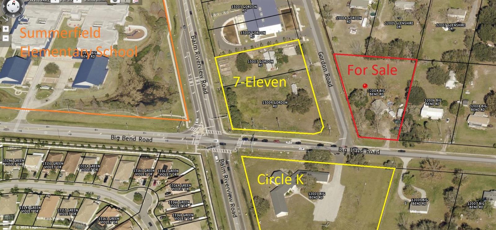 Atenção investidores! Esta propriedade de esquina de 1,07 acres na Big Bend Road implora para ser rezoneada! 7-Eleven construído recentemente ao lado! Circle K comprou o lote do outro lado da rua! O proprietário está pronto para vender e reduziu o preço. Não perca esta oportunidade de comprar este incrível lote de esquina localizado entre os bairros Triple Creek e Summerfield. A estrutura atual é uma casa de 3 quartos e 2 banheiros.