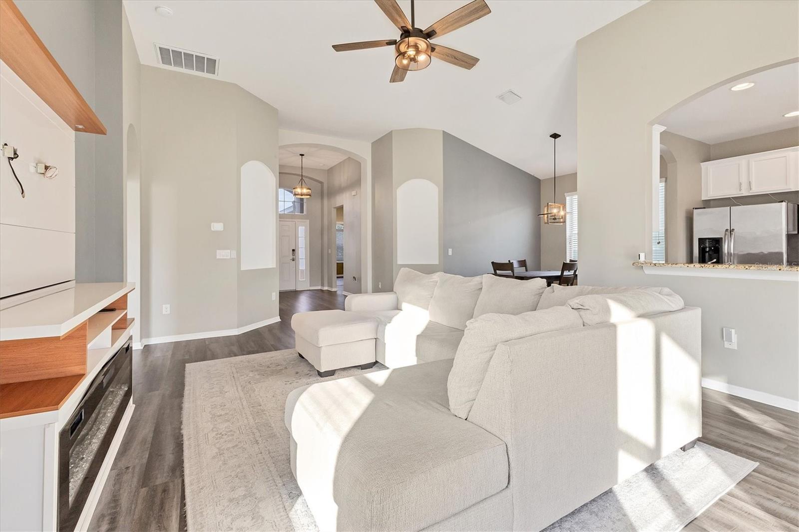 Bem -vindo a esta casa lindamente mantida, aninhada no altamente desejável bairro de Avelar Creek North de Riverview. Esta espaçosa propriedade de 3 quartos e 2 banheiros oferece 1.727 pés quadrados de espaço confortável. Você é recebido por um piso plano aberto e arejado, com tetos altos e luz natural abundante. Móveis incluídos! Dividir o piso plano com piso de vinil de luxo mais recente por toda parte. A espaçosa sala de estar flui sem esforço para a área de jantar e cozinha, tornando o entretenimento uma brisa. A cozinha possui aparelhos modernos, amplo espaço de contador e uma cozinha cozida perfeita para refeições casuais ou café da manhã. A suíte do proprietário fornece um retiro tranquilo com seu closet e banheiro privativo privado, completo com uma vaidade dupla, banheira de imersão e chuveiro separado. Dois quartos adicionais oferecem muito espaço para a família, os hóspedes ou um escritório em casa. O pátio coberto de tela oferece sombra e um local perfeito para apreciar o sol durante todo o ano. O espaço adicional ao ar livre possui uma banheira de hidromassagem de três pessoas e muito espaço para jardinagem e entretenimento. A Comunidade Avelar Creek tem um HOA baixo que oferece uma grande piscina comunitária, clube e playground. O bairro fica perto das escolas, compras, restaurantes, novo Hospital Advent Health e i75 para uma viagem fácil para Tampa e arredores.