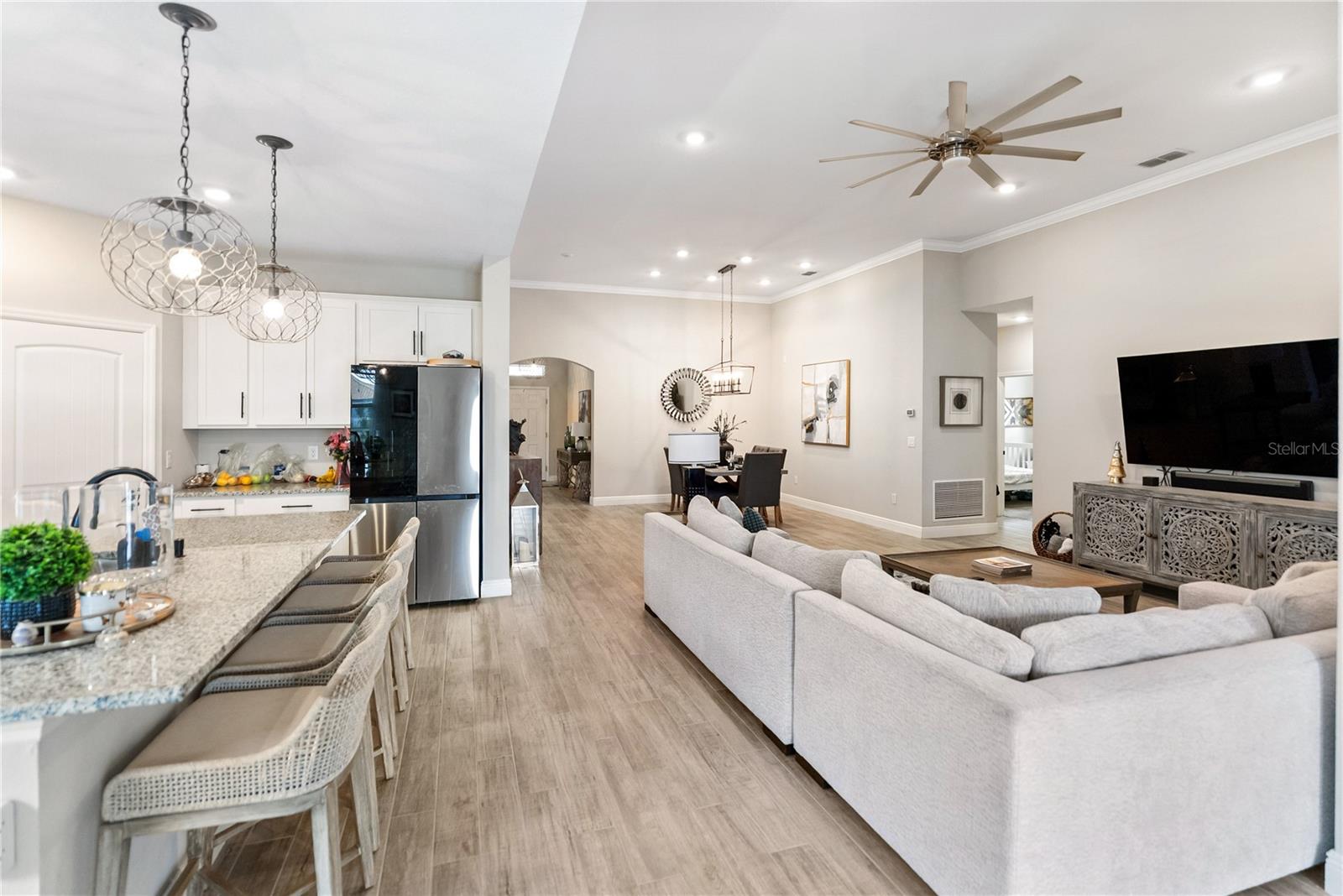 Descubra Waterleaf - Luxo que vive em uma comunidade fechada Premier Situado em um dos bairros mais desejáveis da região, esta impressionante residência de 4 quartos e 3 banheiros combina a elegância atemporal com a conveniência moderna, todas com vista para uma vista tranquila da água. Desde o momento em que você chega, o teto de azulejo, a garagem da pavimentadora e a varanda da frente e o paisagismo exuberante e amigável à Flórida deram o tom para o que aguarda dentro. O hall de entrada abre para um convidativo espaço formal de vida e jantar, fluindo perfeitamente para uma grande sala cheia de luz que conecta a sala da família, a área de jantar casual e a cozinha de um chef. A cozinha é um showstopper com extensos balcões de granito, uma grande ilha central, utensílios de aço inoxidável e armários abundantes, tornando -o ideal para vida diária e entretenimento, também foi estendido a cozinha, tornando -a uma bela escolha extra de luxo. Duas áreas de jantar oferecem flexibilidade, enquanto um escritório privado/sala flexível se adapta às suas necessidades. A suíte primária é um retiro pacífico, completo com um banho no estilo de spa, com uma banheira de imersão, chuveiro separado e pias duplas. A garagem de três carros oferece amplo armazenamento. Os residentes da folha de água desfrutam de comodidades inspiradas no resort, incluindo uma piscina espumante, lounge de fogueiras, pavilhões de piqueniques, playground, meia quadra de basquete, estações de fitness e quilômetros de trilhas para caminhada, além de um parque de cães dedicado. Esta comunidade inteligente garante que cada casa esteja equipada com tecnologia integrada e internet de fibra óptica de alta velocidade Situado a minutos das compras, jantares, escolas, instalações médicas, parques, campos esportivos e praias intocadas, com acesso rápido à I-75, esse local realmente oferece o melhor da vida da Flórida. Os impostos incluem taxas de CDD.