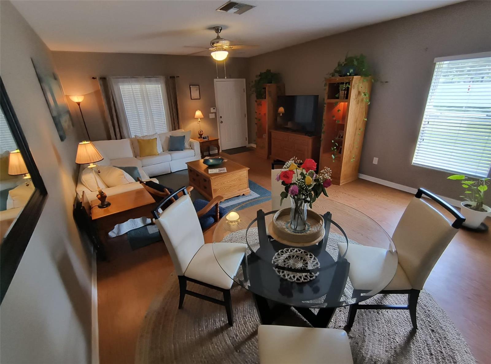 Bem-vindo ao Foxmoor Townhomes em Panther Trace! Este condomínio fechado estabelecido apresenta uma unidade final desejável com dois quartos e dois banheiros e meio. Entre em uma planta aberta e iluminada com piso laminado que leva da área combinada de estar e jantar até a cozinha muito funcional. Dentro da área da cozinha, você encontrará um lavabo contíguo e um armário embaixo da escada. Armários de cozinha e armário despensa com portas duplas também maximizam o armazenamento. Uma escotilha/barra de serviço proporciona fácil acesso da cozinha à sala de jantar. Portas de vidro deslizantes abrem para uma varanda fechada e um pátio pronto para assentos ao ar livre e entretenimento. O alpendre também dá acesso ao armazém seguro da moradia. O segundo andar possui piso laminado no corredor e nos quartos. O quarto principal dispõe de closet e combinação de banheira e chuveiro no banheiro. O condomínio dispõe de piscina e vida livre de manutenção. Logo na saída da US 301, o Foxmoor Townhomes fica a poucos minutos de restaurantes, lojas e entretenimento. A Base Aérea MacDill, o centro de Tampa e tudo o que a Flórida tem a mostrar estão ao seu alcance.
