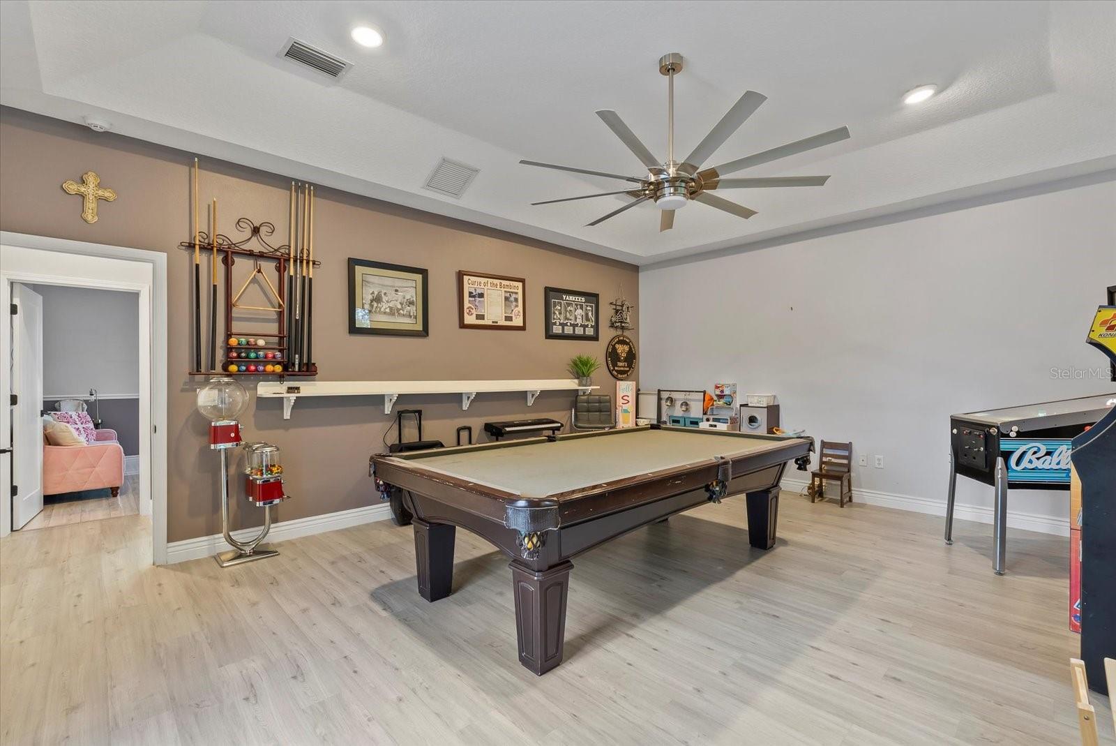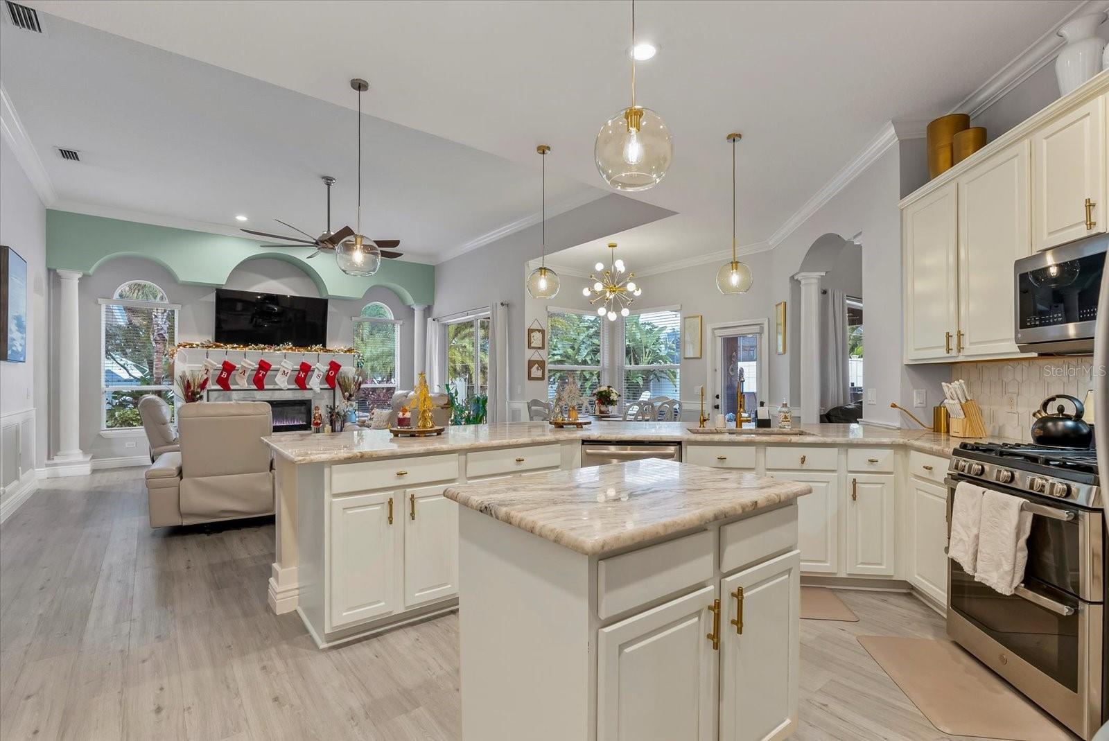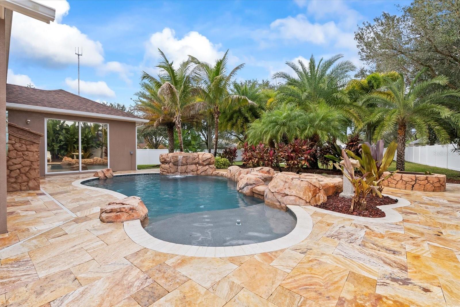 Esta casa de Creekside completamente atualizada oferece conveniência e charme em um condomínio fechado, minutos de lojas, restaurantes, parques e escolas de primeira linha. Esta casa foi elegantemente remodelada com muitos sinos e assobios extras pelo atual construtor/proprietário. Com interiores brilhantes e bem conservados, ele possui um impressionante apelo ao meio-fio e portas duplas de vidro com chumbo de grande tamanho. No interior, um grande hall de entrada divide as áreas formais de estar e jantar, com portas francesas levando a um escritório/covil de fora. Apresentando madeira costeira de tábuas de vinil de luxo em toda a casa contribui para uma sensação moderna de ponta com muita luz. A cozinha foi completamente remodelada há 2 anos, possui armários de madeira maciça, bancadas de pedra de quartzito, backsplash de telha de mármore, amplo armazenamento e utensílios de aço inoxidável, incluindo uma faixa de gás. A cozinha se conecta perfeitamente a uma espaçosa sala de família com luz natural abundante e acesso a um grande quintal cercado privado em mais de meio hectare, completo com uma extensa Lanai em forma de "L". O quarto principal oferece um teto de bandeja, espaço generoso no armário e uma suíte com uma vaidade dupla, chuveiro separado e banheira de jardim. O layout dividido de três vias fornece privacidade para os quartos secundários. An impressive bonus room / game room at the rear floods with natural light and showcases numerous upgrades, including 5" baseboards, upgraded lighting, architectural details, ample closet space, large windows, and high ceilings. The back yard is a tropical Florida oasis with extensive upgrades including heated lagoon pool with built in spa, rock waterfall, expansive patio area, large covered lanai, and outdoor kitchen with two XL Construído em grelha. Felizmente, Half Acre+ Yard é um ótimo espaço para a família e os animais de estimação desfrutarem.