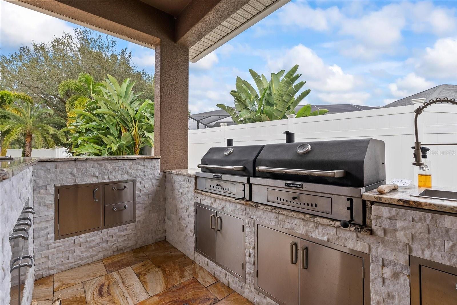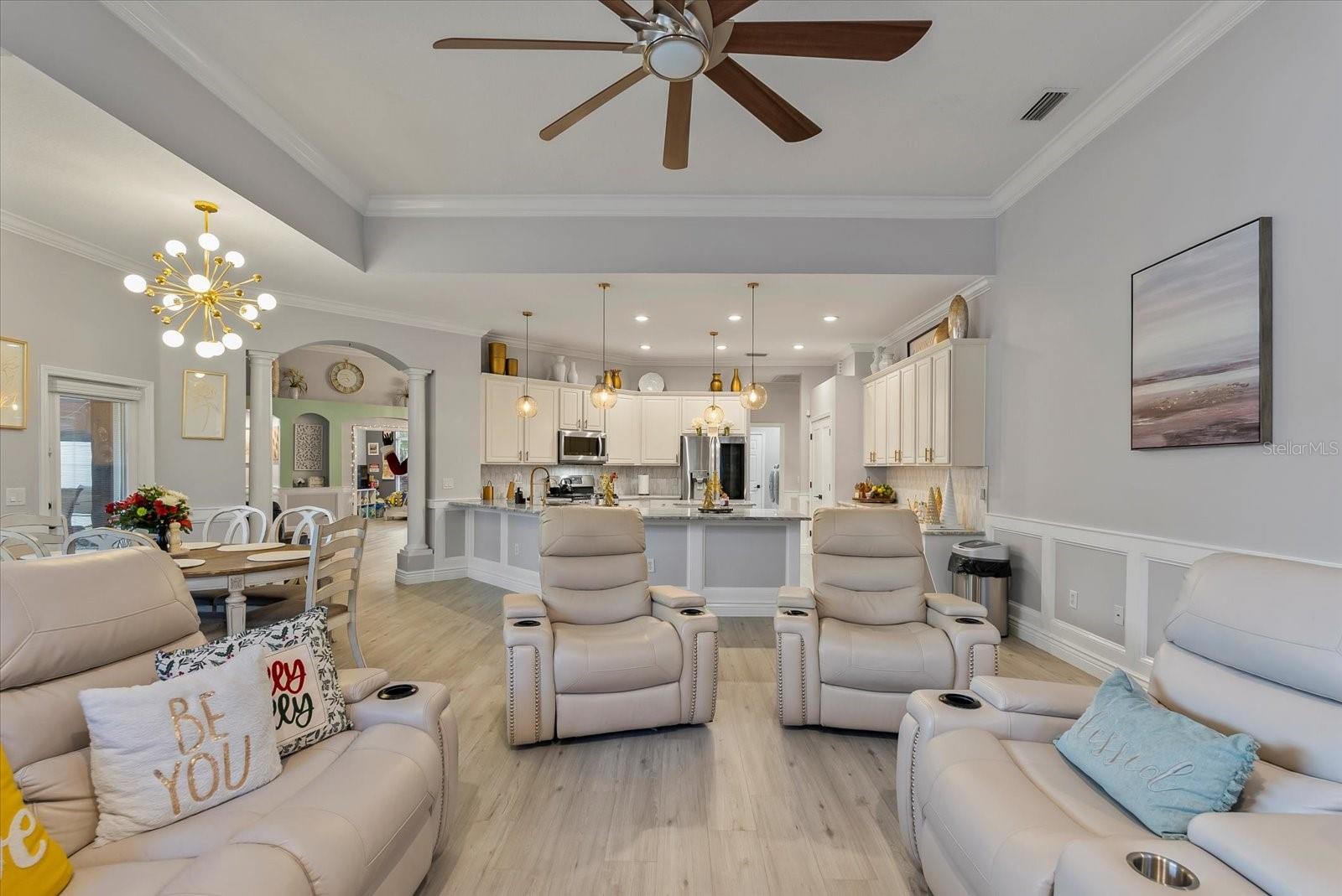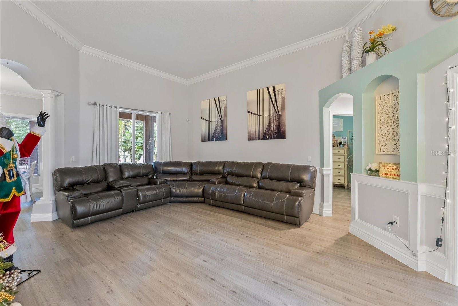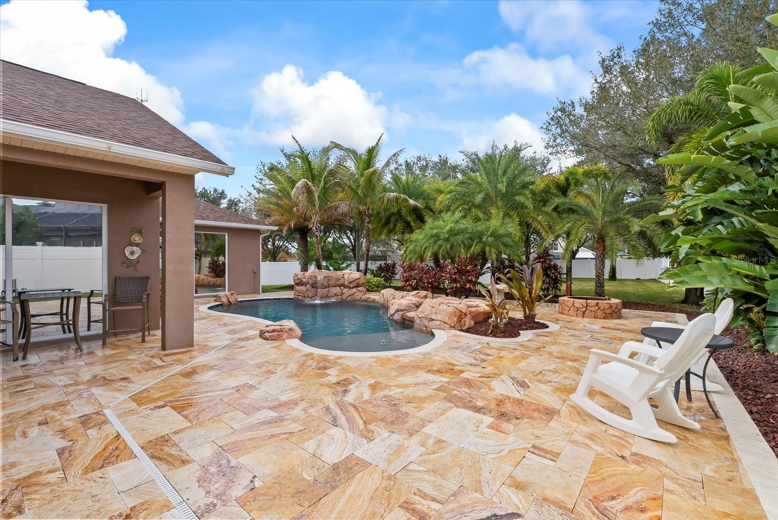Esta casa de Creekside completamente atualizada oferece conveniência e charme em um condomínio fechado, minutos de lojas, restaurantes, parques e escolas de primeira linha. Esta casa foi elegantemente remodelada com muitos sinos e assobios extras pelo atual construtor/proprietário. Com interiores brilhantes e bem conservados, ele possui um impressionante apelo ao meio-fio e portas duplas de vidro com chumbo de grande tamanho. No interior, um grande hall de entrada divide as áreas formais de estar e jantar, com portas francesas levando a um escritório/covil de fora. Apresentando madeira costeira de tábuas de vinil de luxo em toda a casa contribui para uma sensação moderna de ponta com muita luz. A cozinha foi completamente remodelada há 2 anos, possui armários de madeira maciça, bancadas de pedra de quartzito, backsplash de telha de mármore, amplo armazenamento e utensílios de aço inoxidável, incluindo uma faixa de gás. A cozinha se conecta perfeitamente a uma espaçosa sala de família com luz natural abundante e acesso a um grande quintal cercado privado em mais de meio hectare, completo com uma extensa Lanai em forma de "L". O quarto principal oferece um teto de bandeja, espaço generoso no armário e uma suíte com uma vaidade dupla, chuveiro separado e banheira de jardim. O layout dividido de três vias fornece privacidade para os quartos secundários. An impressive bonus room / game room at the rear floods with natural light and showcases numerous upgrades, including 5" baseboards, upgraded lighting, architectural details, ample closet space, large windows, and high ceilings. The back yard is a tropical Florida oasis with extensive upgrades including heated lagoon pool with built in spa, rock waterfall, expansive patio area, large covered lanai, and outdoor kitchen with two XL Construído em grelha. Felizmente, Half Acre+ Yard é um ótimo espaço para a família e os animais de estimação desfrutarem.