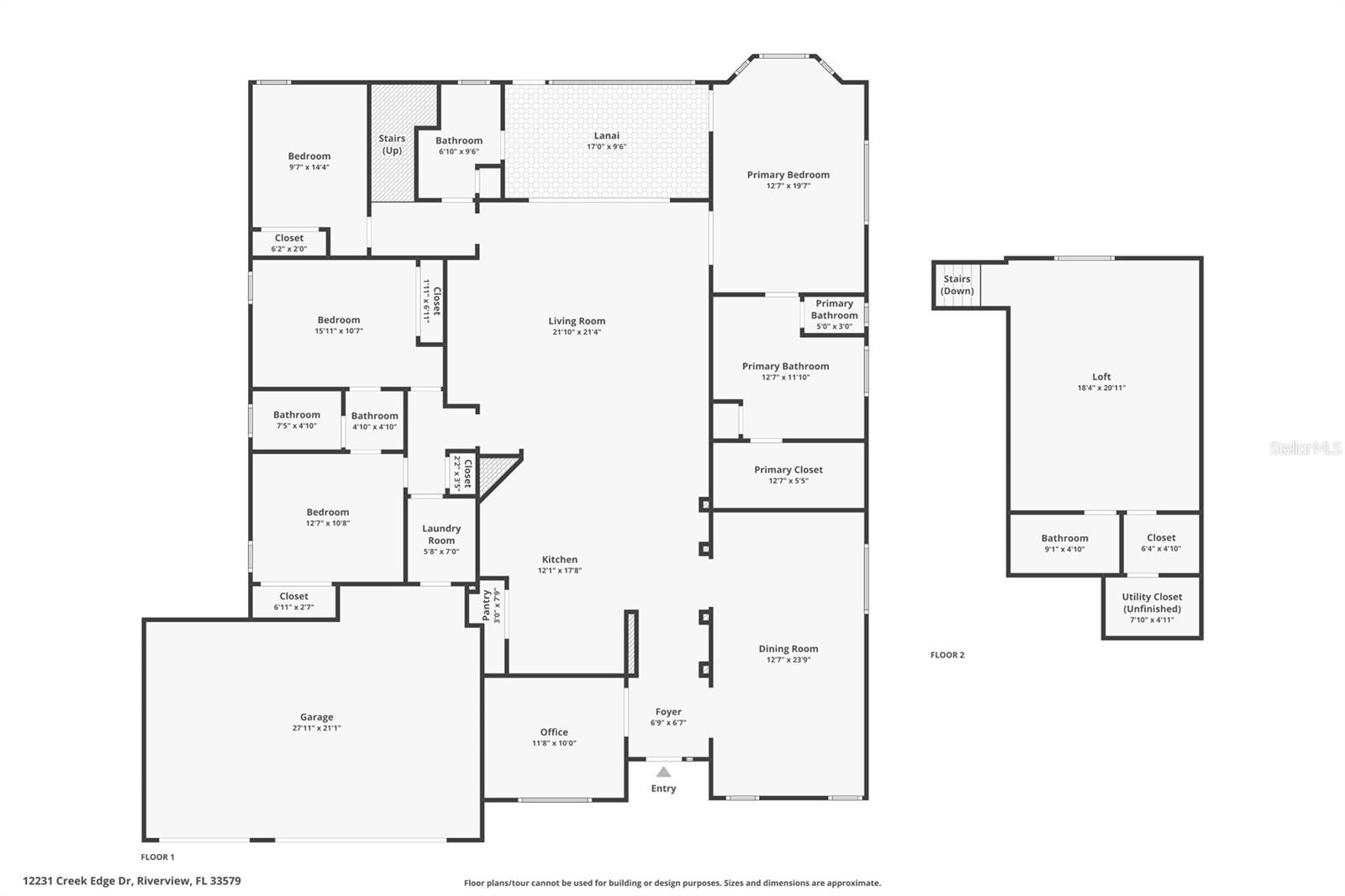 Bem-vindo ao Creekside, um condomínio fechado muito procurado. Esta casa elegante possui pisos de ladrilhos de grãos de madeira, tetos altos, persianas personalizadas do obturador de madeira e o potencial de um quinto quarto ou bairro de lei. O escritório/covil com portas francesas fica à esquerda, enquanto um espaçoso jantar/sala de estar fica à direita. A cozinha do chef possui bancadas em granito, uma barra de café da manhã de 6 cadeiras, backsplash de mármore e utensílios de ajuda de cozinha. A cozinha conceitual aberta leva a uma sala de família com uma porta deslizante de três camadas para o lanai exibido. O quarto principal oferece armários dele e delas, uma banheira de jardim, chuveiro de vidro e pia de peças de granito duplo. Três quartos adicionais, incluindo uma configuração de Jack e Jill, e um loft enorme com um banheiro completo completam os espaços. O Lanai exibido tem três pontos de acesso e está preparado para um futuro pool. As comodidades atualizadas incluem um aquecedor de água sem tanque, sistema de osmose reversa, amaciante de água, sistema de desinfecção por UV HVAC, vácuo central, termostatos de ninho e irrigação automatizada. Recentemente, a entrada de automóveis lavada por pressão, cercada no sistema séptico e no carpete novo no escritório e no quarto. A Creekside Community apresenta um playground, lagoa e trilha natural. Convenientemente localizado perto de lojas, restaurantes, escolas de primeira classificação e fácil acesso aos EUA 301 e Interstate 75. Não perca esta oportunidade incrível! Tipo de armário do quarto: Closet (quarto primário).
