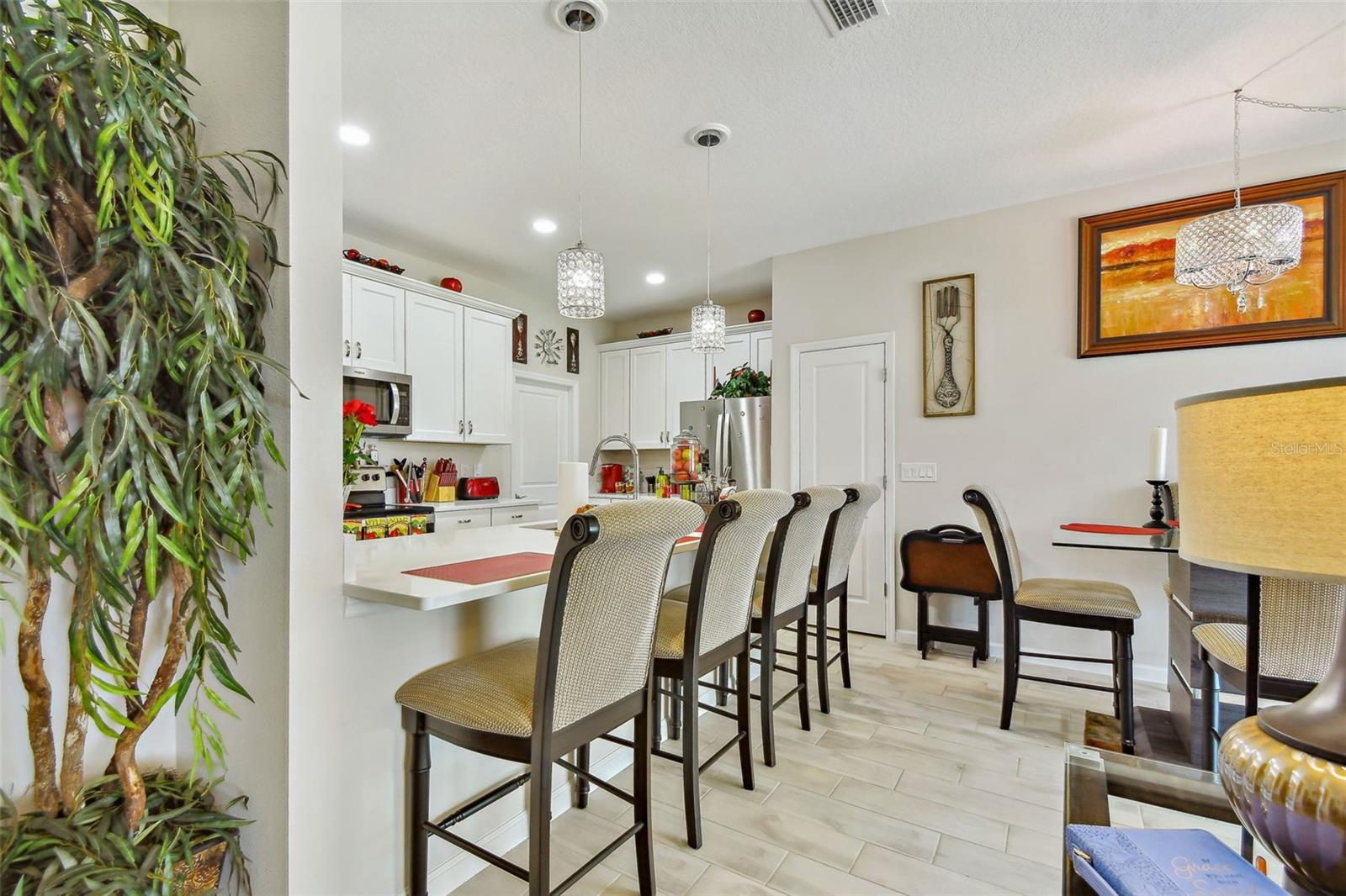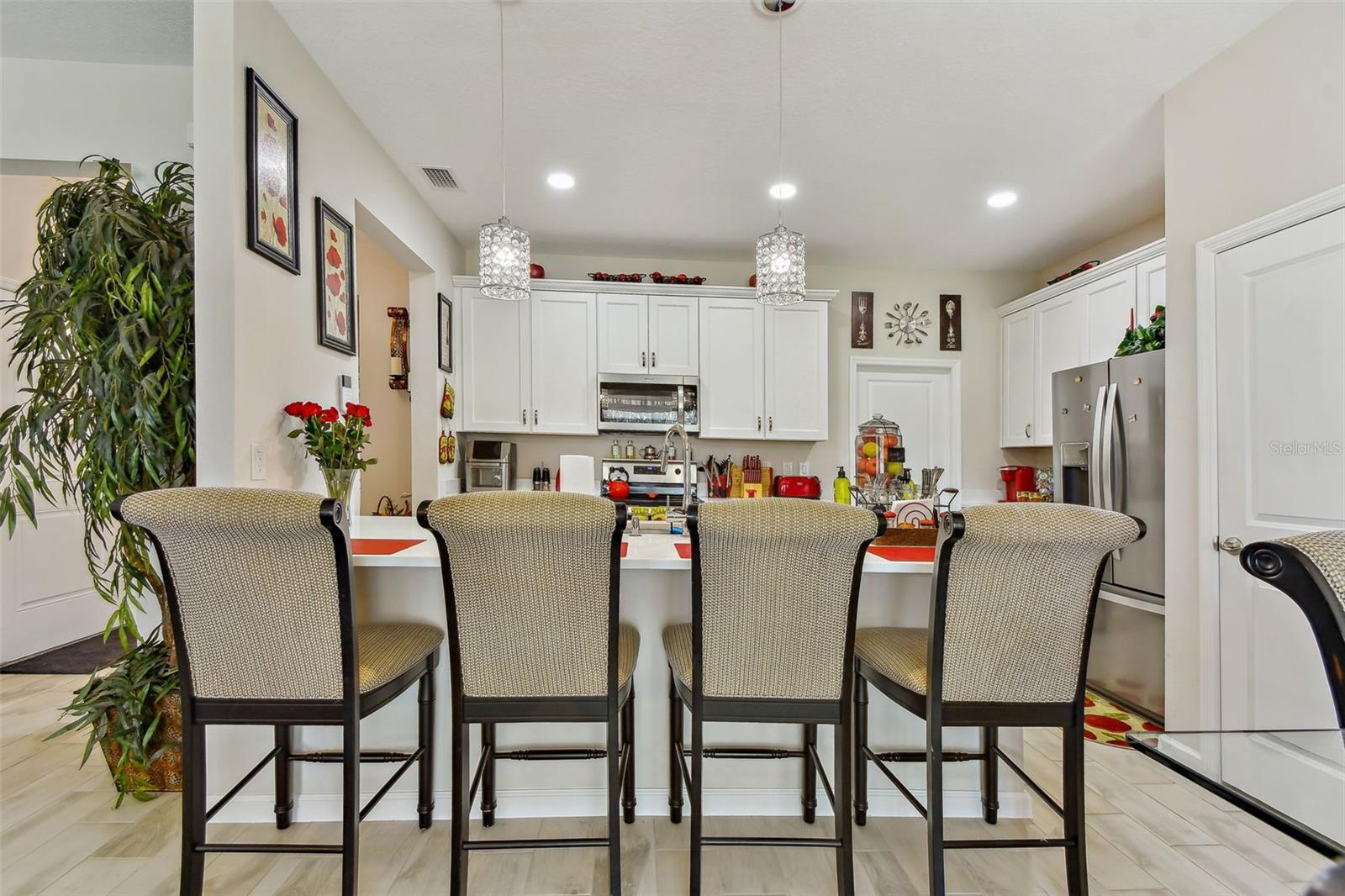 Sem esperar, mova -se pronto !!! Bem-vindo a esta requintada Townhouse de 4 quartos e 3 quartos, idealmente situada em Riverview, FL. Com um piso plano aberto com áreas de vida e jantar distintas, esta residência é meticulosamente projetada para conforto e estilo modernos e perfeito para sediar reuniões memoráveis ou desfrutar de noites de família aconchegantes. A cozinha apresenta bancadas elegantes de quartzo, oferecendo beleza e durabilidade. Equipado com todos os aparelhos que são aparelhos de aço, armários de 42 polegadas e uma despensa, a cozinha é o deleite de um chef. Saia para o pátio de trás e saboreie a vista pitoresca da lagoa e do espaço verde, fornecendo um retiro sereno para relaxar. A conveniência é fundamental com uma lavanderia convenientemente localizada no segundo andar. Os quartos 1 fica no primeiro andar e oferecem versatilidade para ser um escritório ou sala de teatro ou o que você gostaria que fosse. Todos os outros quartos estão no segundo andar. A suíte do grande proprietário tem um closet, suíte, pias duplas e um chuveiro. Os moradores terão acesso à piscina comunitária e ao parque de cães. Localizado perto da I-75 e a poucos minutos das compras, esta casa oferece acesso incomparável a opções de refeições, compras e entretenimento. Experimente o epítome do luxo que vive nesta comunidade distinta. Esta casa inteligente construída em Calusa Creek apresenta um sistema de segurança em casa com câmeras, varanda traseira para entreter familiares e amigos. Agende uma visualização hoje e descubra a elegância e a conveniência atemporais que esta casa tem a oferecer.