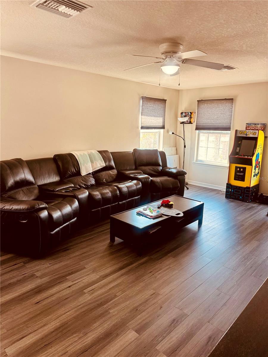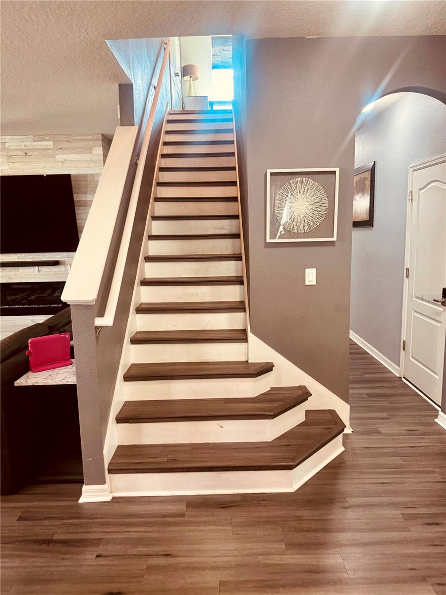 Impressionante casa de 5 quartos e 2 banheiros e meio na muito procurada comunidade do Lago Lucaya. Construída em 2016, os proprietários transformaram-na na casa perfeita. Entrando na casa pela varanda coberta, você será recebido na entrada com a área de estar formal. O corredor à direita leva você ao quarto do andar de baixo, que atualmente está sendo usado como sala de artesanato/escritório, e um lavabo. Ao entrar na linda cozinha, você ficará surpreso com as bancadas de granito estendidas para preparar/entreter. A grande sala abriga uma lareira elétrica e portas de correr que dão acesso à área de estar ao ar livre. Há uma varanda coberta e um grande pátio aberto. A cozinha externa possui churrasqueira e geladeira embutidas com bastante espaço no balcão, além de bar/ilha móvel. No andar de cima você encontrará uma grande sala/loft bônus, 2 quartos secundários, um banheiro completo e a suíte dos proprietários. A suíte dos proprietários possui tetos falsos, entrada de porta dupla, 2 closets, pias duplas, banheira de jardim com chuveiro separado, vaso sanitário e armário de roupa de cama. Por que esperar mais? Venha hoje mesmo conhecer a sua casa de sonho!