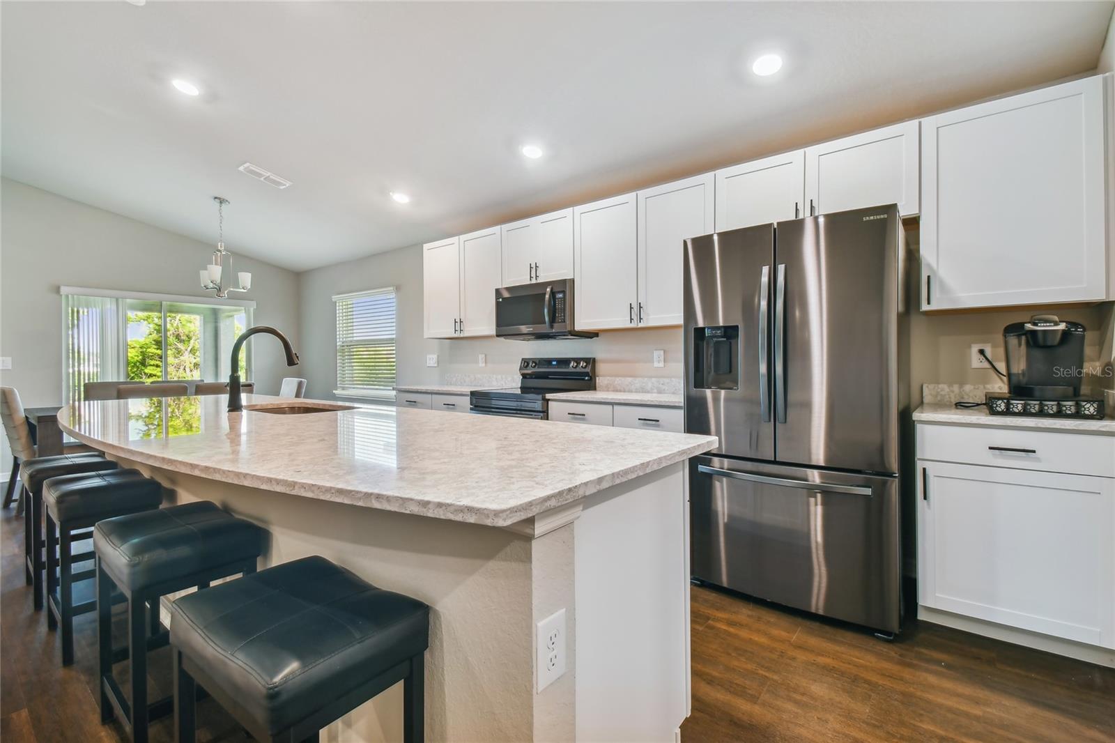 Impressionante casa unifamiliar 4/2 em Ridgewood South, com uma abundância de atualizações e uma planta aberta! Situado em um lote premium com elevação atualizada no quintal. Esta casa também tem uma bela vista tranquila da lagoa. O interior possui uma série de atualizações projetadas para a vida moderna e garantidas para agradar e impressionar! Deleite-se com a alegria de cozinhar com armários e gavetas de madeira com fechamento suave na cozinha e uma enorme ilha com bancadas de quartzo cintilantes, complementadas por eletrodomésticos de aço inoxidável de última geração. O design elegante da cozinha convida tanto a refeições familiares casuais como a reuniões festivas. Os banheiros também foram atualizados com balcão de quartzo e armários e gavetas com soft close. Premium O vinil premium com aparência de madeira está presente em todas as áreas principais, carpetes e almofadas atualizados nos quartos. A garagem tem suas próprias atualizações com a extensão adicional de 4 pés para espaço extra e um belo acabamento no piso da garagem e um teclado na parte externa da garagem. O pátio dos fundos já está pré-instalado para uma banheira de hidromassagem, caso você deseje uma. Esta casa também possui um sistema de controle de pragas que a empresa pode atender de um porto externo para pulverizar solução nas paredes, sem precisar entrar. Minimize as preocupações futuras com manutenção, pois esta casa tem menos de um ano e vem com 10 anos completos de garantia estrutural para componentes de suporte de carga e dois anos completos de cobertura de garantia de sistemas contra defeitos em fiação, tubulação e dutos em encanamento elétrico, aquecimento, sistemas de resfriamento, ventilação e mecânicos e proteção da empresa líder em garantia residencial do país. Localizado a poucos minutos das principais rodovias, incluindo a US Highway 301 e I-75, perto de muitas lojas e restaurantes! Sua nova casa coloca você no centro dos movimentados centros de atividades de Riverview, mas oferece um retiro tranquilo da agitação urbana. Aproveite a oportunidade para reivindicar esta casa construída com maestria, onde cada centímetro irradia conforto moderno. Perfeitamente localizada, esta casa unifamiliar é o epítome da conveniência e estilo em uma das áreas mais desejáveis de Riverview. Ridgewood South possui uma variedade de comodidades que incluem piscina comunitária, cubana e playground!