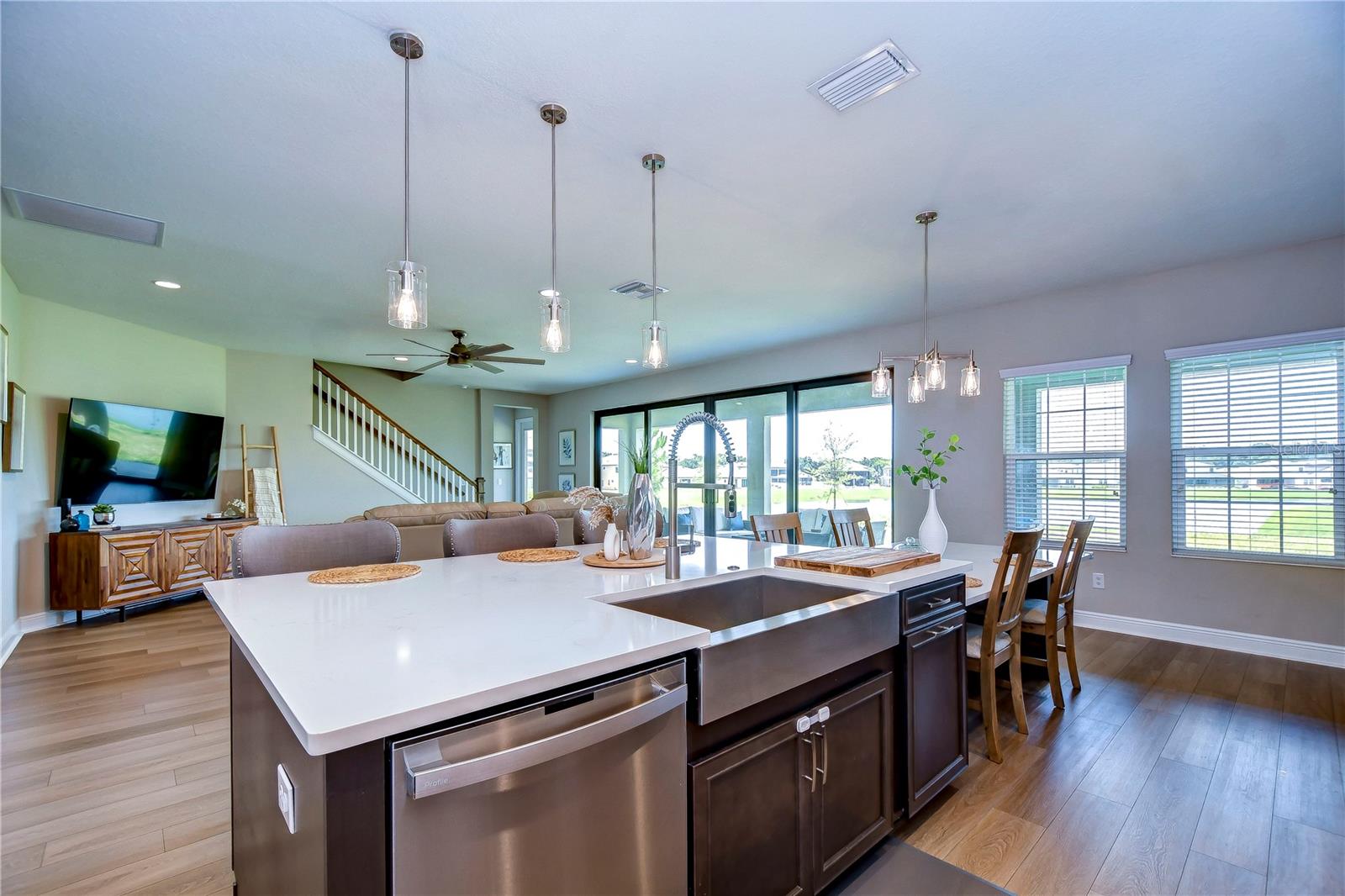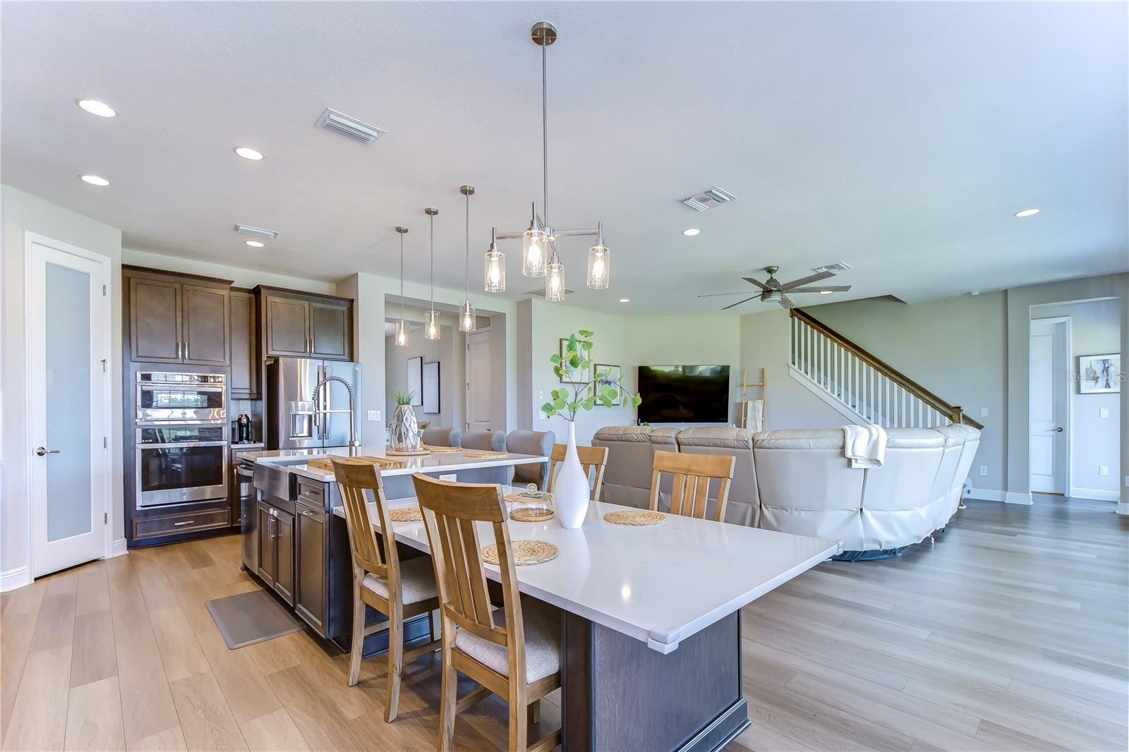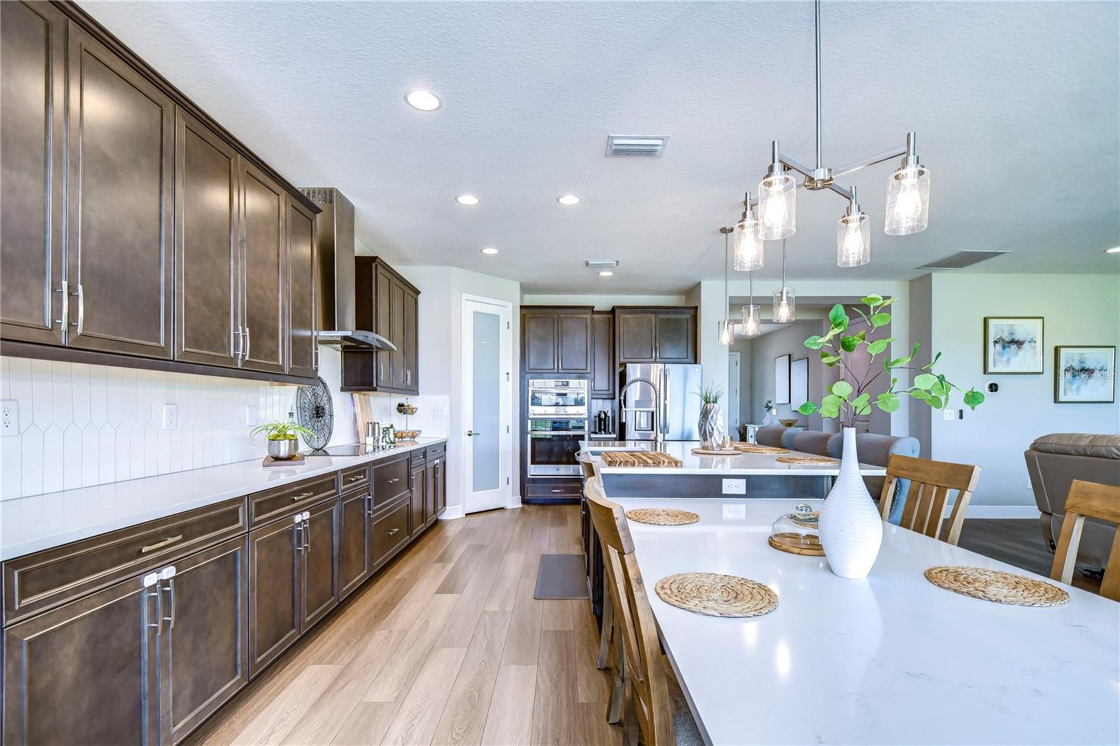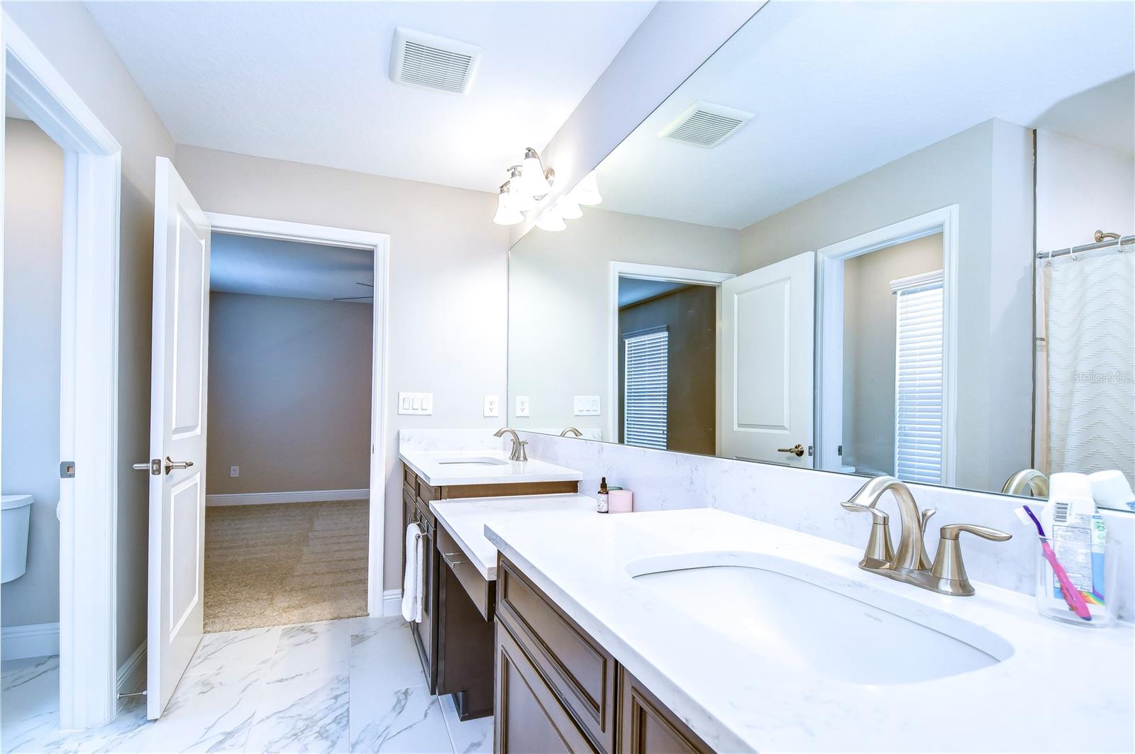 Esta casa deslumbrante na procurada comunidade de Triple Creek apresenta uma planta baixa do Virginia Park, originalmente construída pela Homes By Westbay. Possui cinco quartos, quatro banheiros, um escritório designado e uma sala de bônus muito grande. O hall de entrada ampliado e muito iluminado leva você à cozinha...... o sonho de um chef! Com lindas bancadas de quartzo, armários estendidos, uma pia de fazenda e muito espaço no balcão e armazenamento, esta cozinha é simplesmente perfeita! A grande sala é grande, aberta e iluminada e possui lindos controles deslizantes para que você possa desfrutar da incrível vista do lago em seu quintal. O escritório designado com portas francesas de vidro torna-o um local perfeito se você trabalha em casa. Além disso, no andar de baixo fica o 5º quarto e o banheiro separado, perfeito para hóspedes. No andar de cima fica o oásis da família! O quarto principal está perfeitamente projetado com entrada de porta dupla e muito espaço. O closet é um sonho, e as pias separadas, a grande banheira de imersão e os chuveiros duplos tornam-no um espaço para o qual você pode realmente se refugiar após um longo dia. Dois dos quartos no andar de cima têm um banheiro Jack and Jill conectando-o e ambos possuem closets. A lavanderia, o quarto adicional e o banheiro também ficam no andar de cima, o que o torna um layout perfeito para famílias em crescimento. A sala de bônus é sua para sonhar! Quer você goste de assistir filmes, precise de uma academia em casa ou apenas de um espaço para descontrair e relaxar, ele é grande, iluminado e uma adição incrível para sua casa. Situada em um lago premium, a casa oferece vistas serenas e um quintal muito grande, ideal para atividades e reuniões ao ar livre. A casa possui várias atualizações, incluindo um amaciante de água e sistema de filtragem halo, garagem para 3 carros, pedra atualizada no exterior e entrada de porta dupla. Triple Creek é conhecida por suas excelentes comodidades comunitárias, incluindo uma bela piscina, clube e academia. Com escolas localizadas na comunidade, Triple Creek é um ótimo lugar para as famílias chamarem de lar. Não perca a oportunidade de possuir esta propriedade excepcional em um fantástico bairro familiar.