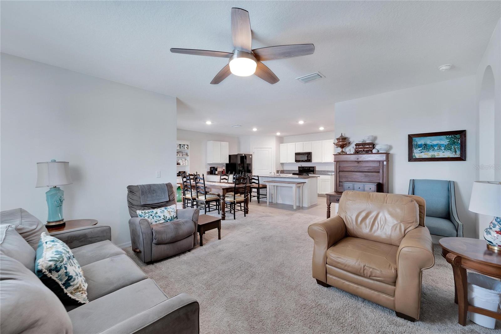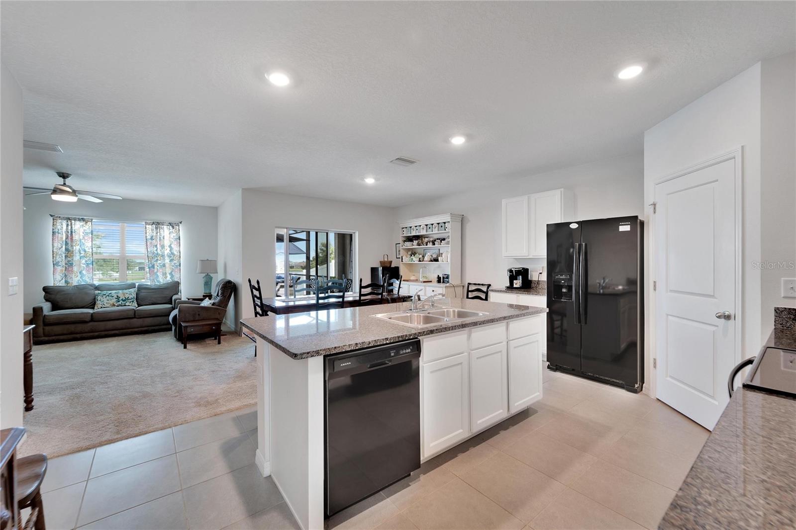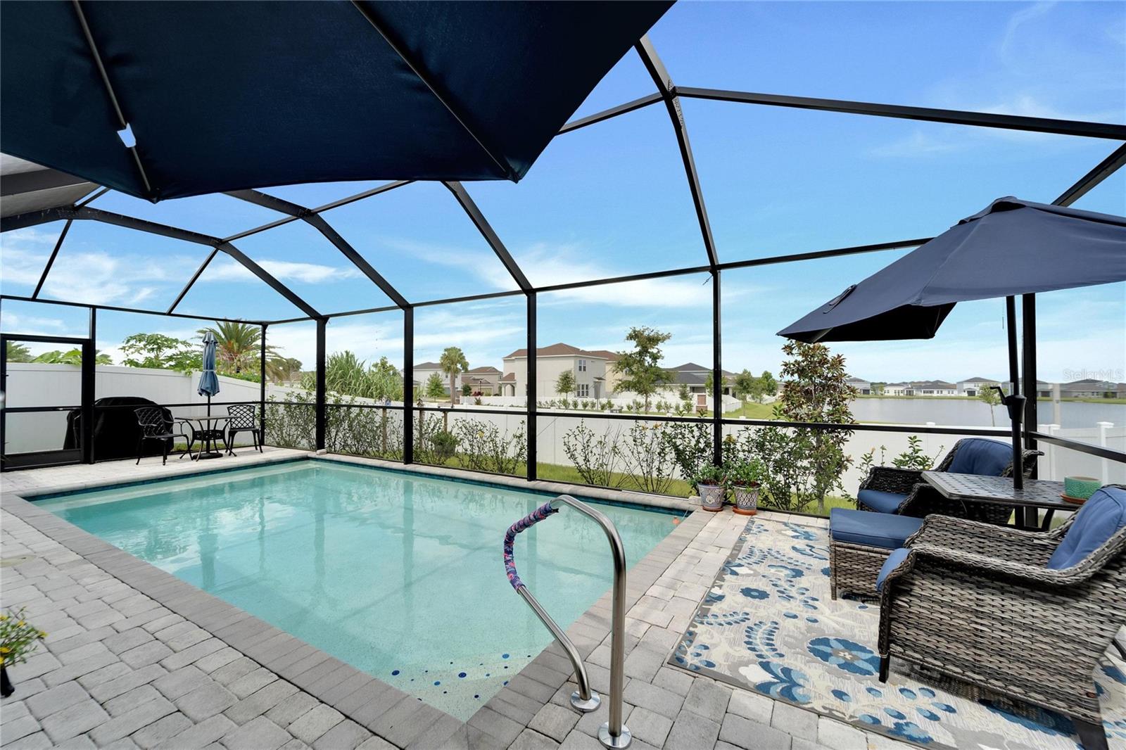 CONCLUÍDO PELOS ATUAIS PROPRIETÁRIOS: GRAMADO RE-SODADO, SISTEMA DE IRRIGAÇÃO, NOVOS VENTILADORES DE TETO E SISTEMA DE CASA INTELIGENTE. Linda casa de 4 quartos e 2 banheiros que recebeu cuidados meticulosos dos únicos proprietários. Com uma planta de quarto tripla dividida, aberta, arejada e com acabamentos neutros, o design inteligente pode facilmente torná-lo a escolha ideal para o comprador atual. A cozinha possui armários brancos com muito balcão de granito, incluindo uma grande ilha de trabalho com balcão para café da manhã que dá para a sala de jantar com controles deslizantes para a varanda e piscina e desemboca na espaçosa Sala Grande. Vá para a Suíte Primária, que é grande o suficiente para uma área de estar e inclui 2 armários, um dos quais é walk-in, e um Banheiro Primário com pias duplas. Os quartos secundários são todos generosos em tamanho e armários e o banheiro secundário inclui banheira com chuveiro. Aproveite o clima da Flórida com uma varanda protegida e piscina de água salgada com pavimentação por toda parte e vista para o lago na privacidade de seu quintal cercado. South Fork é uma comunidade encantadora com comodidades em estilo resort, estradas sinuosas, calçadas ao redor de lagos e belo paisagismo. Obrigado pelo seu interesse e por reservar um tempo para ver esta casa pessoalmente.