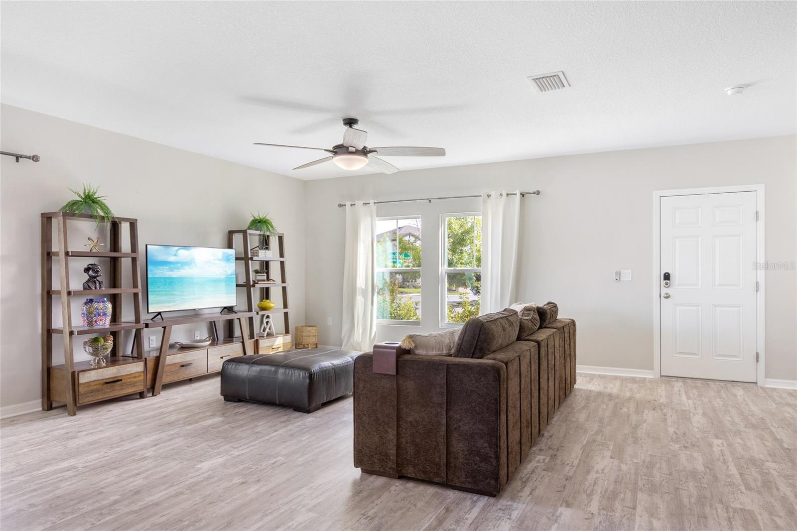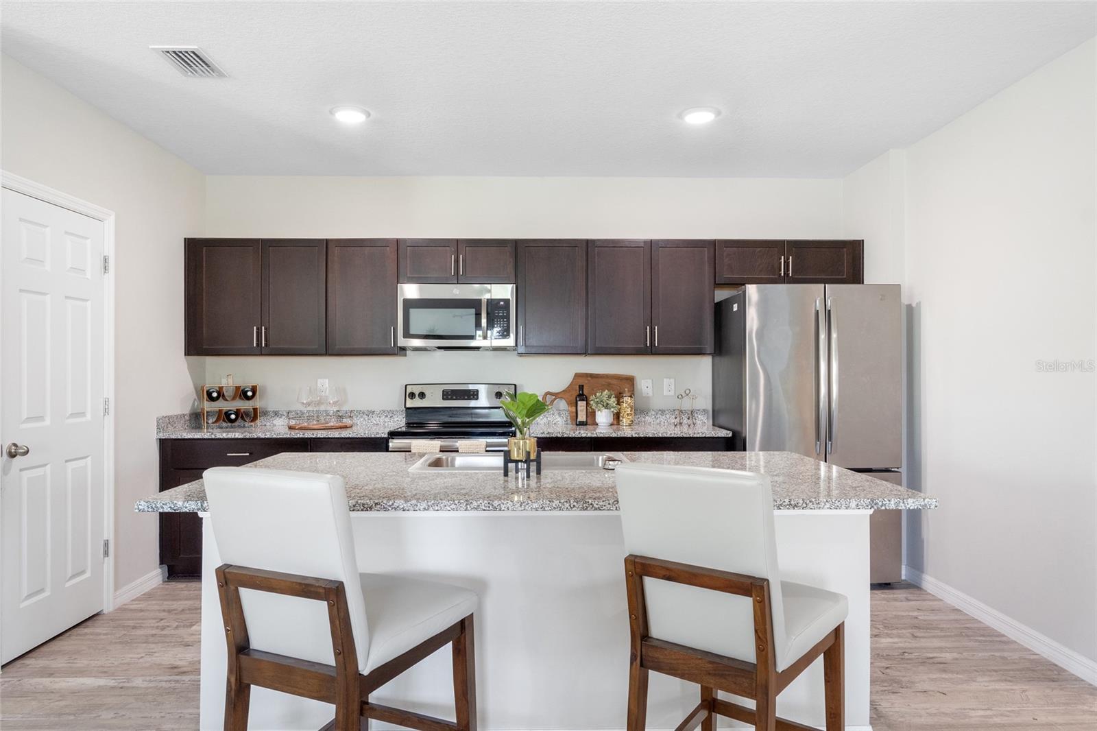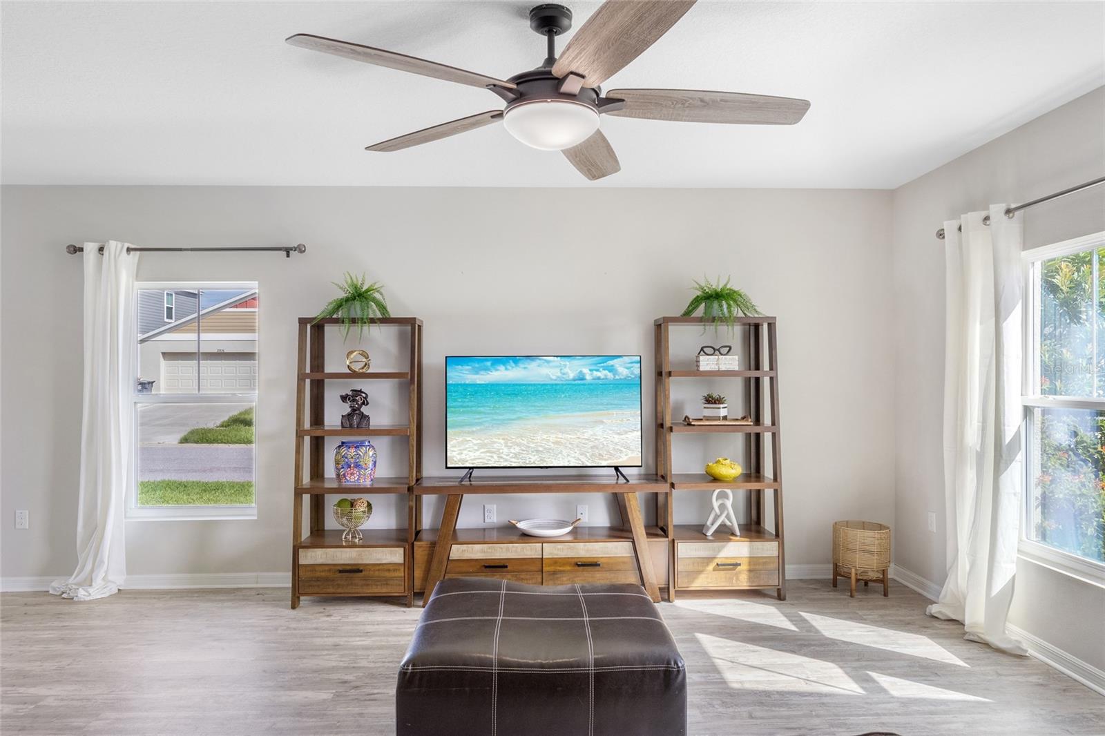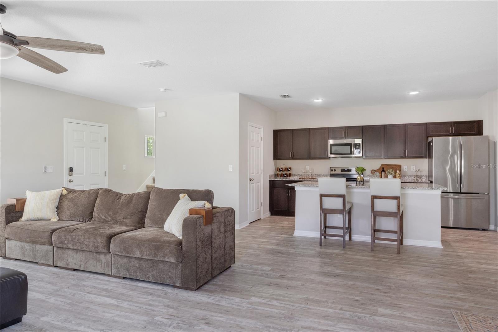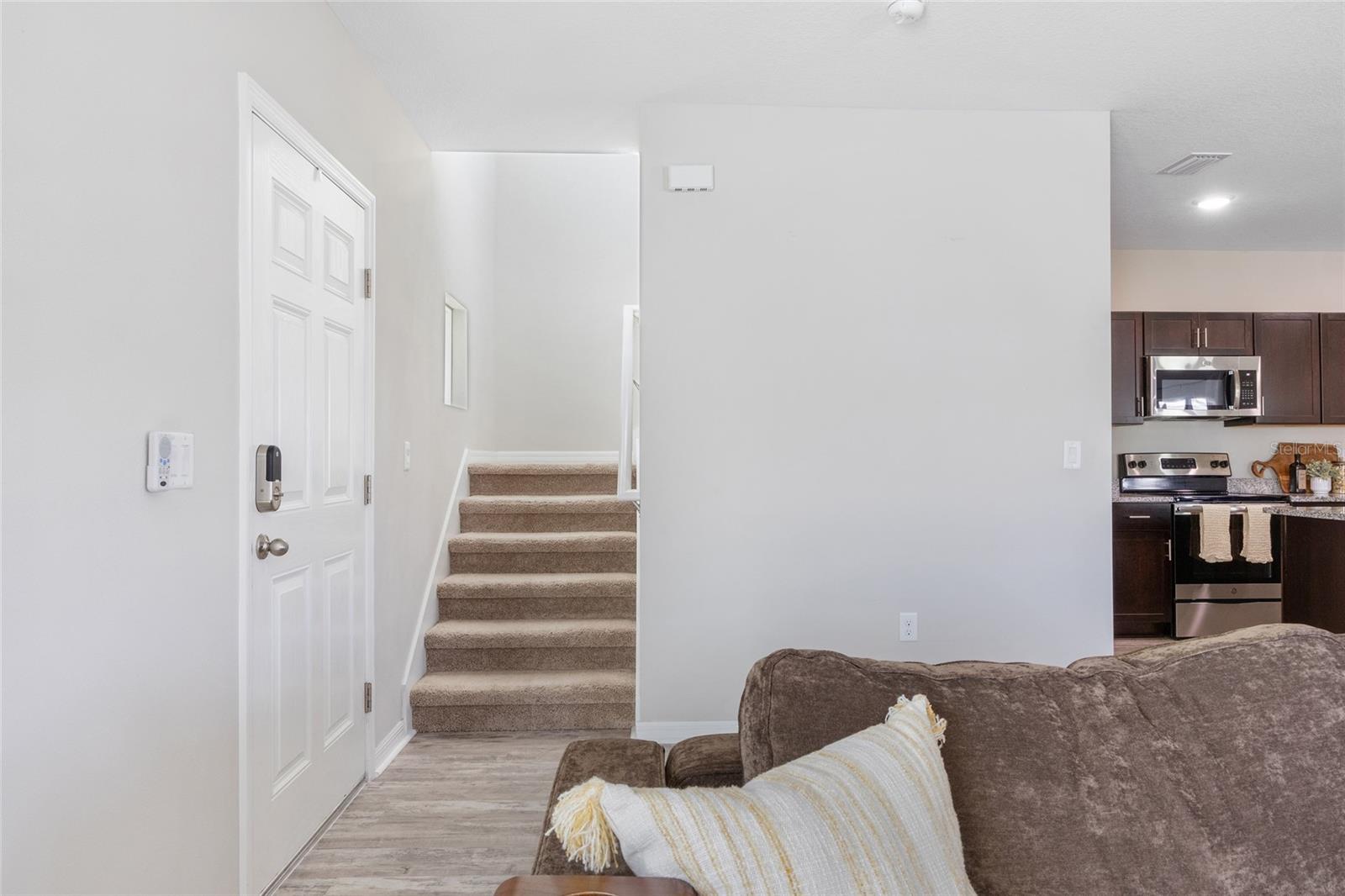 Bem-vindo a esta construção de 2020 meticulosamente mantida e lindamente atualizada, uma impressionante casa de dois andares com 4 quartos e 2,5 banheiros que incorpora conforto e estilo modernos. Entre para descobrir o novo piso laminado de madeira que flui por toda a ampla sala de estar e área de jantar , perfeitamente conectado à cozinha inspirada no chef. Aqui, uma grande ilha de bancada em granito é a peça central, complementada por eletrodomésticos de última geração e uma espaçosa despensa, tornando a preparação das refeições uma alegria. A luz natural inunda o espaço, realçada pela porta de correr de acesso ao pátio, ideal para entretenimento ao ar livre e relaxamento. No andar de cima, uma sala familiar de tamanho generoso oferece espaço de reunião adicional. A suíte principal é um verdadeiro retiro, apresentando não um, mas dois closets e um luxuoso banheiro privativo com pia dupla, criando um oásis privado. O armazenamento é abundante com vários armários por toda parte, garantindo facilidade de organização. A conveniência é fundamental com a lavanderia do segundo andar equipada com lavadora e secadora de última geração incluídas. Esta casa apresenta condições perfeitas, como novas, com comodidades adicionais, como um sistema de amaciante de água Culligan com osmose reversa e painéis solares alimentando toda a casa, garantindo eficiência e conforto durante todo o ano. Posicionado em um desejável terreno de esquina, desfrute de maior privacidade sem vizinhos por todos os lados. Do outro lado, um parque convida a passeios tranquilos e diversão ao ar livre. A própria comunidade oferece comodidades em estilo resort, incluindo academia, clube, piscina em estilo resort com splash pad, quadras de tênis e trilhas panorâmicas para caminhada. A educação é conveniente com uma escola primária e VPK dentro da comunidade. Desde o seu estado imaculado até à sua localização privilegiada e comodidades abundantes, esta casa oferece a combinação perfeita de vida moderna e charme comunitário, verdadeiramente um lugar para chamar de lar.