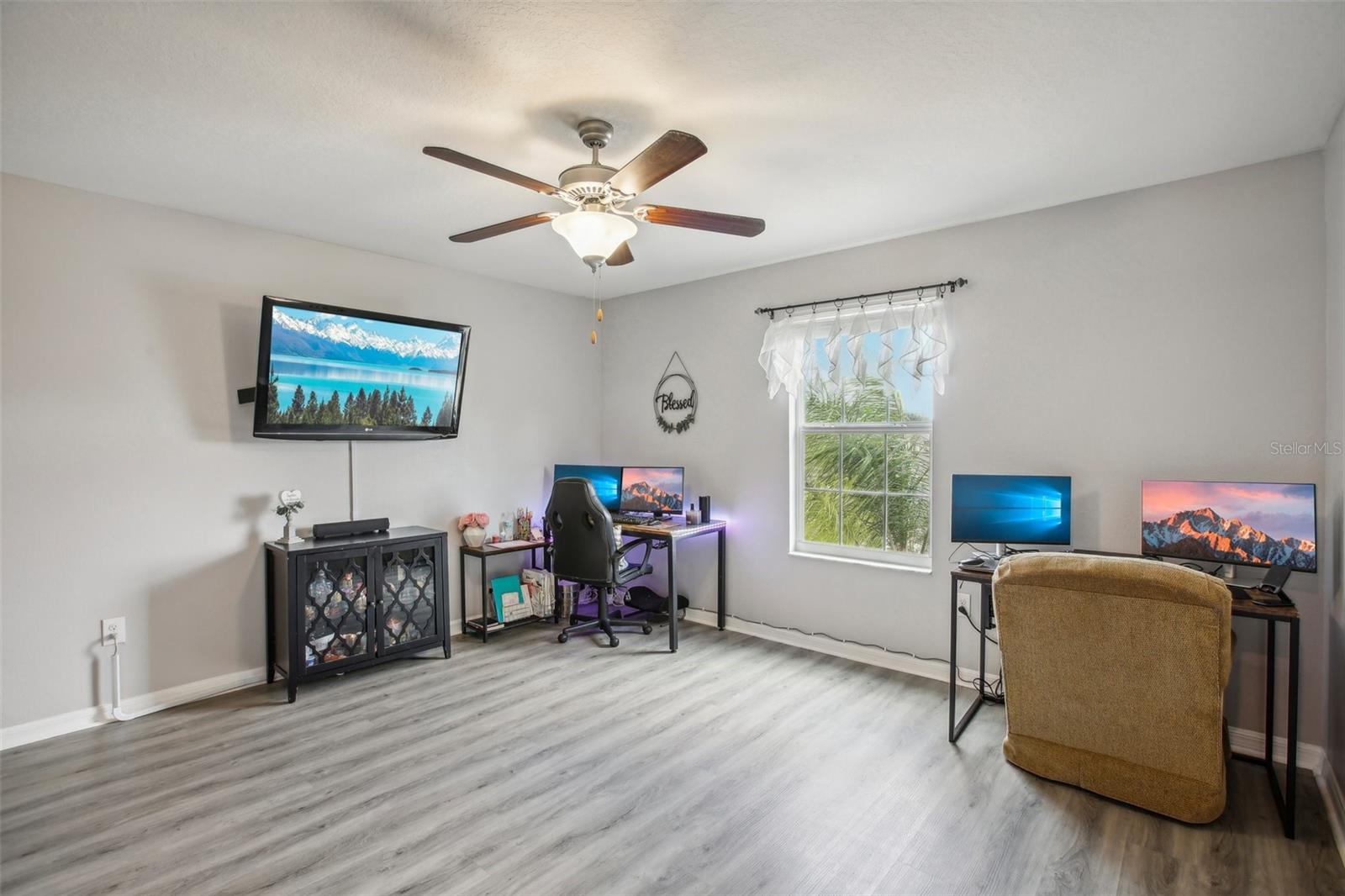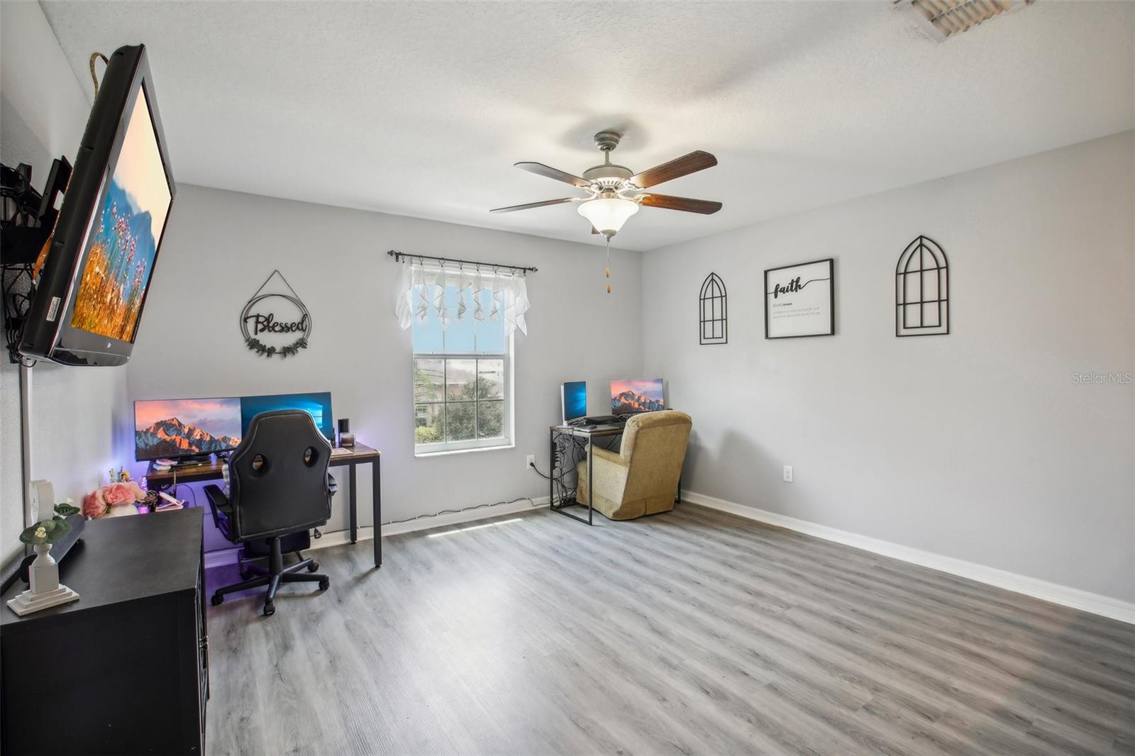 Esta propriedade deslumbrante oferece uma combinação perfeita de conforto, luxo e conveniência. Situado num amplo terreno totalmente vedado, o espaço exterior é ideal para entretenimento ou futuras melhorias, como a instalação de uma piscina. O pátio coberto proporciona um local sereno para relaxar ao ar livre, enquanto o interior espaçoso é igualmente impressionante. No primeiro andar, você encontrará um escritório versátil com uma elegante porta de celeiro, facilmente adaptável como quarto, escritório ou espaço de hóspedes. Todo o primeiro andar é elegantemente revestido de azulejos, criando uma área de estar coesa e de fácil manutenção. O pavimento luxuoso estende-se pelas escadas, passando pelo loft, corredor e até um dos quartos de hóspedes de dimensões generosas, acrescentando um toque sofisticado a estas áreas. A planta aberta integra perfeitamente os espaços de estar, jantar e cozinha, tornando-a perfeita tanto para a vida diária quanto para entretenimento. A cozinha possui uma ampla despensa, muito espaço no balcão e eletrodomésticos modernos, garantindo um ambiente de cozinha funcional e convidativo. No andar de cima, o quarto principal de grandes dimensões possui um amplo closet, proporcionando amplo espaço de armazenamento. Os quartos adicionais também são amplos, oferecendo conforto e flexibilidade para familiares ou convidados. A lavanderia convenientemente localizada no andar de cima contribui para o design prático da casa. Localizada com fácil acesso à I-75, esta casa fica perto do Sam's Club, Costco, cinemas e um grande shopping, fazendo compras e entretenimento a uma curta distância de carro. Esta propriedade oferece verdadeiramente um estilo de vida ideal para a vida moderna.