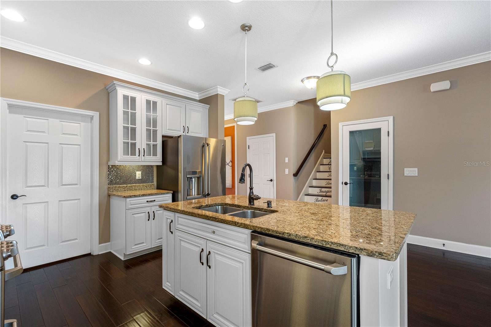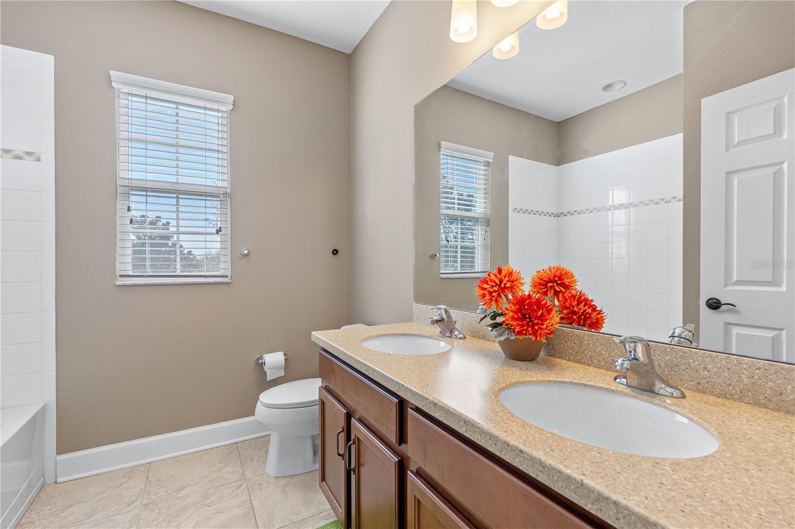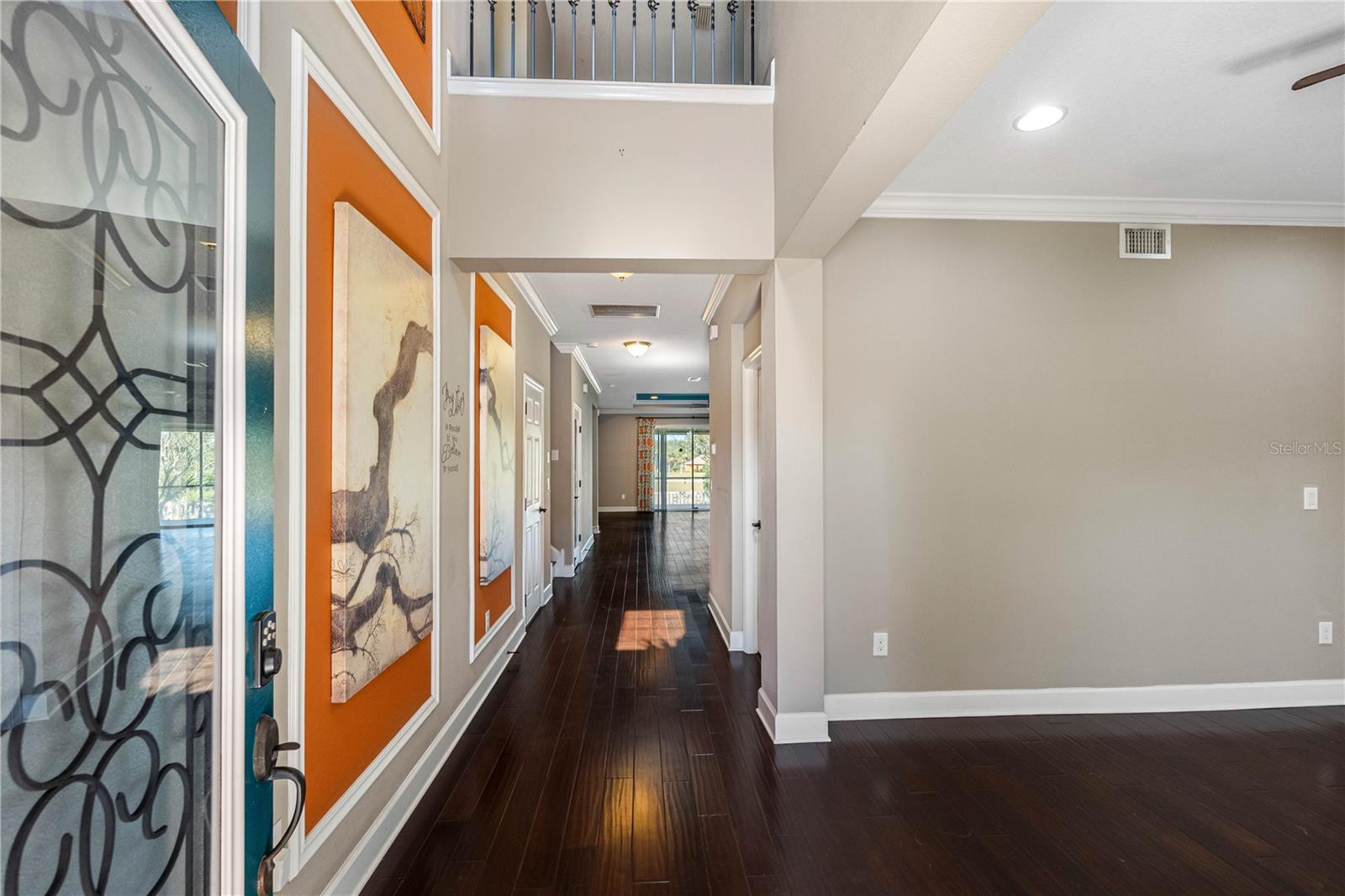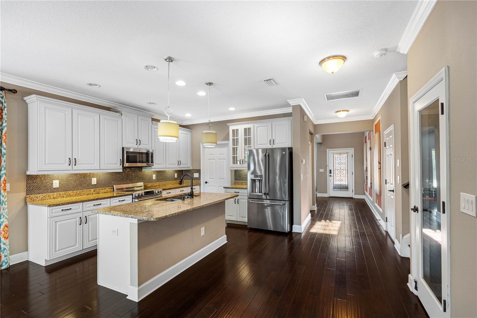 CASA MODELO! VISTA DA LAGOA! Esta planta de 4 quartos/2,5 banheiros, “Nápoles” é qualificada como Energy Star. No primeiro andar, a cozinha e o recanto são abertos para a sala da família, que tem teto de bandeja e portas de vidro deslizantes que se abrem para a varanda coberta e com tela. pavimentação de tijolos. A cozinha tem armários de linho de bordo de 42", sancas de 3", 2 portas de armário de vidro, armários adicionais escalonados sobre o micro-ondas, ilha central, bancadas de granito, pia de aço inoxidável sob montagem, backsplash de design e eletrodomésticos de aço inoxidável de design incluem geladeira, lava-louças, Alcance e micro-ondas suspensos. A suíte master possui teto falso, closet, banheiro master de luxo com chuveiro de bronze polido com óleo, banheira de jardim, azulejos de parede atualizados e listelos combinando, bancada do zodíaco e pias duplas. Completando o primeiro andar há uma sala de jantar formal, lavabo e despensa (com armários embutidos). Os quartos do segundo andar compartilham um banheiro no corredor com atualizações. Completando o segundo andar há uma grande sala de jogos (18'x15'). Há um lindo piso de madeira de nogueira e carvalho em todas as áreas comuns e no quarto principal, carpete atualizado/tapete de luxo nos quartos do andar de cima e azulejos atualizados em todo o resto da casa. Outras características incluem sancas de teto, rodapés atualizados, detalhes em pintura, corrimão personalizado, isolamento adicional, iluminação embutida adicional e pré-fios de fixação, porta frontal de vidro decorativa e belos detalhes em pedra no exterior. Tomada para carregador EV na garagem e termostato inteligente, muitas atualizações para mencionar.
