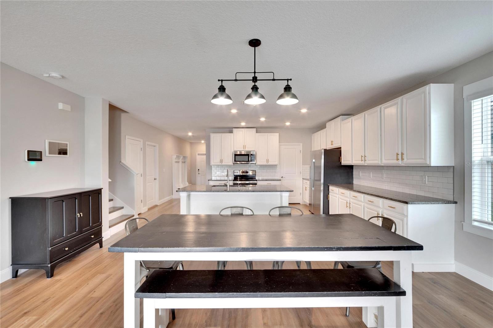 Bem-vindo a esta casa lindamente atualizada de 5 quartos e 2,5 banheiros, localizada no muito procurado bairro de Triple Creek. Com cerca de 3.000 pés quadrados de área útil, esta ampla casa oferece uma combinação perfeita de conforto e elegância, tornando-a ideal para famílias e aqueles que gostam de se divertir. Ao entrar, você será recebido por uma atmosfera iluminada e arejada, aprimorada pela pintura interior fresca e elegantes detalhes decorativos em madeira e embutidos. A espaçosa cozinha é um verdadeiro destaque, com armários brancos, elegantes bancadas de granito, uma grande despensa e muito espaço para a criatividade culinária. Aberto para as áreas de estar e jantar, é o local perfeito para reunir familiares e amigos junto à lareira eléctrica decorativa. O grande banheiro principal está localizado no primeiro andar e possui um quarto amplo com vista para o lago, um banheiro principal adjacente com pias duplas, chuveiro, banheiro privativo e closet enorme com um sistema de organização para guardar todos os seus pertences. . O piso inferior inclui ainda uma divisão fechada com portas francesas que poderá ser utilizada como home office, arrumos ou 6º quarto. Ao subir as escadas, você será recebido em uma sala bônus que pode ser personalizada para atender às suas necessidades - seja uma sala de jogos, sala de mídia ou espaço extra para hóspedes. O andar de cima possui quatro quartos grandes adicionais com designs de parede modernos e outro banheiro completo. Situada em um terreno enorme, a propriedade dispõe de um quintal cercado com um grande pátio pavimentado e vistas serenas do lago, oferecendo um retiro tranquilo ao ar livre para relaxar ou se divertir. Triple Creek é conhecida por suas excelentes comodidades, e esta casa fica a poucos passos do terceiro centro de amenidades do bairro, atualmente em construção. Os residentes têm acesso a piscinas cintilantes, splash pad, academias de ginástica, clubes, trilhas para caminhada e quadras de basquete e tênis. Desfrute de uma comunidade vibrante com um clube social ativo e tudo que você precisa bem na sua porta. Esta casa excepcional está pronta para morar, com o equilíbrio perfeito entre atualizações modernas, amplo espaço e uma localização ideal dentro de uma comunidade próspera. Não perca a chance de possuir esta propriedade notável – agende uma visita hoje mesmo!
