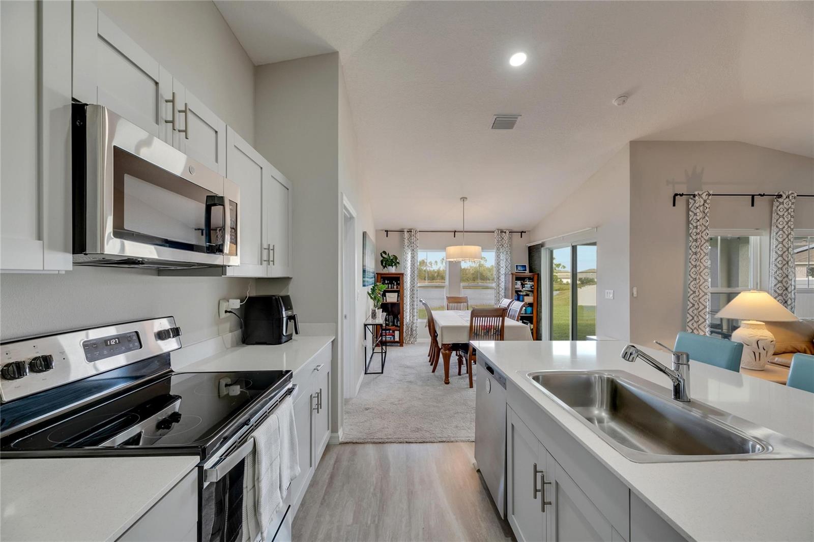 VISTAS IMPERDÍVEIS DA LAGOA SERENA SEM VIZINHOS TRASEIROS! Esta espaçosa casa de 4 quartos e 2 banheiros oferece vistas deslumbrantes da cozinha, sala de estar e quarto principal! Grandes janelas inundam a casa com luz natural, criando uma atmosfera luminosa e convidativa em toda a casa. A cozinha de conceito aberto apresenta bancadas elegantes de QUARTZO, armários cinza claro, eletrodomésticos de aço inoxidável e uma despensa conveniente para armazenamento adicional. A suíte principal oferece muito espaço para todos os seus móveis no grande quarto e uma vista tranquila para relaxar à noite. O banheiro primário adjacente oferece pias duplas para maior comodidade, chuveiro de pé, vaso sanitário privativo e closet grande. Você desfrutará de máxima privacidade e TRANQUILIDADE com um enorme quintal que oferece vistas tranquilas e desobstruídas e sem vizinhos traseiros. A combinação de carpete macio e piso LVP durável aumenta o apelo da casa, tornando-a bonita e funcional. Esta bela casa está localizada no desejável bairro de Triple Creek, que oferece aos seus moradores acesso a dois centros de amenidades, duas piscinas comunitárias, um splash pad, duas academias de ginástica, quadras de basquete e tênis, trilhas para caminhada, parque para cães e muito mais! Esta casa também fica a uma curta distância a pé da escola primária do bairro e da pré-escola da Goddard School. Não perca a oportunidade de possuir esta linda casa com vistas exteriores excepcionais e muito espaço para crescer!