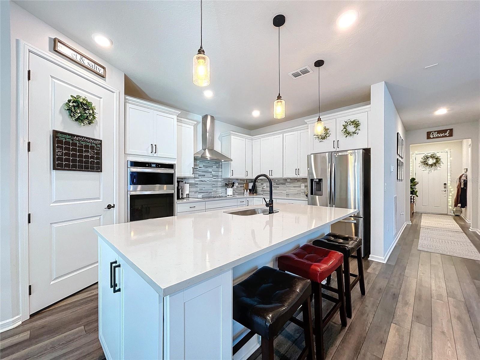 É isso - as contas elétricas nesta casa na maioria dos meses são inferiores a US $ 60 !!! Empréstimo de VA assumido a 3,5% Esta casa inclui painéis solares que serão pagos (US $ 40 mil) no fechamento !!!! Uma casa de Pulte quase nova, impressionante e impecavelmente mantida inclui muitas atualizações para listar e é uma opção excepcional para localização e estilo de vida! Dentro da porta da frente, você encontrará uma atmosfera acolhedora com ladrilhos de tábuas de luxo em toda a área principal, tetos altos e grandes janelas que enchem o espaço com luz natural. Com 3 quartos e um Den/Office, você terá muitas opções de privacidade. A impressionante cozinha gourmet de conceito aberto tem vista para a grande sala. Possui armários brancos de 42 ”nítidos com moldagem por coroa, aparelhos atualizados com cozinheiro e forno de parede, bancadas de quartzo com backsplash personalizado, prateleiras, um recanto de jantar e uma grande ilha. A enorme sala grande de 12,6 'x 28' é versátil o suficiente para praticamente qualquer configuração de móveis que você possa imaginar! A área de jantar fica a poucos passos e pode acomodar uma mesa grande para suas reuniões. Esta combinação fornece um espaço fácil e relaxante que inclui todos! Aproveite o seu café da manhã ou relaxe depois de um longo dia na extensa Lanai, que enfrenta uma área arborizada silenciosa. A enorme suíte dos proprietários é um oásis tranquilo com muita luz natural. O banheiro semelhante ao spa oferece muitos acabamentos sofisticados, como uma vaidade dupla de bancada de quartzo, um enorme chuveiro de azulejos e um grande closet organizado. Esta planta baixa oferece dois quartos que têm acesso a um banho compartilhado com chuveiro e vaidade com uma bancada de quartzo. Esta casa também possui um pacote de tecnologia doméstica inteligente com uma campainha de vídeo para obter conveniência e segurança aprimoradas. A Belmond Reserve é dividida para escolas excelentes e você estará a uma curta caminhada de todas as comodidades da comunidade - uma piscina, clube, playground, trilhas para caminhada e quadras de pickleball. Uma comunidade tranquila e encantadora, mas você estará a poucos minutos da I-75, com fácil acesso ao centro de Tampa, MacDill AFB, Aeroporto Internacional de Tampa, praias e um número incrível de lojas e restaurantes.