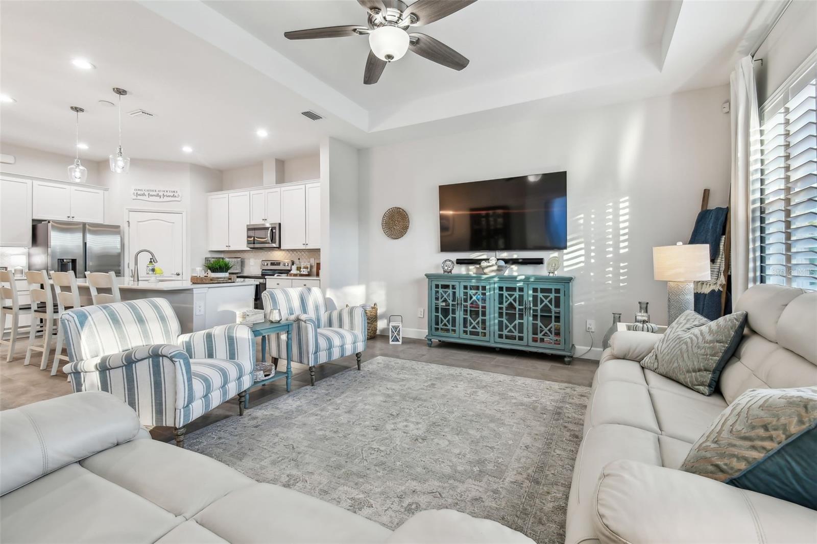 Villa meticulosamente mantida na localização privilegiada! Mova -se direto para sua casa 2/2 com garagem de 2 carros! Aninhado em uma comunidade de 55 +, esta casa verifica todas as caixas. Cozinha grande com ilha central espaçosa, utensílios de aço inoxidável, armários de 42 ", despensa, iluminação embutida e luminárias de grife. Sala de estar superdimensionada fornece toneladas de luz natural com tetos de bandeja de dez metros, que não podem se transformar em lanfas de capa. Os ventiladores de teto e armários generosos.