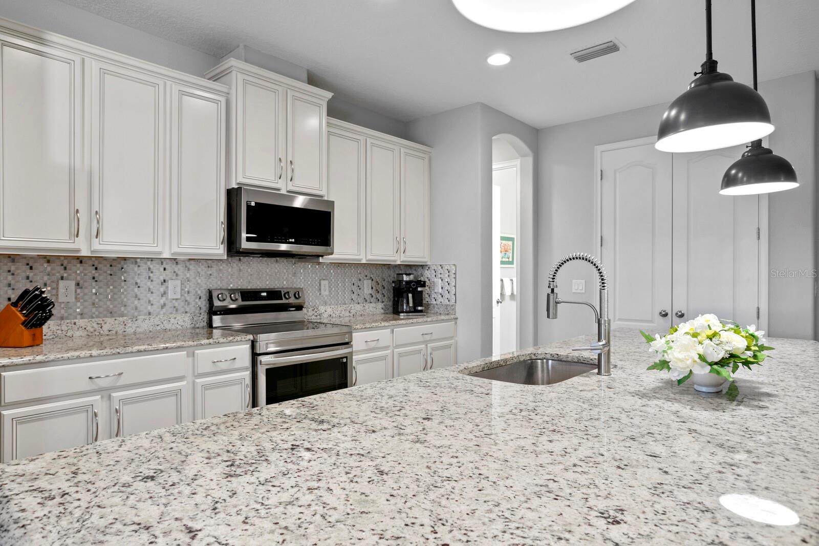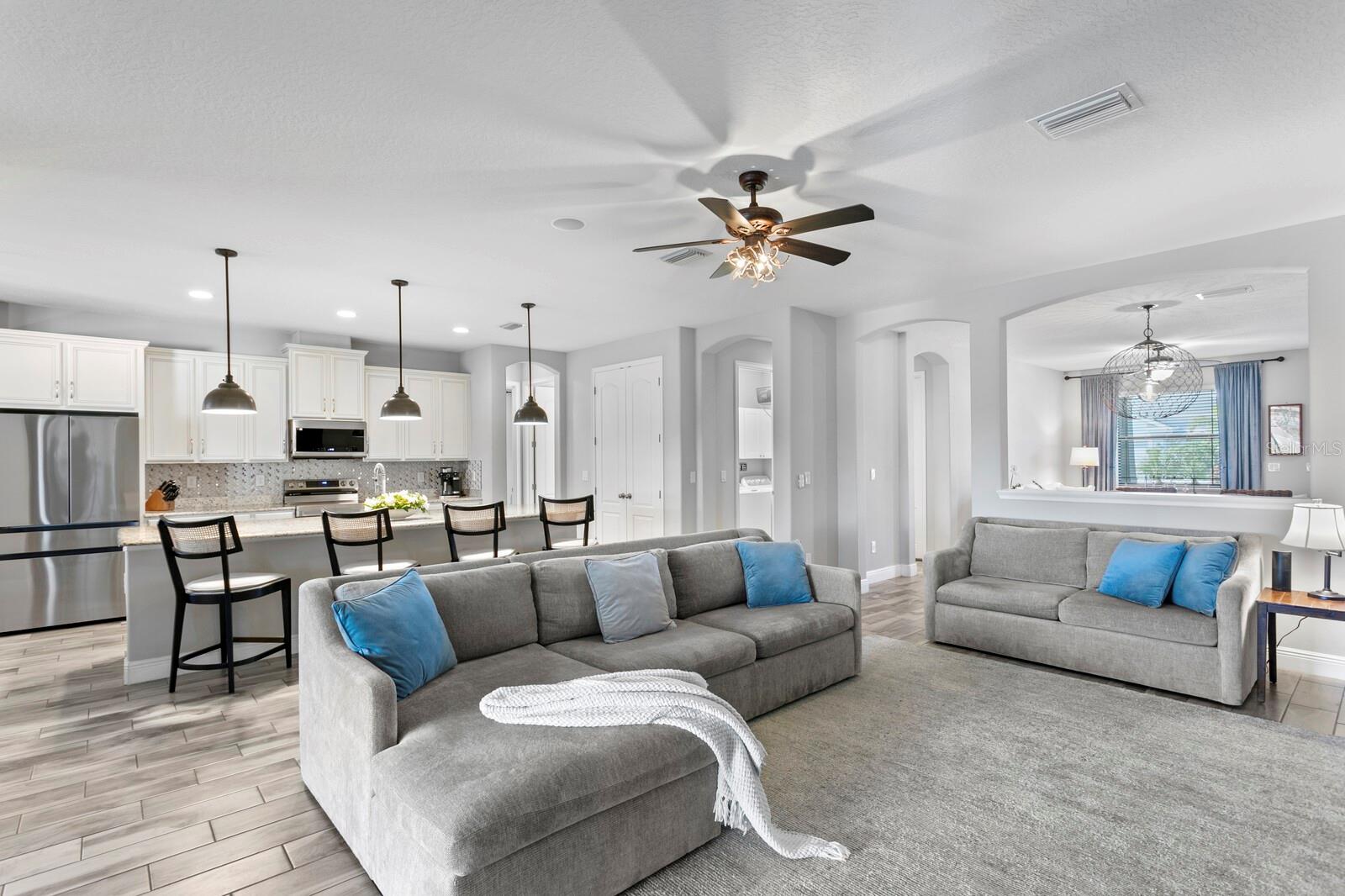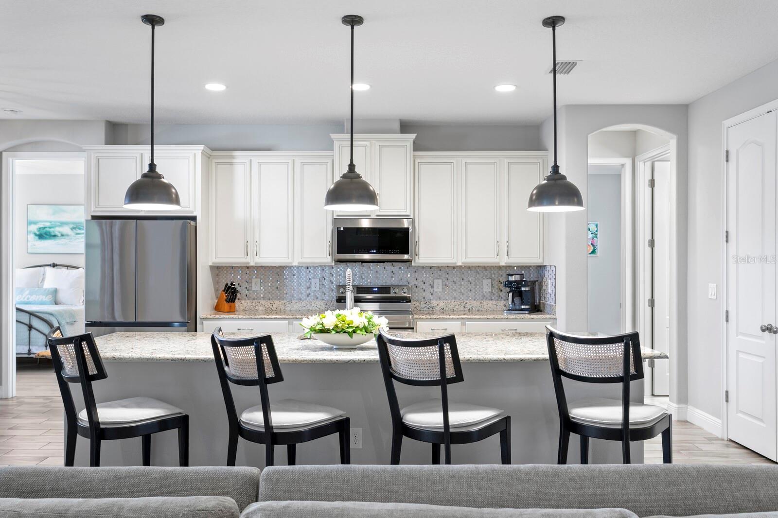 ** Faça um tour de vídeo virtual nesta casa agora em www.13614tonyaanne.com ** Esta impressionante William Ryan Homes Homes Jensen Model Ranch Home está localizada na seção Barrington de South Fork em Riverview, FL. Construído em 2020, esta casa altamente atualizada inclui 4 quartos, 4 banheiros completos, uma espaçosa garagem de 3 carros e quase 2.700 pés quadrados de espaço de estar. Projetado com a privacidade final em mente, os 4 quartos estão situados nos cantos da casa. Se você está procurando um ótimo espaço de sogro ou uma vida multigeracional, este design de suíte master duplo é uma escolha perfeita! Ao chegar, você encontrará uma paisagem meticulosamente mantida, um gramado exuberante, a redução decorativa de concreto, o design do artesão e uma varanda da frente acolhedora que fornece um ótimo apelo ao meio -fio. Ao entrar, os tetos de 9,5 pés proporcionam um sentimento muito espaçoso ao longo desta casa. Os belos pisos de ladrilhos de madeira, com aparência de madeira, são encontrados em todas as principais áreas de estar. A sala de estar formal e de jantar combinada oferece muito espaço de entretenimento elegante. Separado por uma meia parede decorativa e arcos graciosos é a sala familiar de grandes dimensões. Adjacente à sala da família está a cozinha gourmet que qualquer chef desfrutará. Comece com a ilha de granito de 12 pés com amplo assento de bar de café da manhã e iluminação pingente decorativa. Os armários premium de 42 ”de vidros duplos e marfim incluem portas de close macio e muito armazenamento, além de uma grande despensa de duas portas duplas. O backsplash de telha de vidro e o novo conjunto de aparelhos inoxidáveis da Samsung completam a cozinha. Ao lado da cozinha, há uma espaçosa área de jantar casual com vistas para a água do quintal. O primeiro de 2 suítes master inclui pisos de tábuas de vinil de luxo atualizados, uma área de estar de grandes dimensões com janelas de sacada que oferece vistas tranquilas da água e um ventilador de teto. O grande banho principal possui balcões de quartzo, pias duplas, um chuveiro de grande porte e armário de água adjacente. O grande walk-in-closet possui um novo sistema de organização personalizado para armazenamento adicional. Na parte de trás, o canto oposto da casa está a 2ª suíte master um pouco menor. Também possui pisos de tábua de vinil de luxo, janelas de sacada com vista para a água e um luxuoso banho completo com balcões de quartzo, chuveiro e chuveiro de chuva. Os 3º e 4º quartos são acarpetados e incluem ventiladores de teto e banheiros completos adjacentes. Para um espaço ainda mais divertido, saia da sala da família para o seu Lanai coberto de 600 mais metros quadrados. Você encontrará vários ventiladores de teto, TV montada e seu próprio bar Tiki para compartilhar bebidas com a família e os amigos. Do lado de fora do seu Lanai, há outro pátio de pavimentação e um quintal totalmente cercado que todos olham para as lindas vistas da água. Tenha certeza de que esta casa com uma construção mais recente, um conjunto completo de persianas de furacões e localização da zona não-alvo. As atualizações adicionais incluem uma lavanderia com armazenamento de armários, garagem de 3 carros de grandes dimensões com piso epóxi, alto-falantes de som surround integrado, portas internas de 8 pés, luminárias atualizadas, pré-fio da piscina e muito mais! Localizado a apenas uma quadra desta casa, está o Community Community Center, que inclui uma piscina, clube, playground e quadra de basquete. Faça desta propriedade impressionante seu novo lugar para relaxar e ligar para casa hoje!