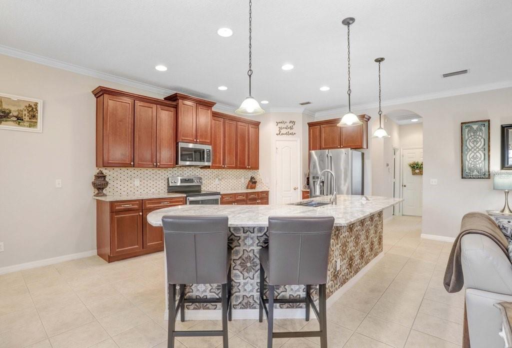 Bem-vindo a esta impressionante casa de 4 quartos e 4 banheiros, um retiro pacífico oferecendo tudo o que você precisa e muito mais. Os destaques incluem um Den/Office, espaço de bônus espaçoso com infinitas possibilidades e uma garagem de 3 carros. Saia para desfrutar da natureza de sua Lanai Exibida (2021), Koi Pond ou marquise fechada (2020). Relaxe no quintal particular com vista para um lago tranquilo e pôr do sol de tirar o fôlego. Ideal para a vida multigeracional, esta casa oferece espaço e privacidade para todos. Além de baixo HOA e sem CDD! A cozinha do chef é um sonho e possui uma barra de café da manhã prolongada, armários de madeira, aparelhos de aço inoxidável (2019-2024), iluminação pendente e uma despensa, fluindo perfeitamente para a sala de estar com embutidos personalizados (2020). Esta área aberta é ótima para entretenimento e entra perfeitamente na marquise e exibida em vistas expansivas do espaço externo. A suíte master é um santuário pacífico com um teto de bandeja, acesso ao pátio, armários personalizados (2021), chuveiro de walk-in, banheira de imersão e vaidade dupla. No térreo estão três quartos adicionais, um banheiro de macaco e jato e outro banheiro completo. A lavanderia atualizada (2020) adiciona conveniência com armários e plataformas. No andar de cima, uma grande sala de bônus com embutidos personalizados (2020), uma lareira elétrica e detalhes em madeira cria um espaço quente e convidativo, perfeito para hóspedes ou relaxamento. Atualizações recentes ao longo desta casa, tanto bonitas quanto funcionais. New Roof (2019), piso de madeira laminado e carpete, tinta fresca, iluminação atualizada e bancadas em granito (2019). Recursos e atualizações inteligentes da casa são abundantes! A cozinha inclui uma caixa de plugue de reflexão, torneira sem toque, aparelhos habilitados para Wifi (incluindo uma geladeira equipada com Keurig), enquanto a roupa tem uma lavadora/secadora de wifi. A garagem de 3 carros possui abridores de armazenamento aéreo e wifi-habilitados, e um sistema de vigilância de 5 câmeras acrescenta tranquilidade. Desfrute de um ambiente sereno com a conveniência de compras próximas, escolas, hospitais e grandes estradas. Com taxas baixas de HOA e sem CDD, esta casa oferece um valor incrível. Agende sua exibição particular hoje para experimentar sua beleza por si mesmo. ***** Atualizações completas listadas em anexos *****