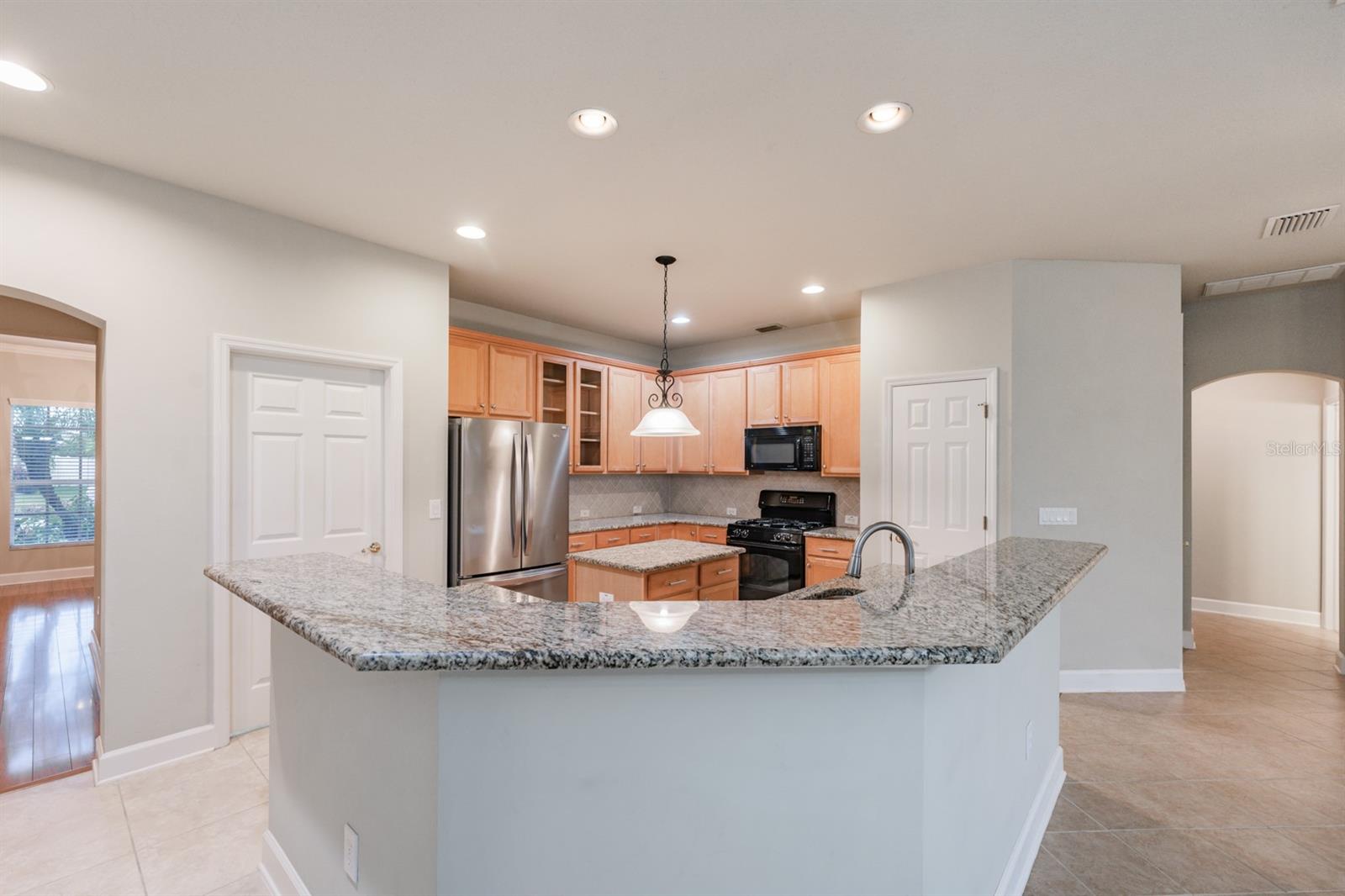 Fantástica David Weekly Open Plan Plan Home Com bela cozinha com vista para a sala da família e a sala de jantar. Os recursos da cozinha incluem 42 armários de painéis elevados, caminhada em despensa, alcance de gás, lava -louças e geladeira. Novo telhado 2025. Grande bar de café da manhã e ilha, todos os balcões cobertos com granito. O piso de ladrilhos nas áreas úmidas e laminado e carpete para completar os outros quartos. Esta casa tem um escritório e uma sala de bônus. O quarto principal tem grandes armários. O banheiro mestre tem banheira de jardim, chuveiro separado com vaidades duplas e bancadas em granito. Ótima localização para uso da piscina comunitária, playground, ensino fundamental e quadras de tênis. Localização super conveniente perto de lojas, supermercado e I-75 para obter um fácil acesso a Tampa.